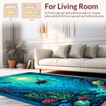 Flatwoven High Traffic Area Rug, Playful Sea Creature, Non Slip, Stain Resistant, Washable Area Rugs for Living Room, Bedroom (Blue) Overview: