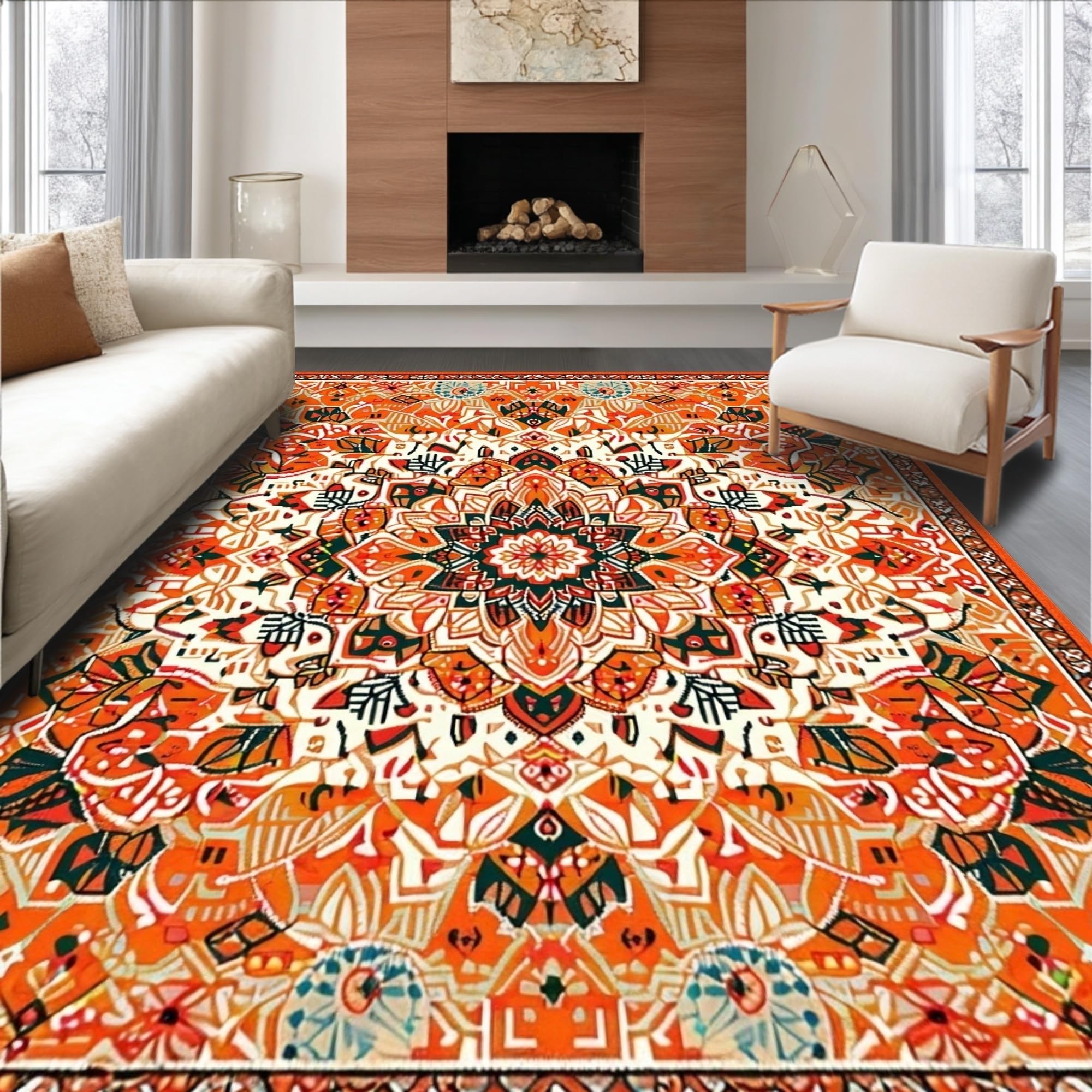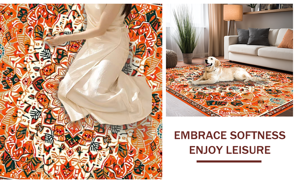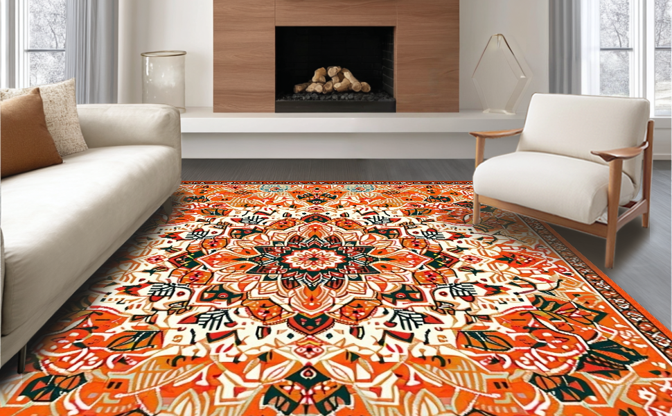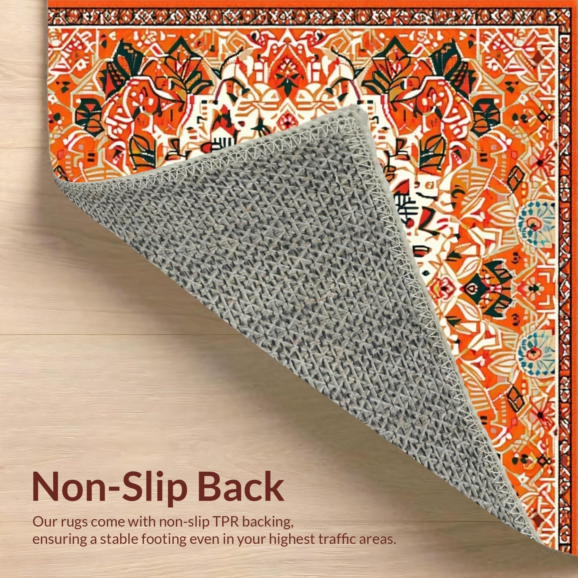Ultra Soft Area Rug, Non Slip, Stain Resistant, Washable Area Rugs for Living Room, Bedroom, Playful Soft Blooming Pattern(Orange) Overview: