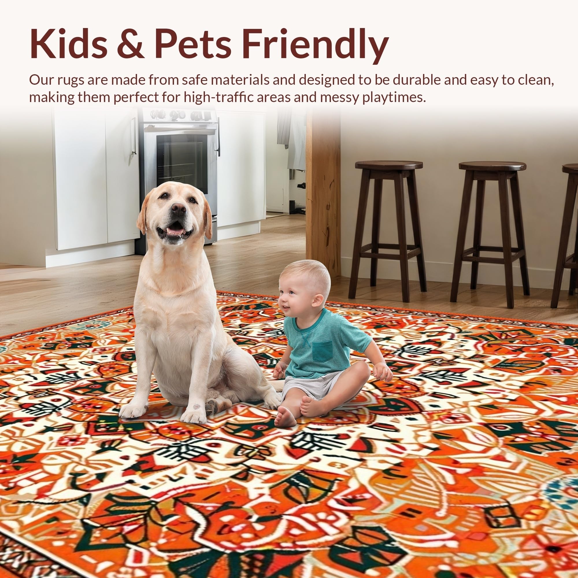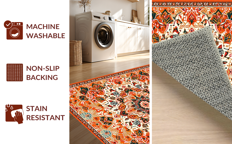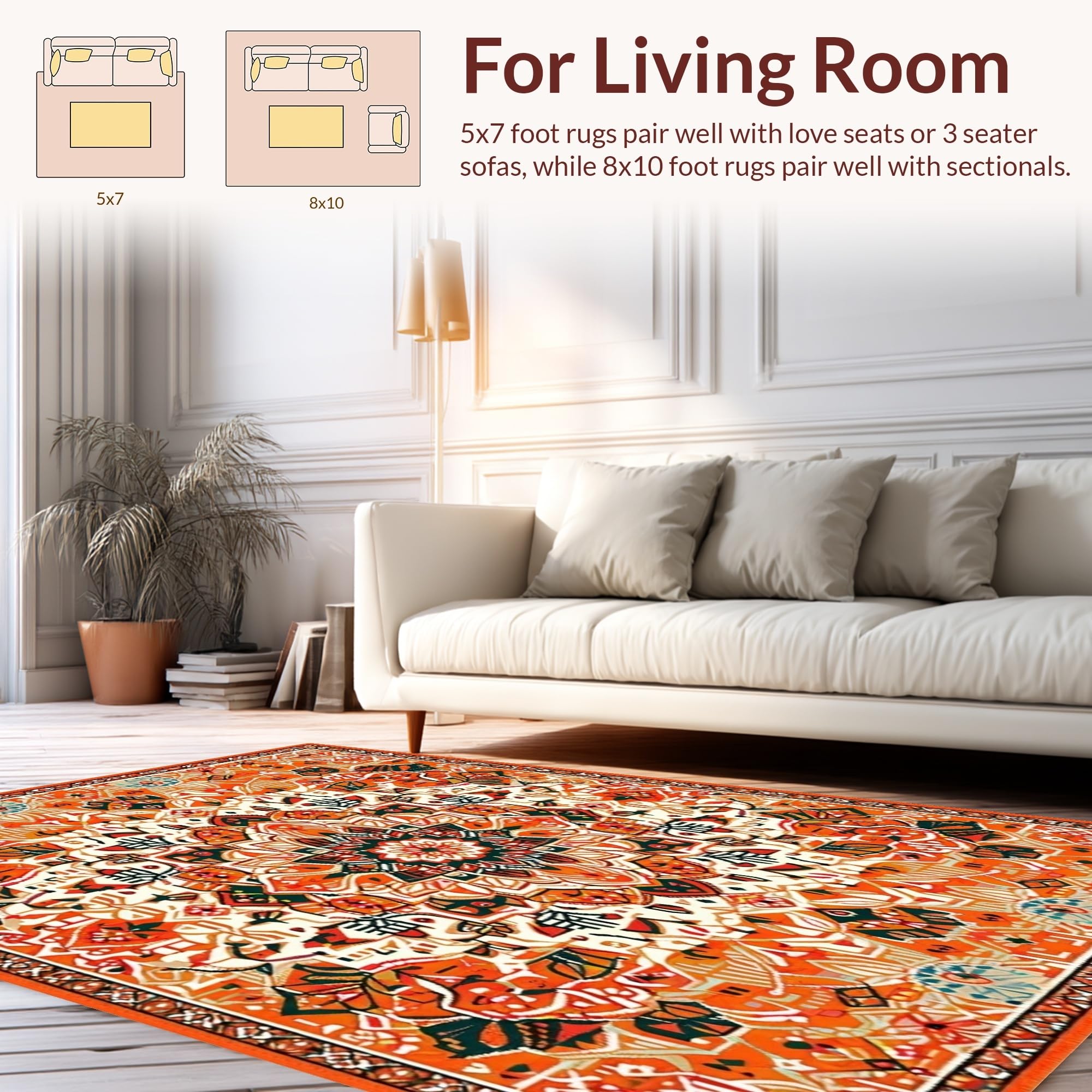 Ultra Soft Area Rug, Non Slip, Stain Resistant, Washable Area Rugs for Living Room, Bedroom, Playful Soft Blooming Pattern(Orange) Overview: