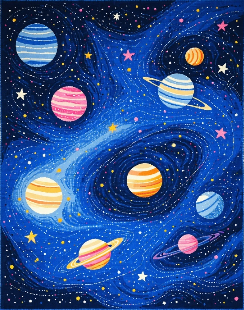 Flatwoven High Traffic Area Rug, Playful System Graphic Style, Non Slip, Stain Resistant, Washable Area Rugs for Living Room, Bedroom (Blue) Overview: