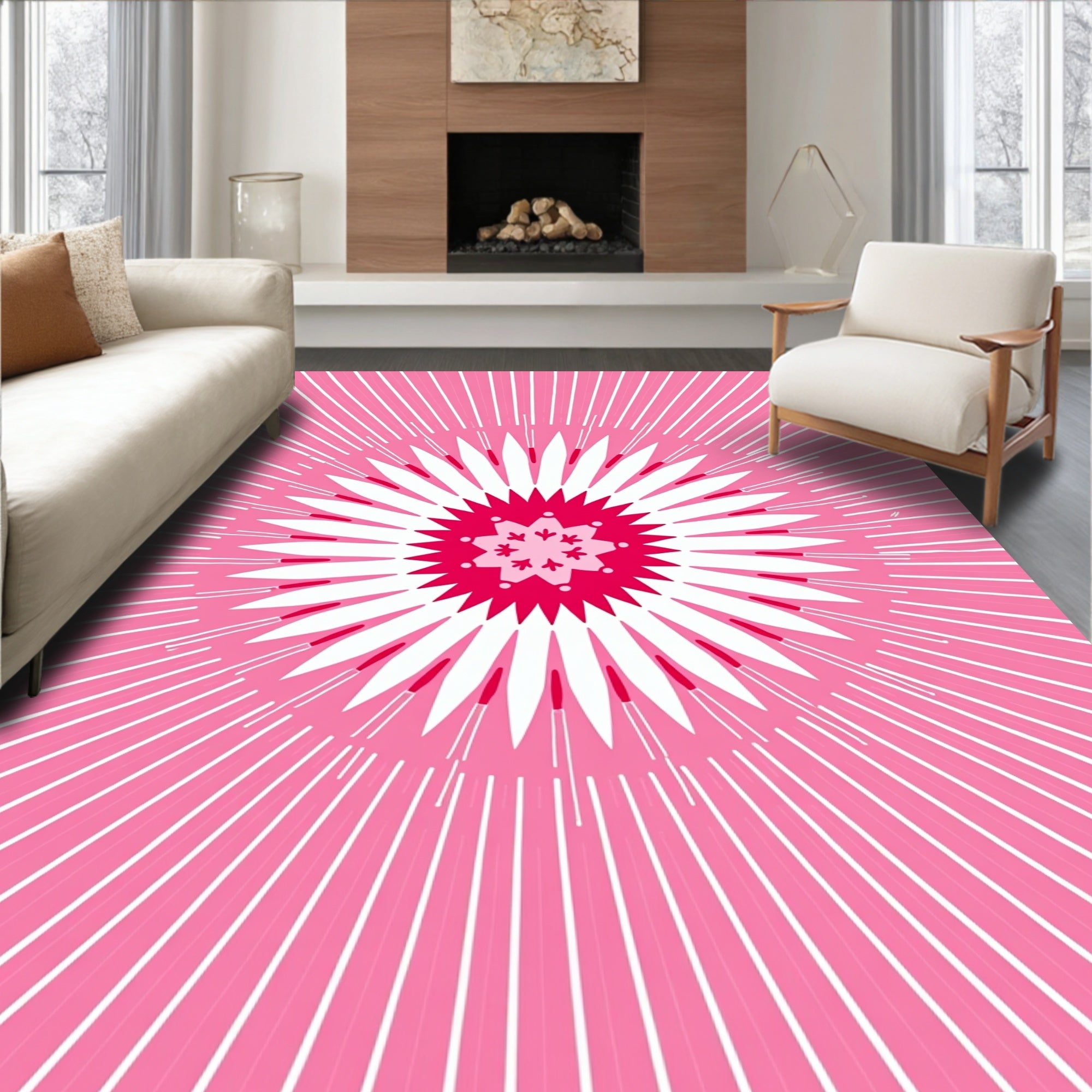 Ultra Soft Area Rug, Non Slip, Stain Resistant, Washable Area Rugs for Living Room, Bedroom, Playful Starburst Whimsy Castle(Pink) Overview: