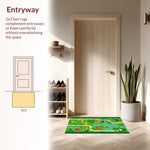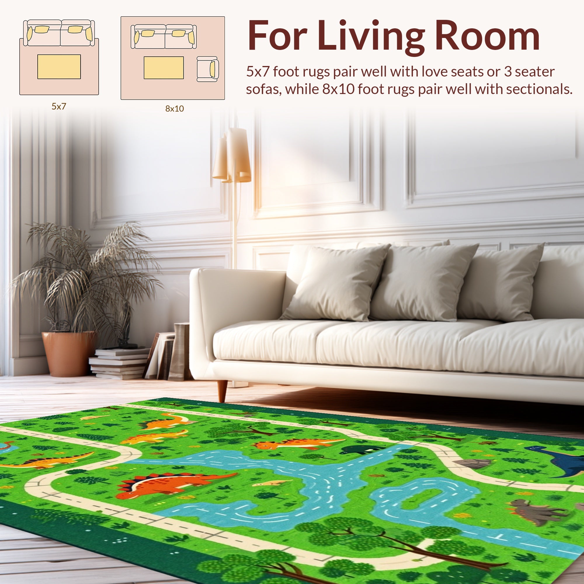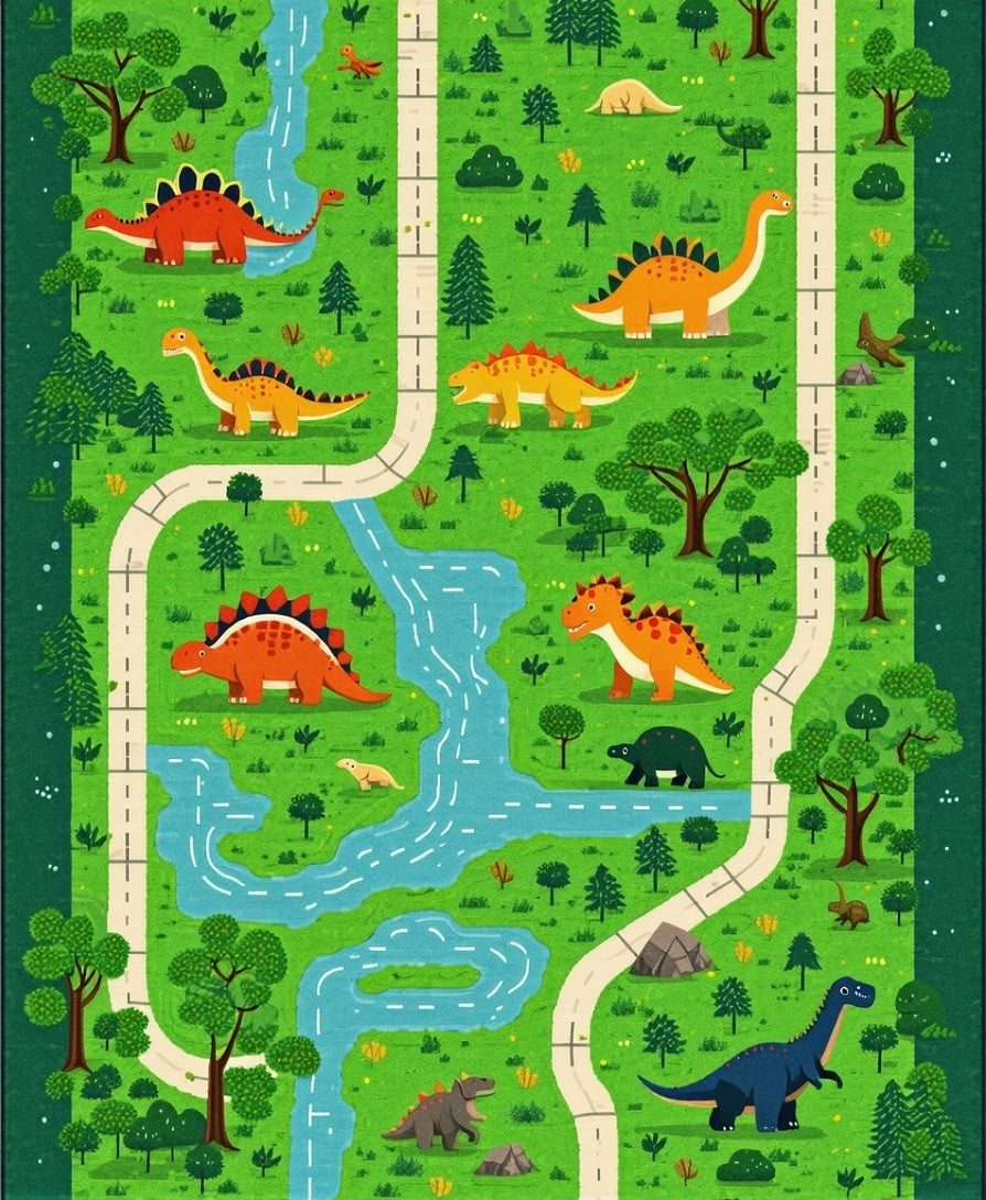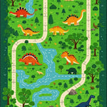 Flatwoven High Traffic Area Rug, Playful T Rex and Triceratops Theme, Non Slip, Stain Resistant, Washable Area Rugs for Living Room, Bedroom (Green) Overview: