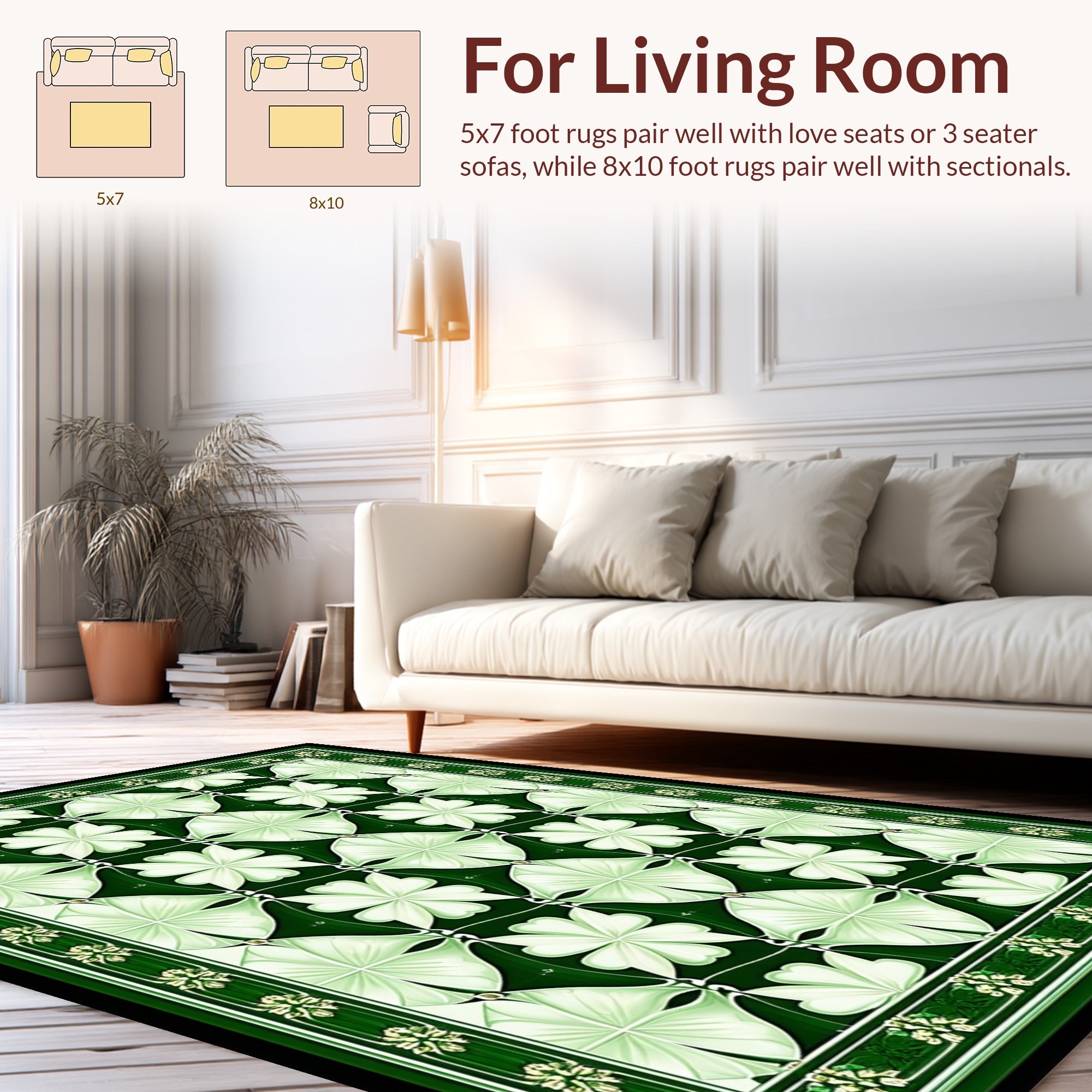 Flatwoven High Traffic Area Rug, Playful Traditional Trellis Style, Non Slip, Stain Resistant, Washable Area Rugs for Living Room, Bedroom (Green) Overview: