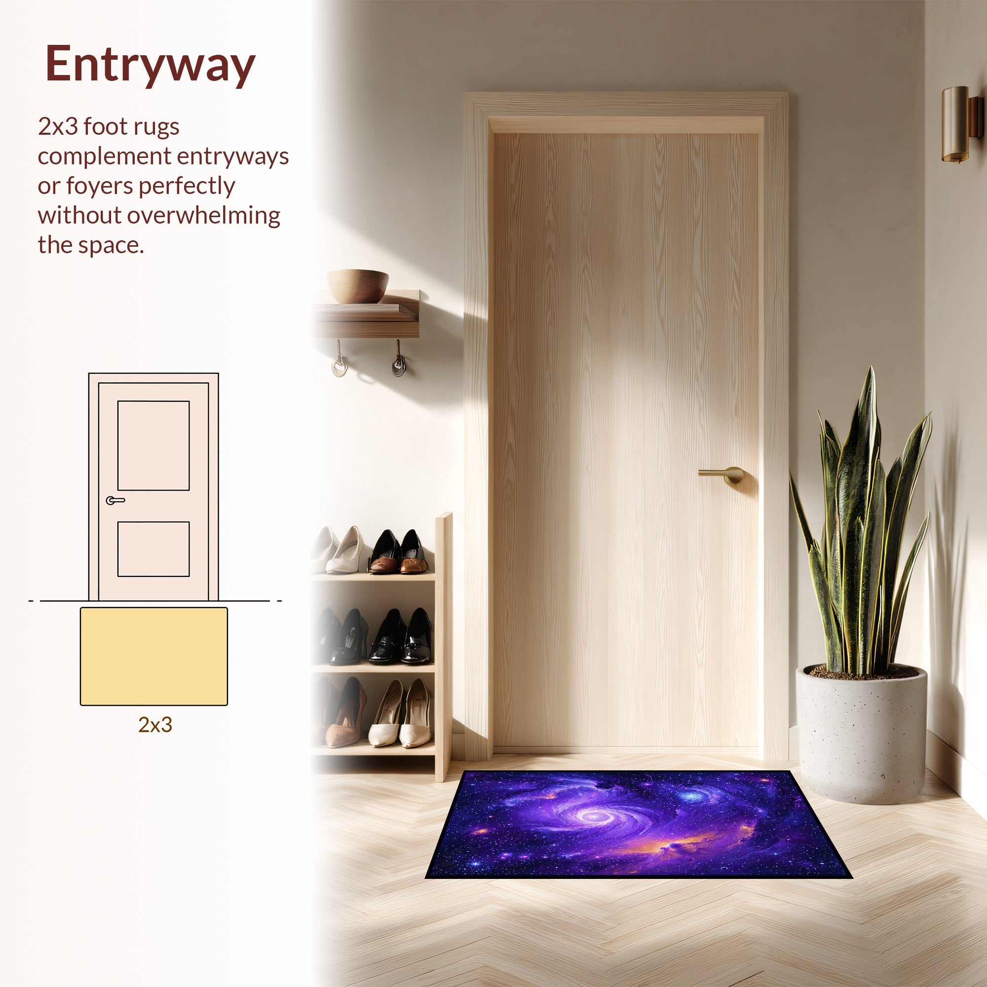 Flatwoven High Traffic Area Rug, Playful Universe Inspired Graphics, Non Slip, Stain Resistant, Washable Area Rugs for Living Room, Bedroom (Purple) Overview: