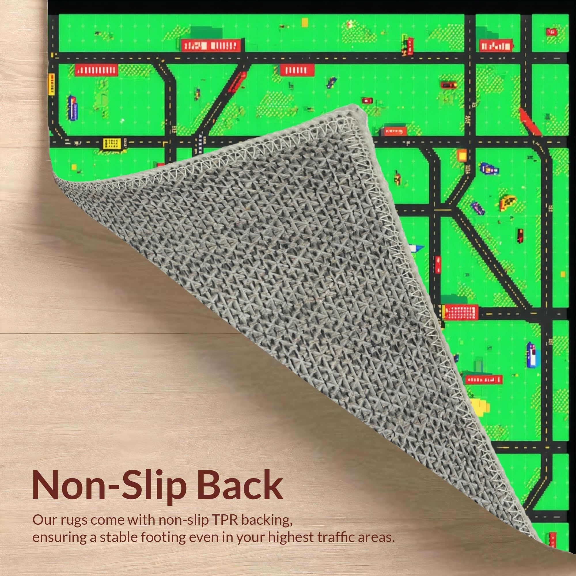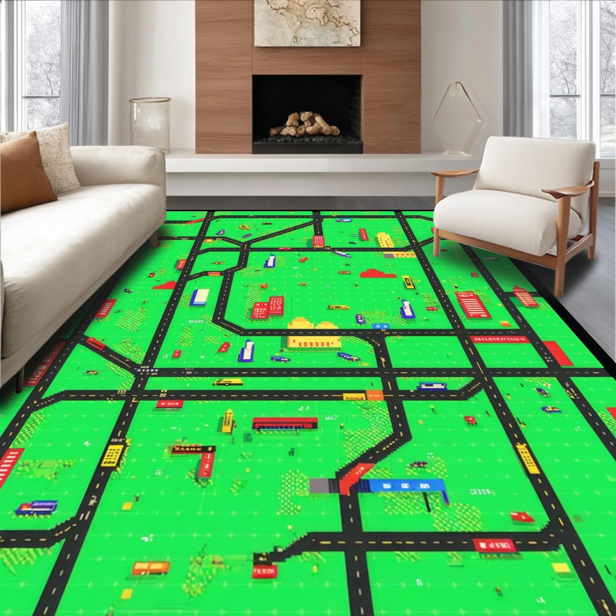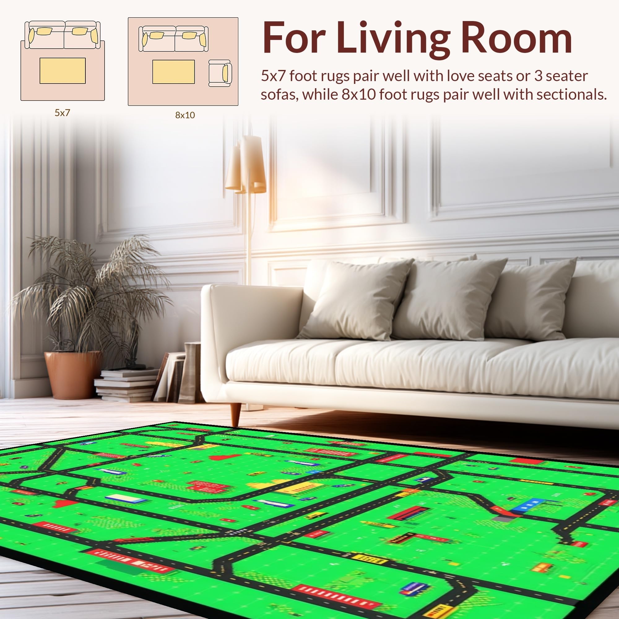Ultra Soft Area Rug, Non Slip, Stain Resistant, Washable Area Rugs for Living Room, Bedroom, Playful Urban Landscape Aesthetic(Green) Overview: