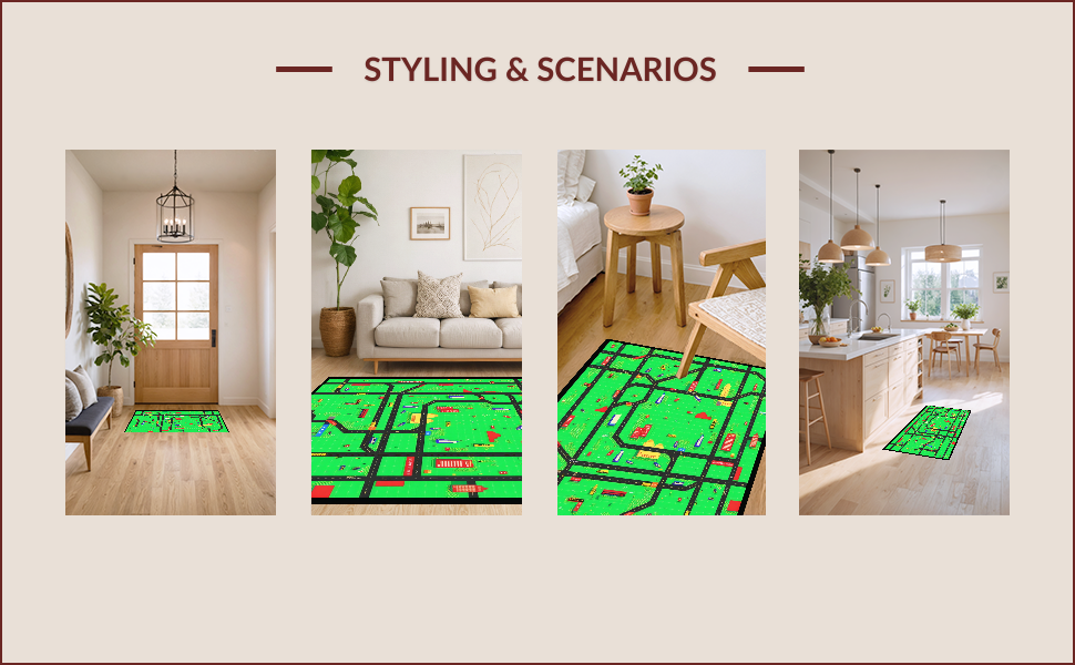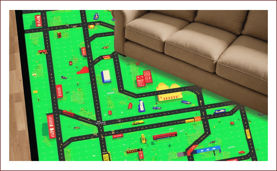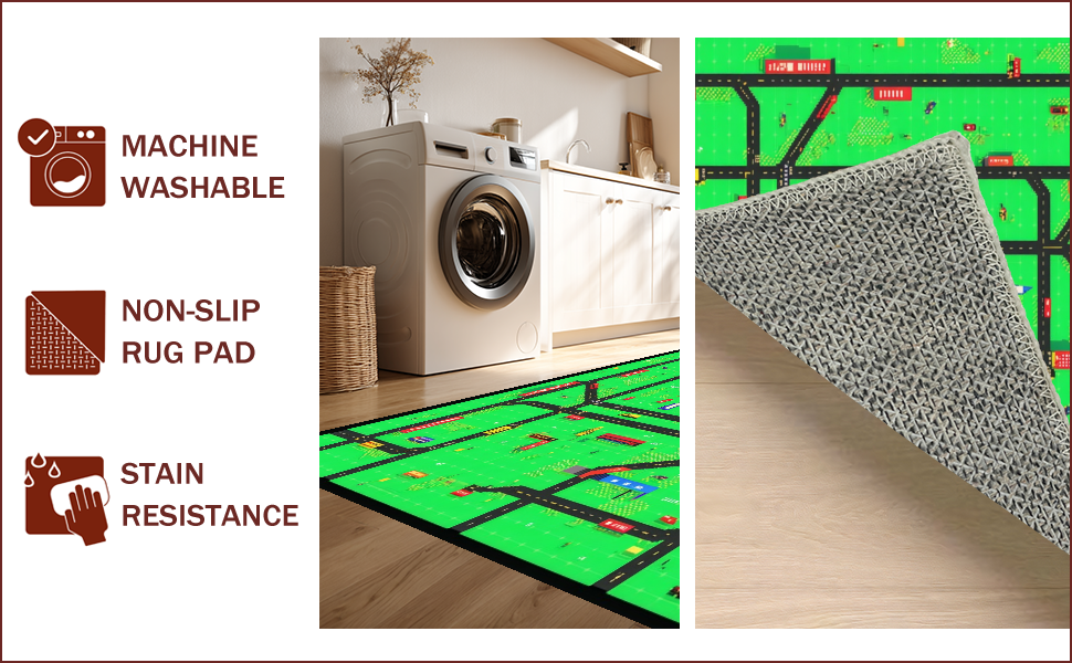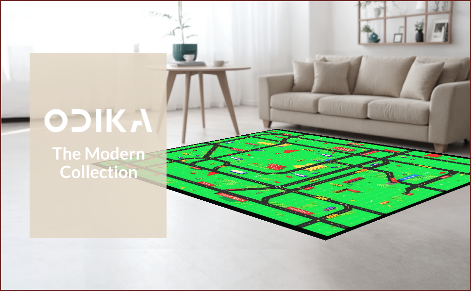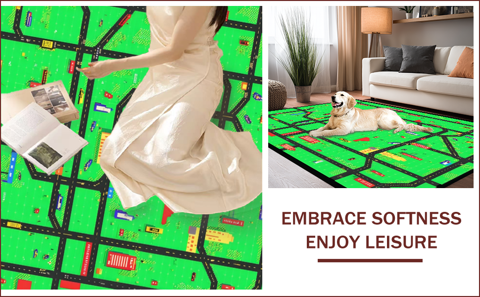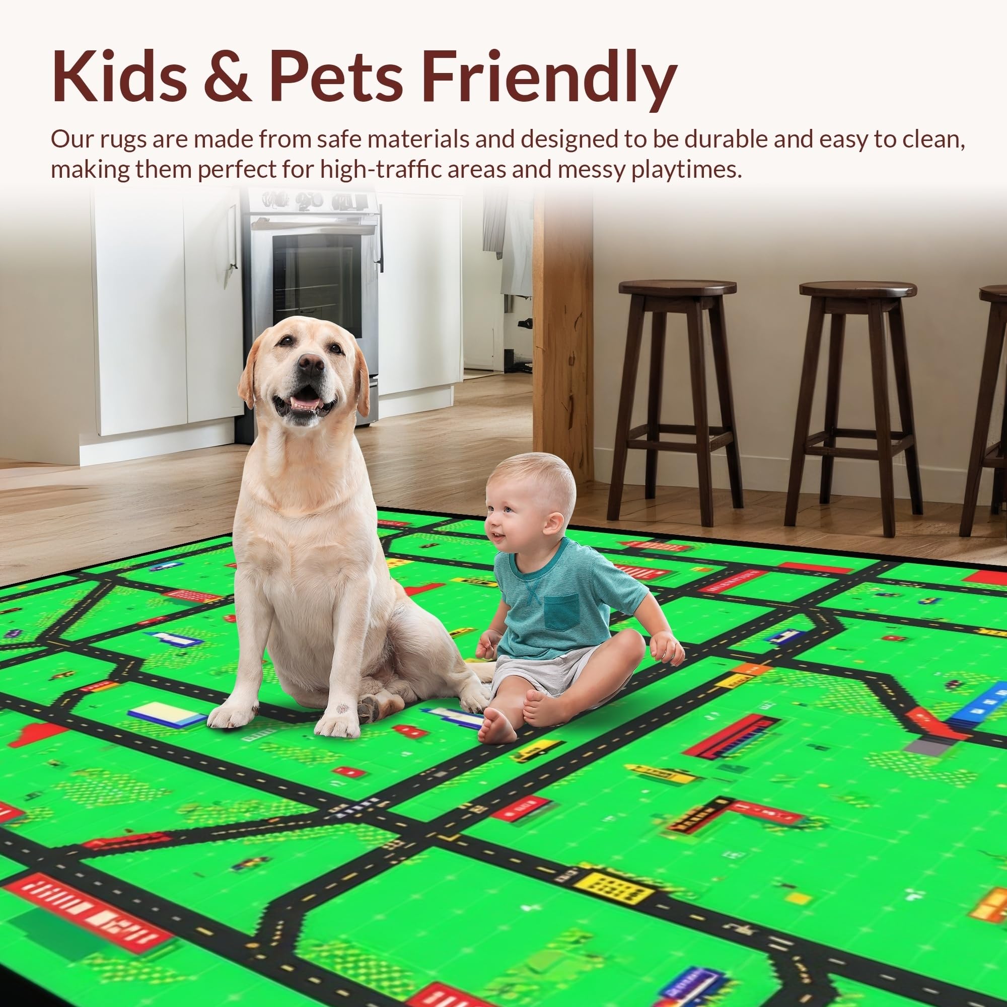 Ultra Soft Area Rug, Non Slip, Stain Resistant, Washable Area Rugs for Living Room, Bedroom, Playful Urban Landscape Aesthetic(Green) Overview: