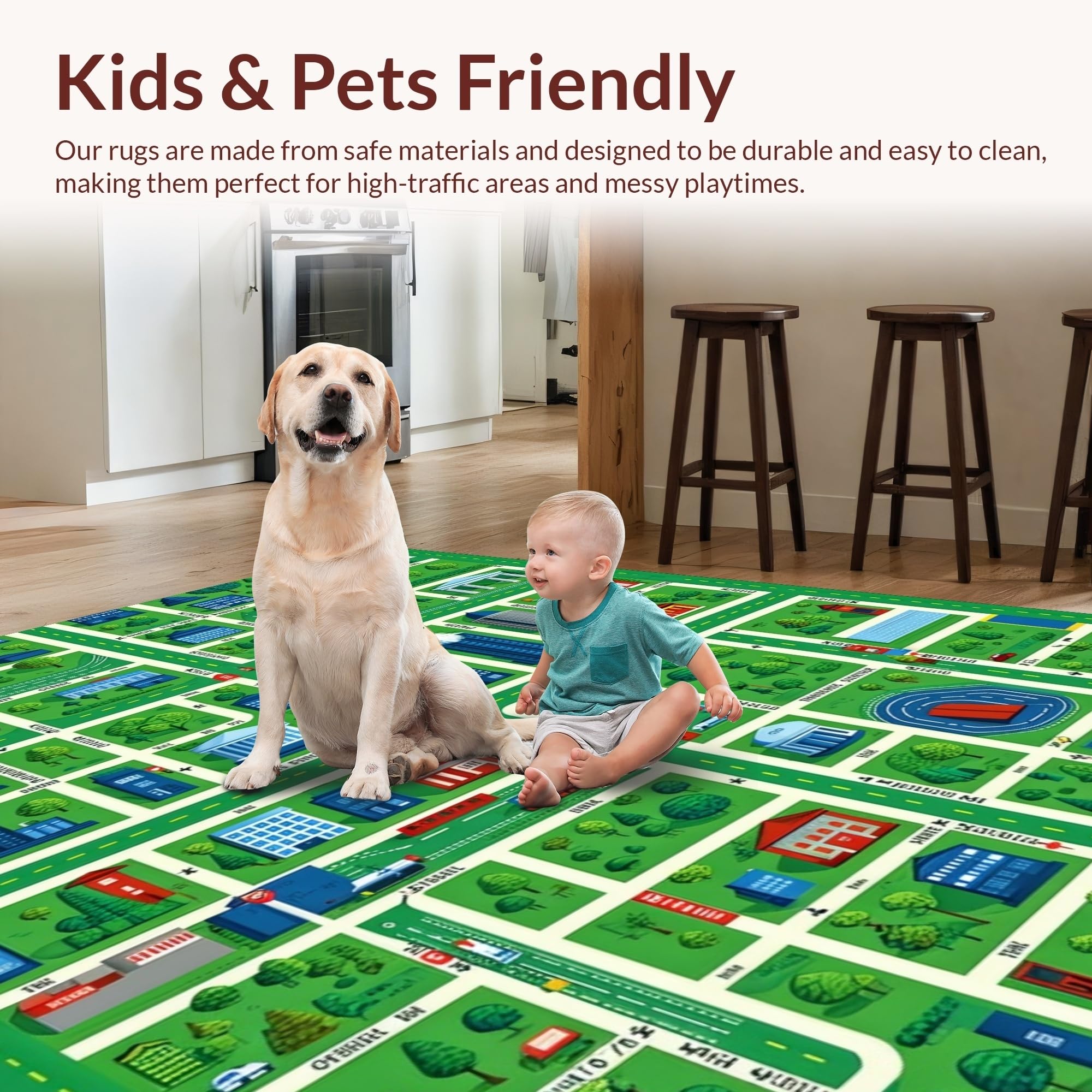 Ultra Soft Area Rug, Non Slip, Stain Resistant, Washable Area Rugs for Living Room, Bedroom, Playful Urban Track Layout Rug(Blue) Overview:
