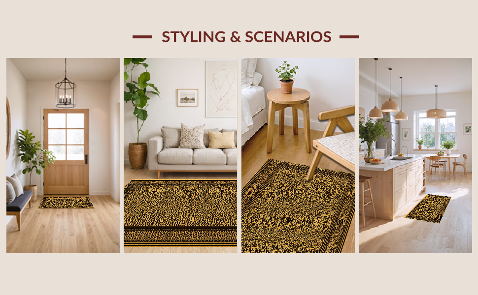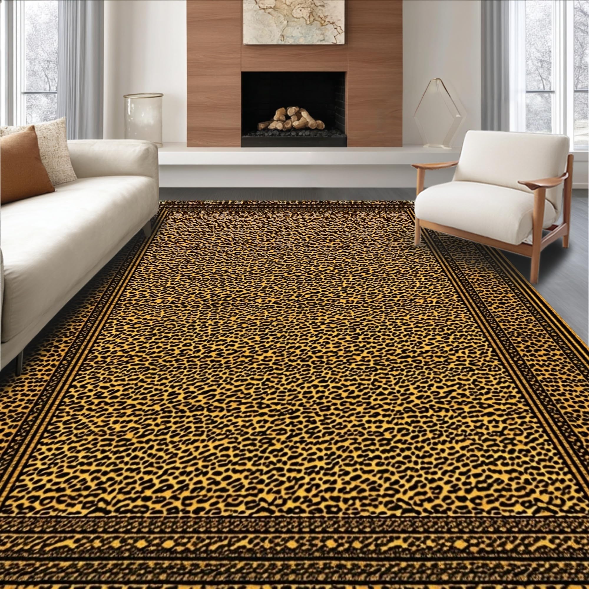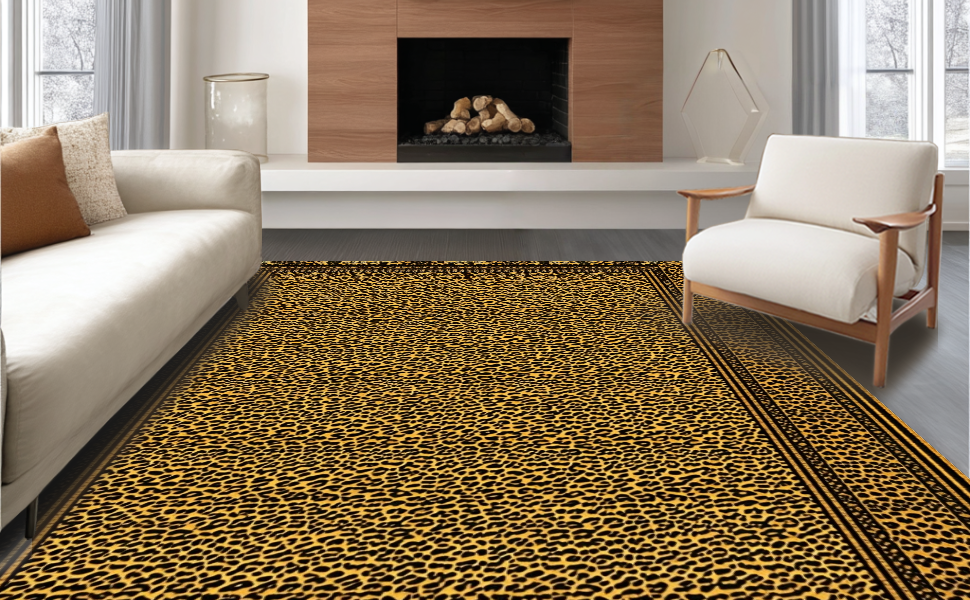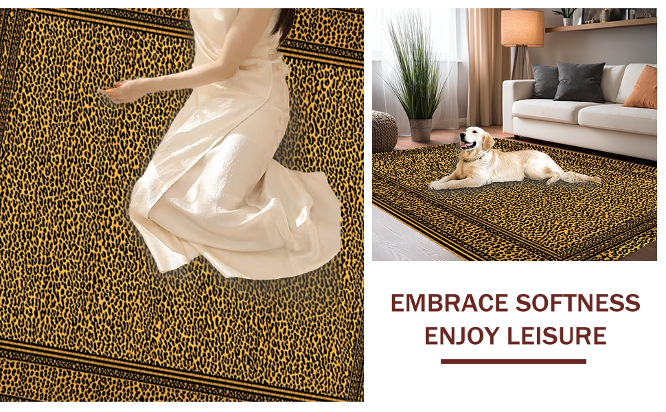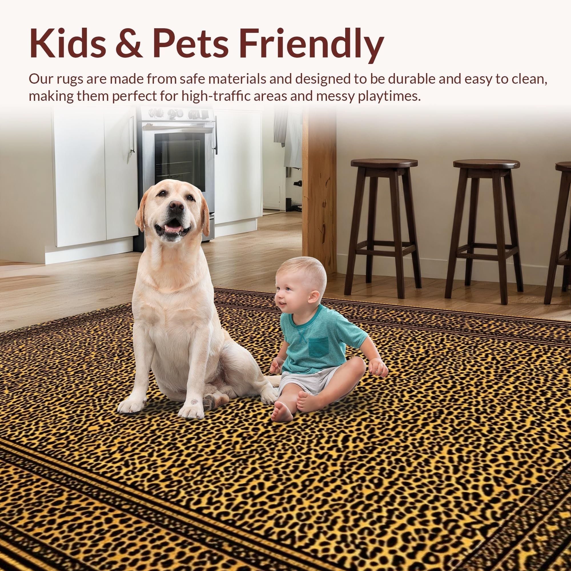 Ultra Soft Area Rug, Non Slip, Stain Resistant, Washable Area Rugs for Living Room, Bedroom, Playful Whimsical Animal Motif(Gold) Overview: