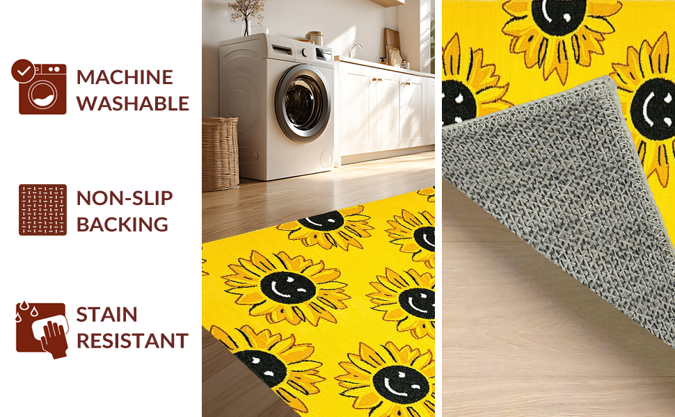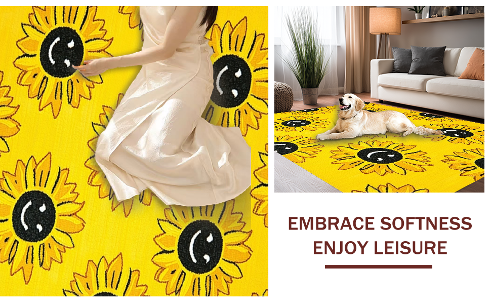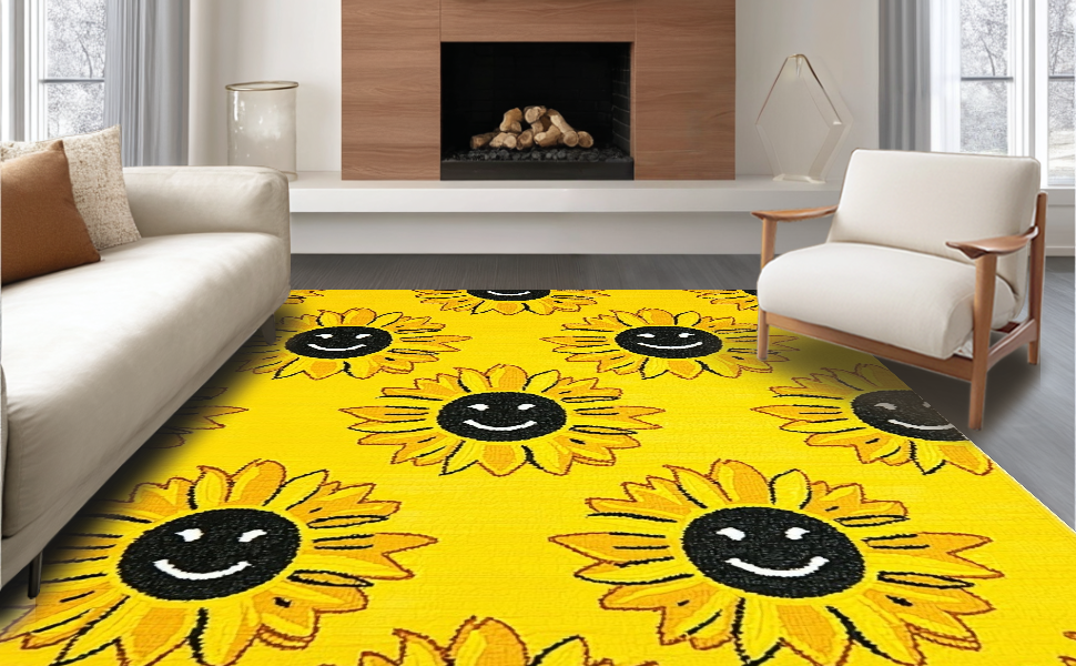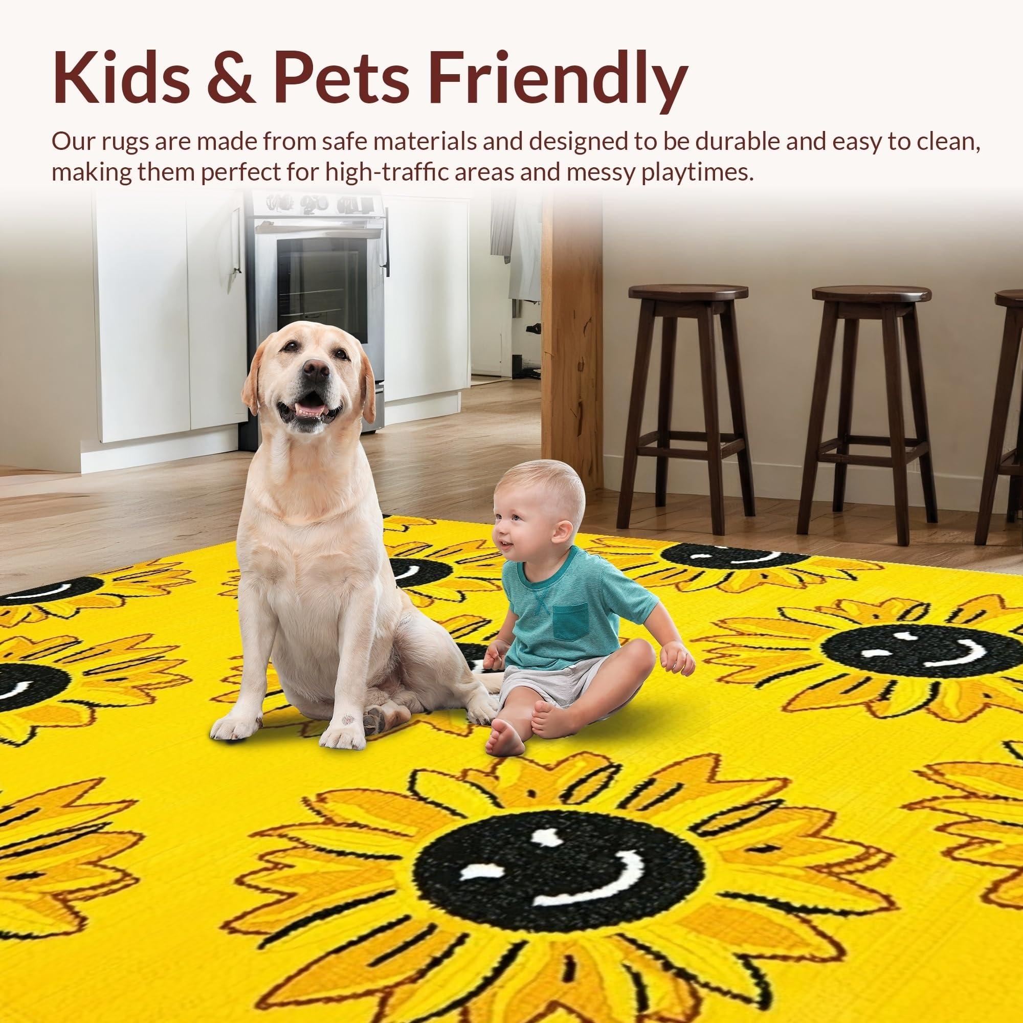 Ultra Soft Area Rug, Non Slip, Stain Resistant, Washable Area Rugs for Living Room, Bedroom, Playful Yellow Botanical Design(Yellow) Overview: