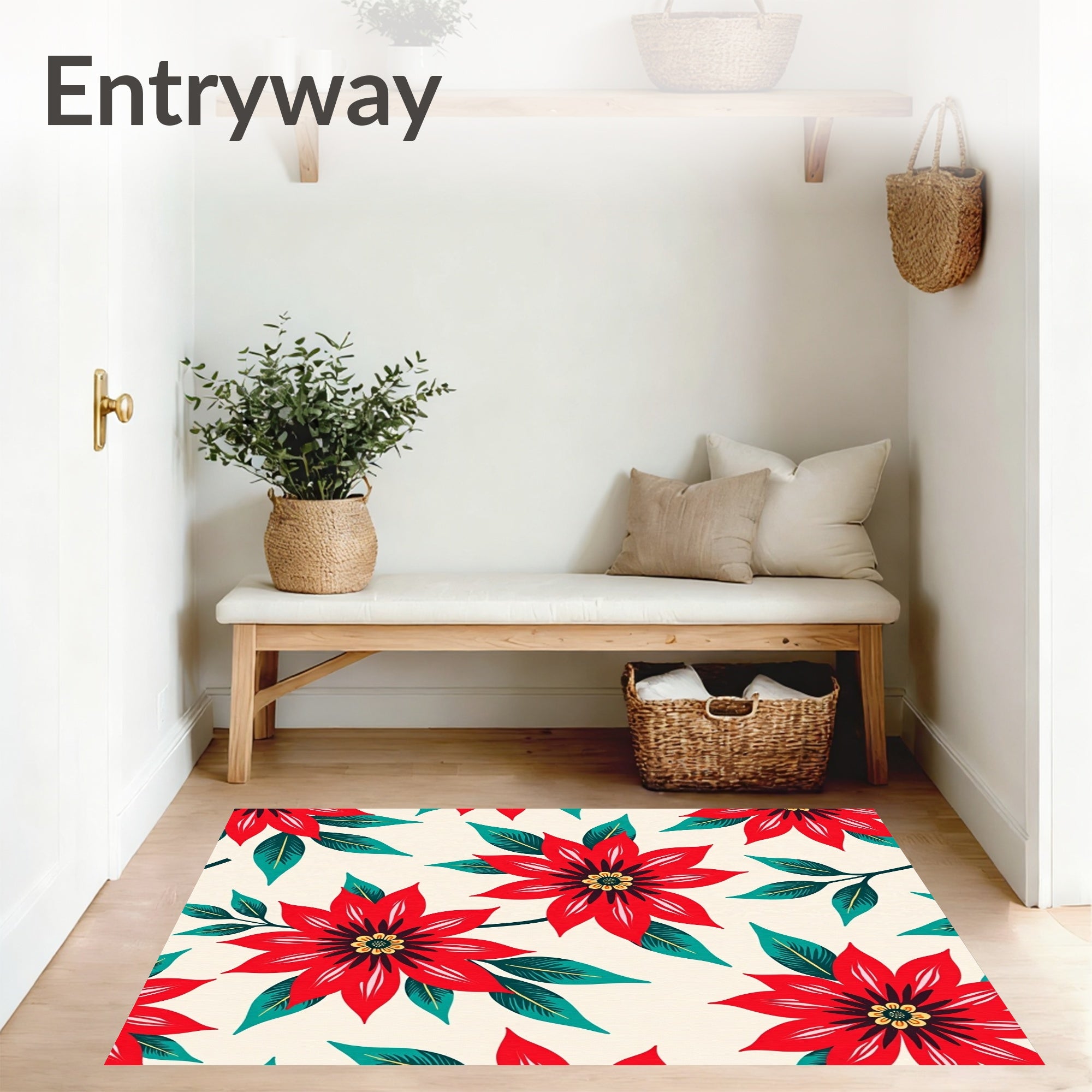 Ultra Soft Area Rug, Non Slip, Stain Resistant, Washable Area Rugs for Living Room, Bedroom, Poinsettia Bloom Cluster Seasonal Decorative(Red) Overview: