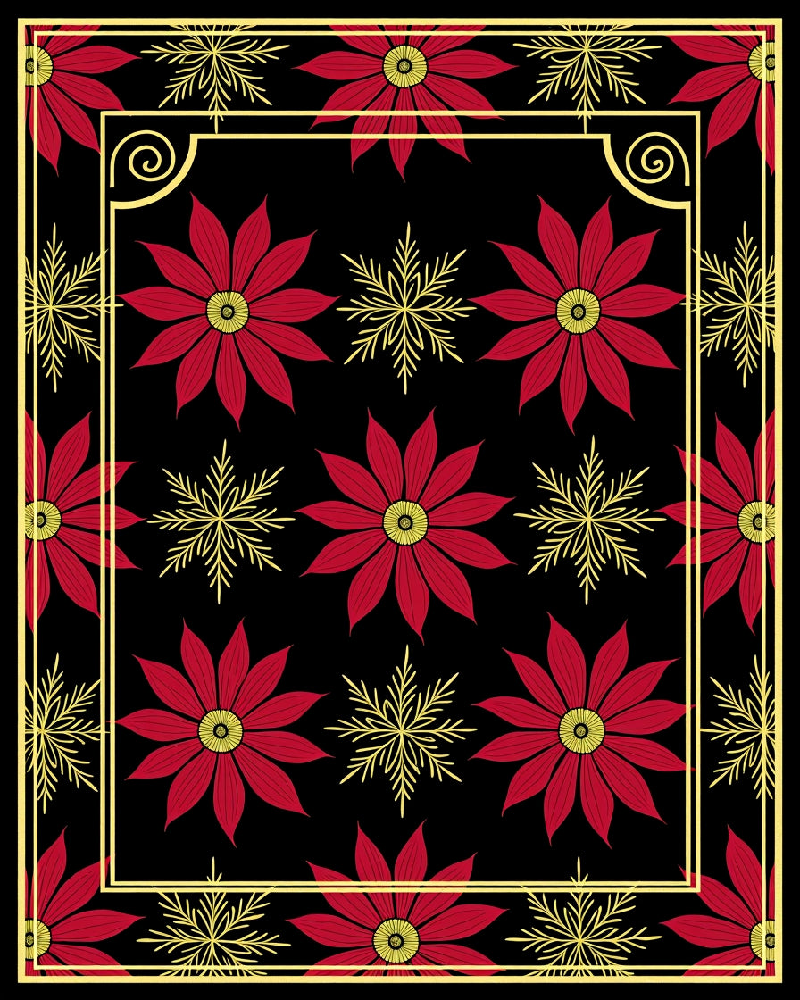 Poinsettia Bloom Damask with Traditional Holiday Framework(Red)