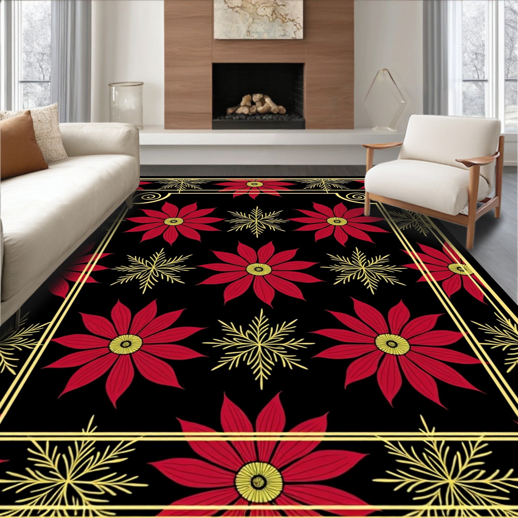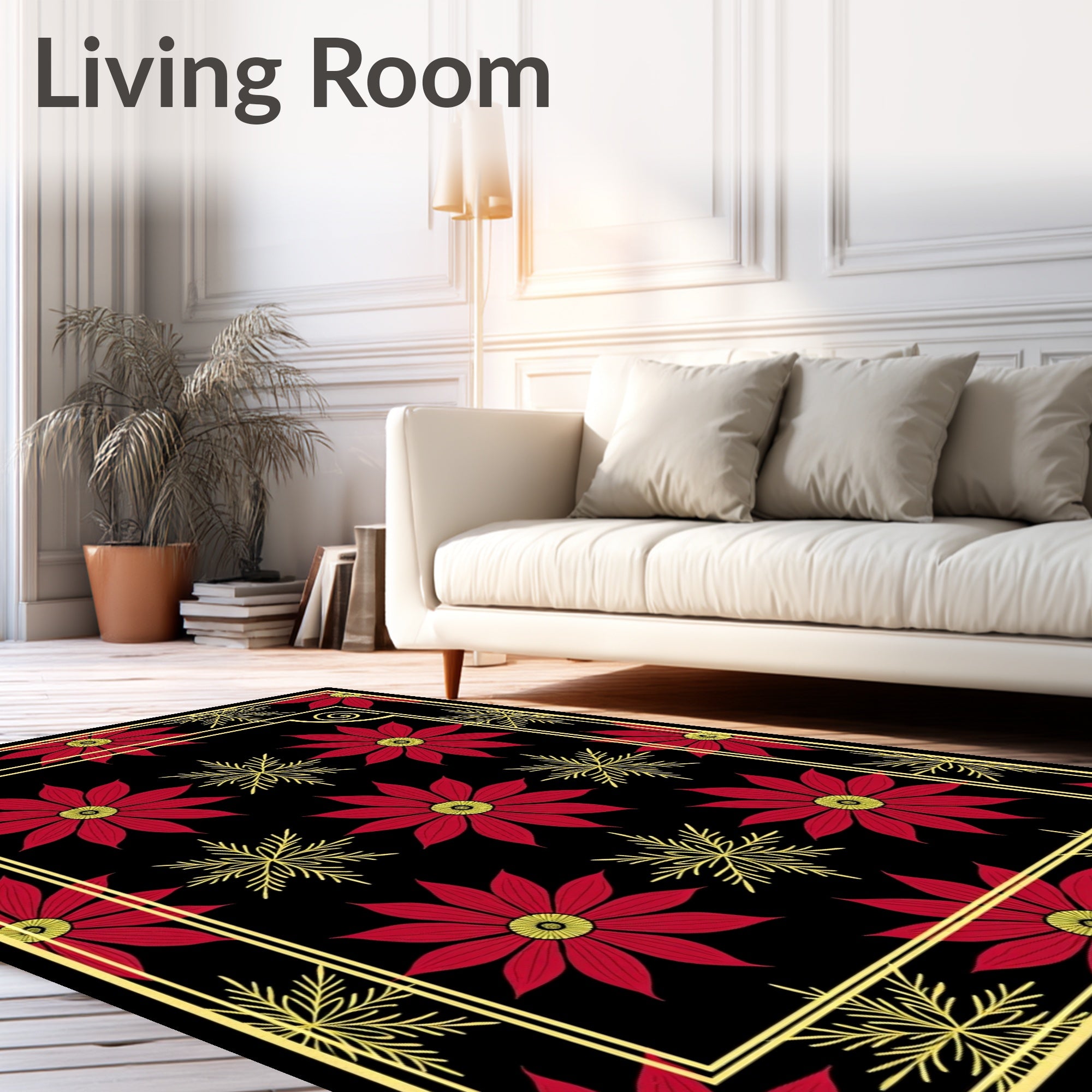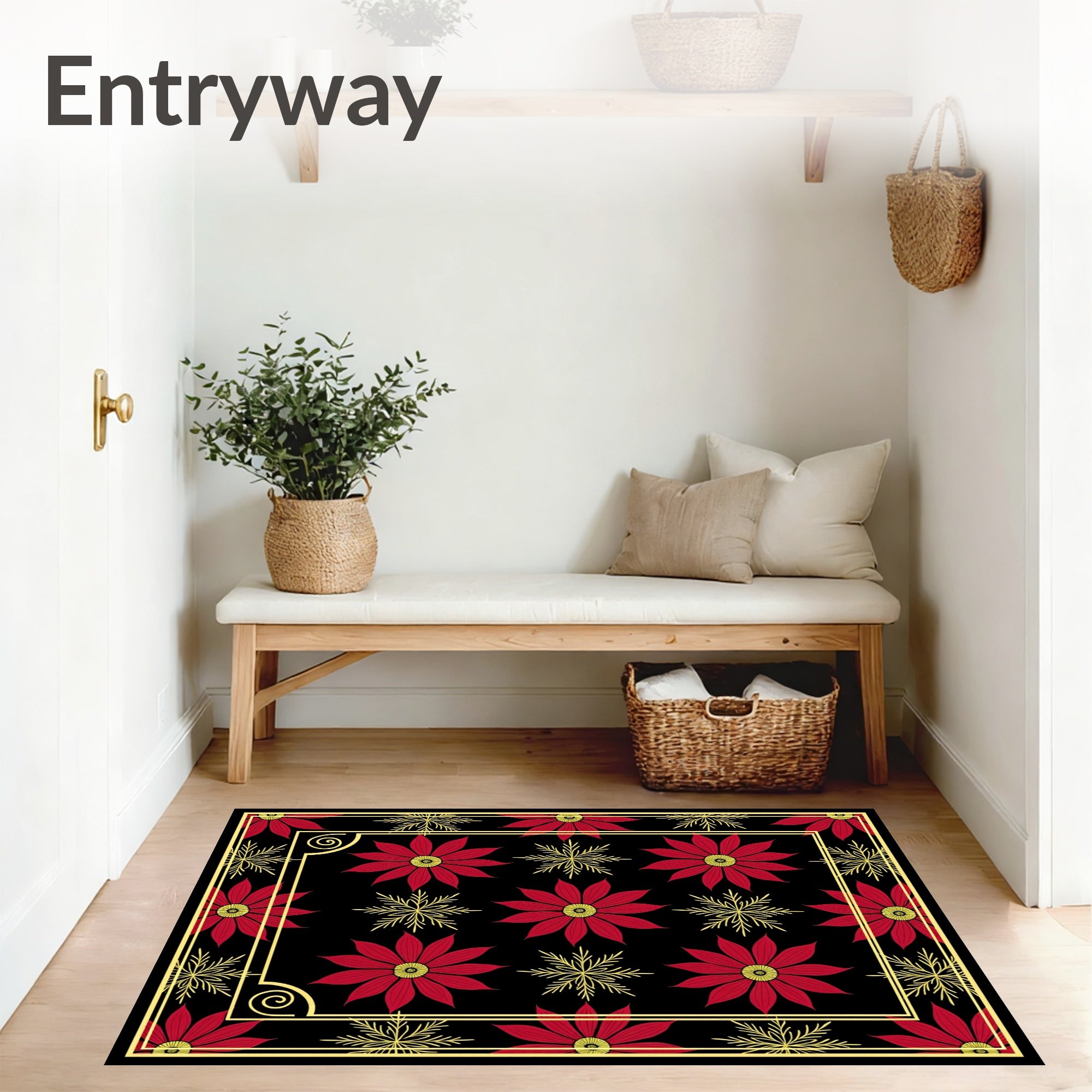Ultra Soft Area Rug, Non Slip, Stain Resistant, Washable Area Rugs for Living Room, Bedroom, Poinsettia Bloom Damask with Traditional Holiday Framework(Red) Overview: