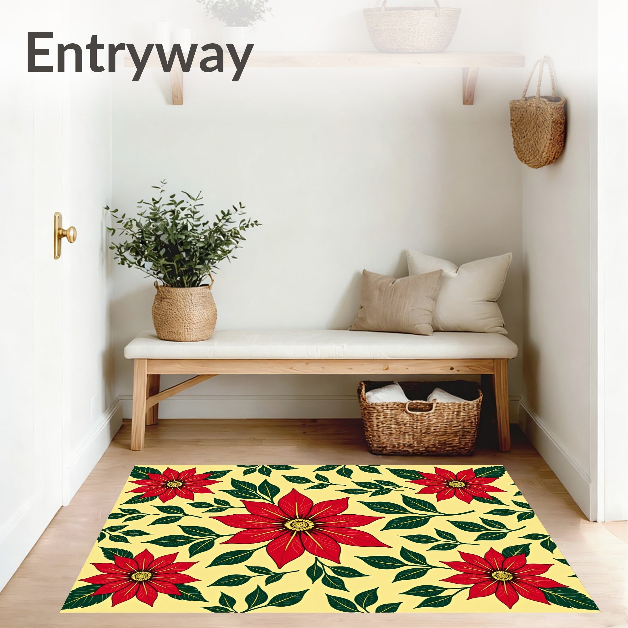Ultra Soft Area Rug, Non Slip, Stain Resistant, Washable Area Rugs for Living Room, Bedroom, Poinsettia Bloom Design Machine(Red) Overview:
