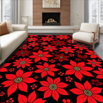 Flatwoven High Traffic Area Rug, Poinsettia Bloom Mosaic with Ornamental Yuletide Flourishes, Non Slip, Stain Resistant, Washable Area Rugs for Living Room, Bedroom (Red) Overview: