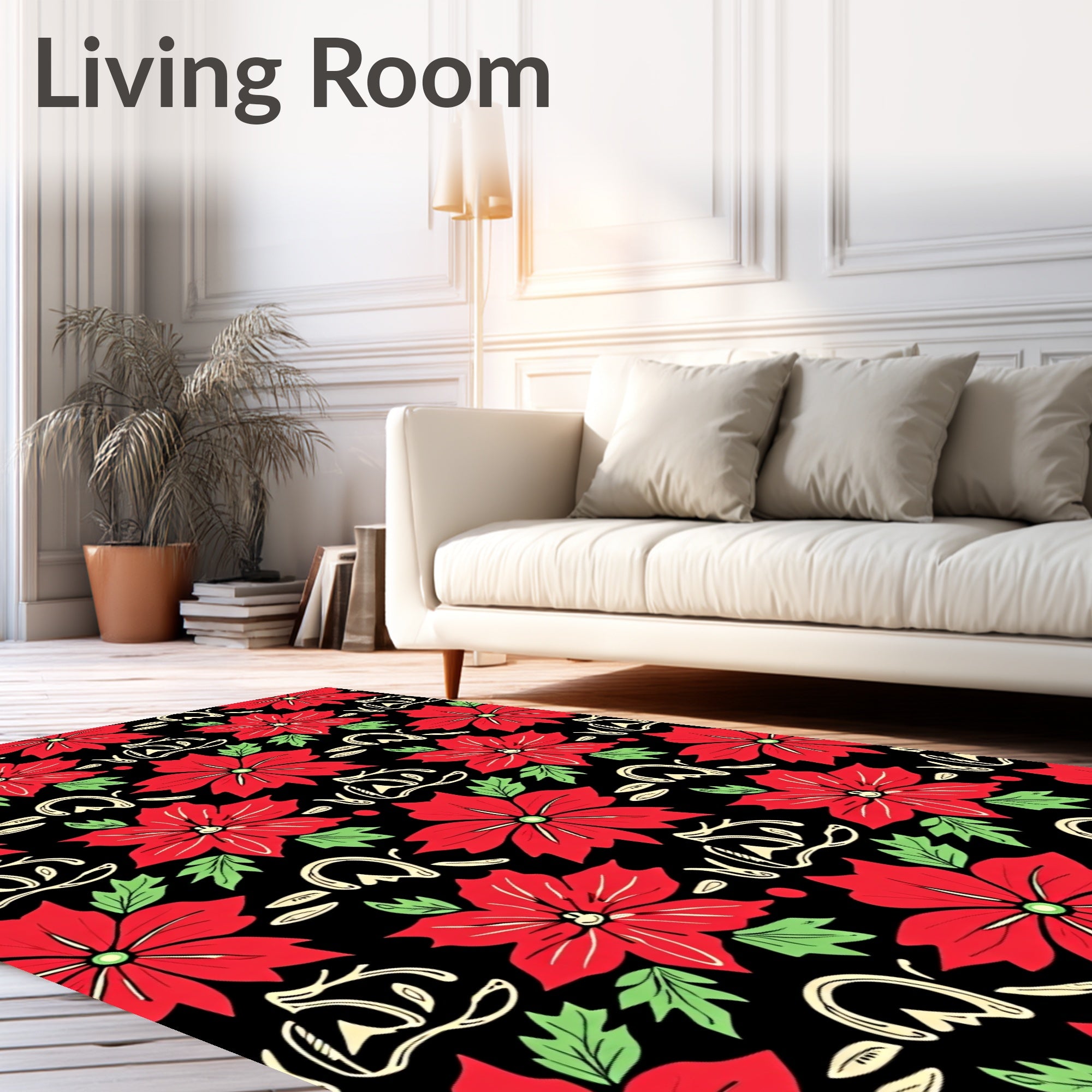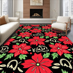 Ultra Soft Area Rug, Non Slip, Stain Resistant, Washable Area Rugs for Living Room, Bedroom, Poinsettia Bloom Seasonal Floor Art(Red) Overview: