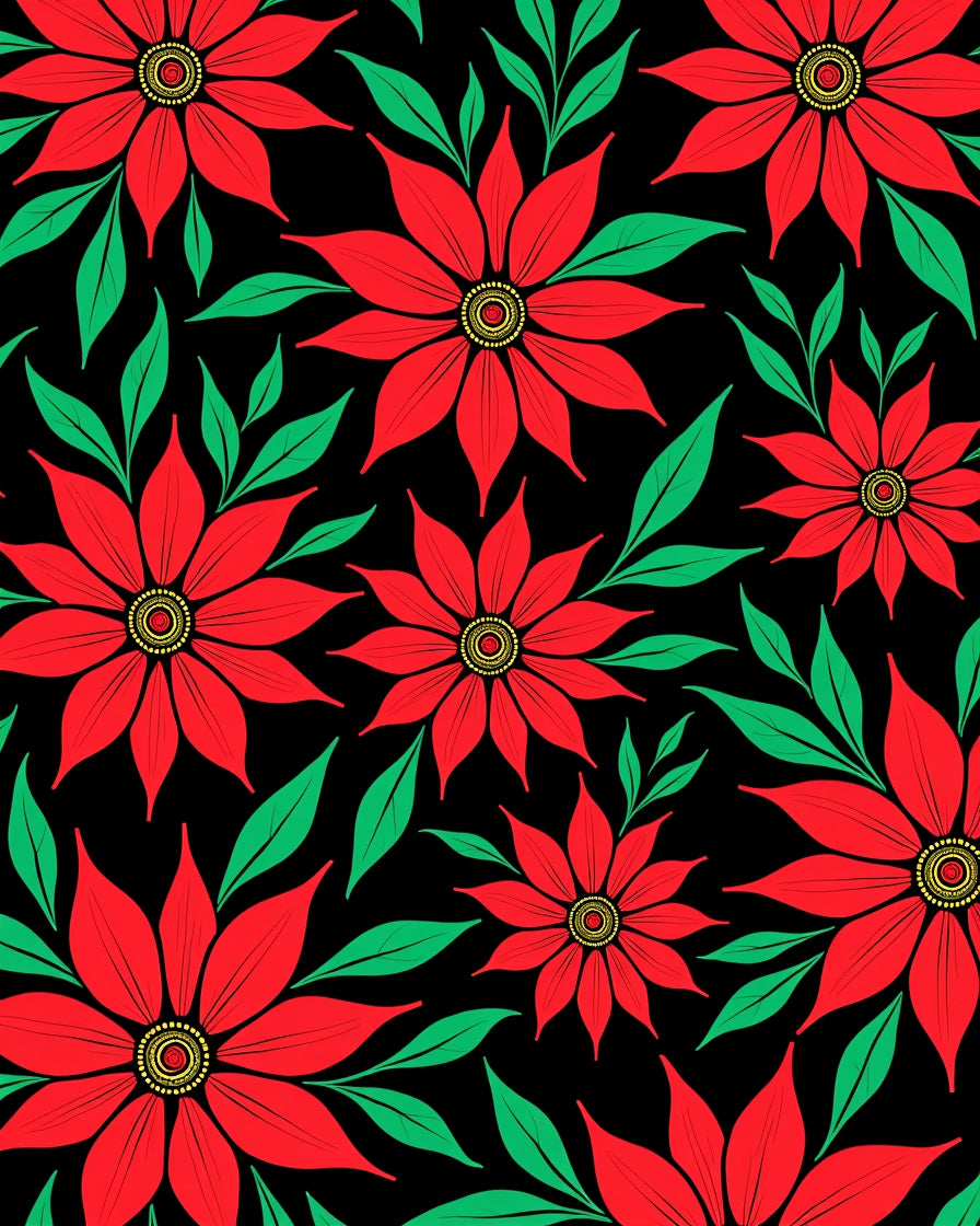 Poinsettia Blossom Floral Motif Entrance Seasonal Greeting(Red)