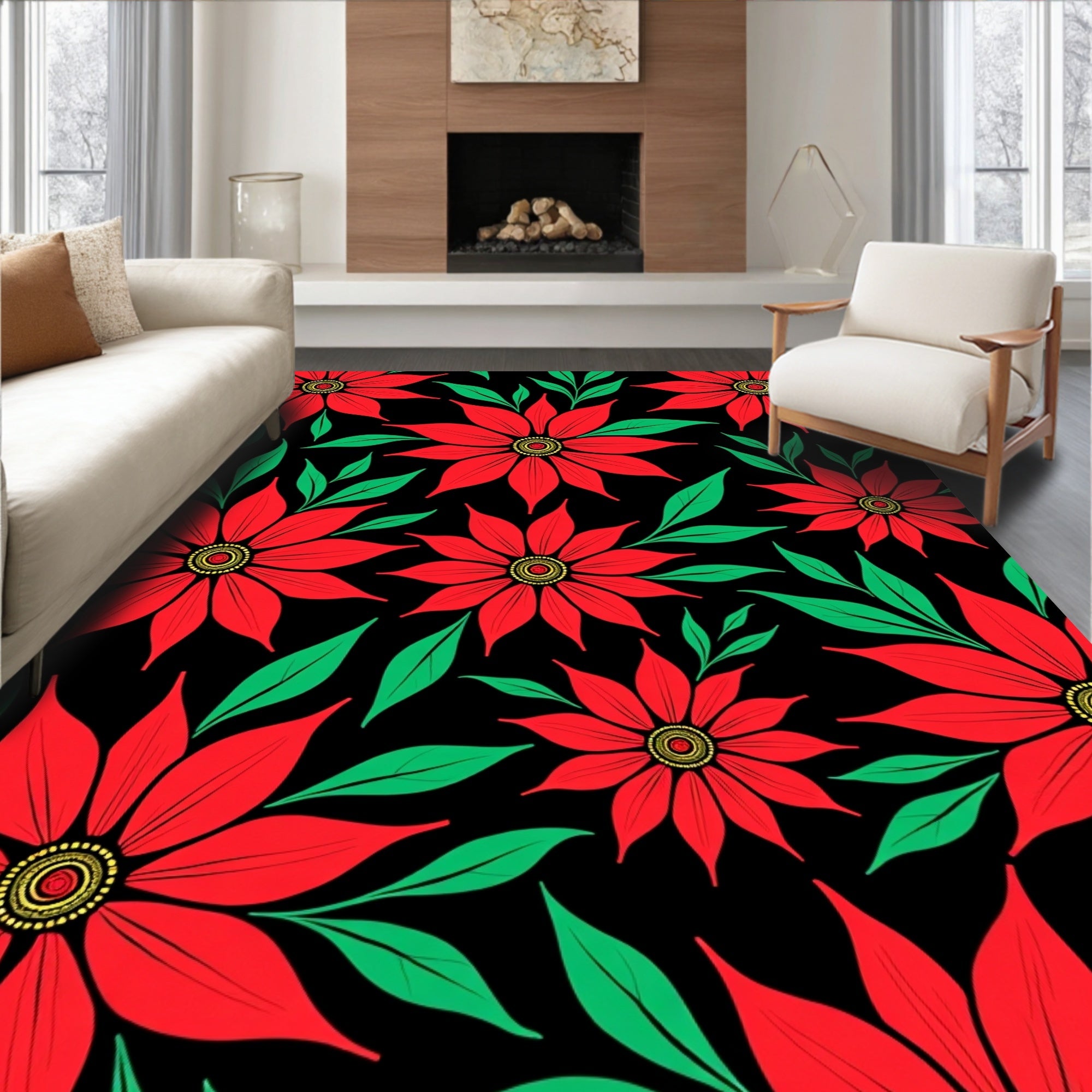 Flatwoven High Traffic Area Rug, Poinsettia Blossom Floral Motif Entrance Seasonal Greeting, Non Slip, Stain Resistant, Washable Area Rugs for Living Room, Bedroom (Red) Overview: