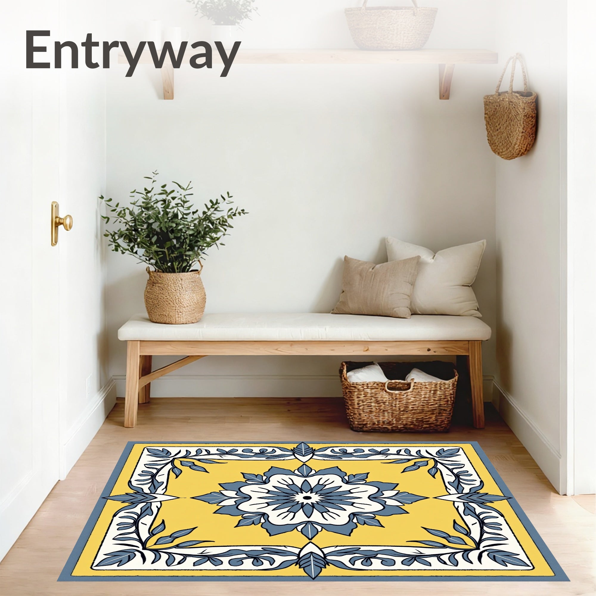 Ultra Soft Area Rug, Non Slip, Stain Resistant, Washable Area Rugs for Living Room, Bedroom, Providence Autumn Foliage Medallion Heritage Collection(Yellow) Overview: