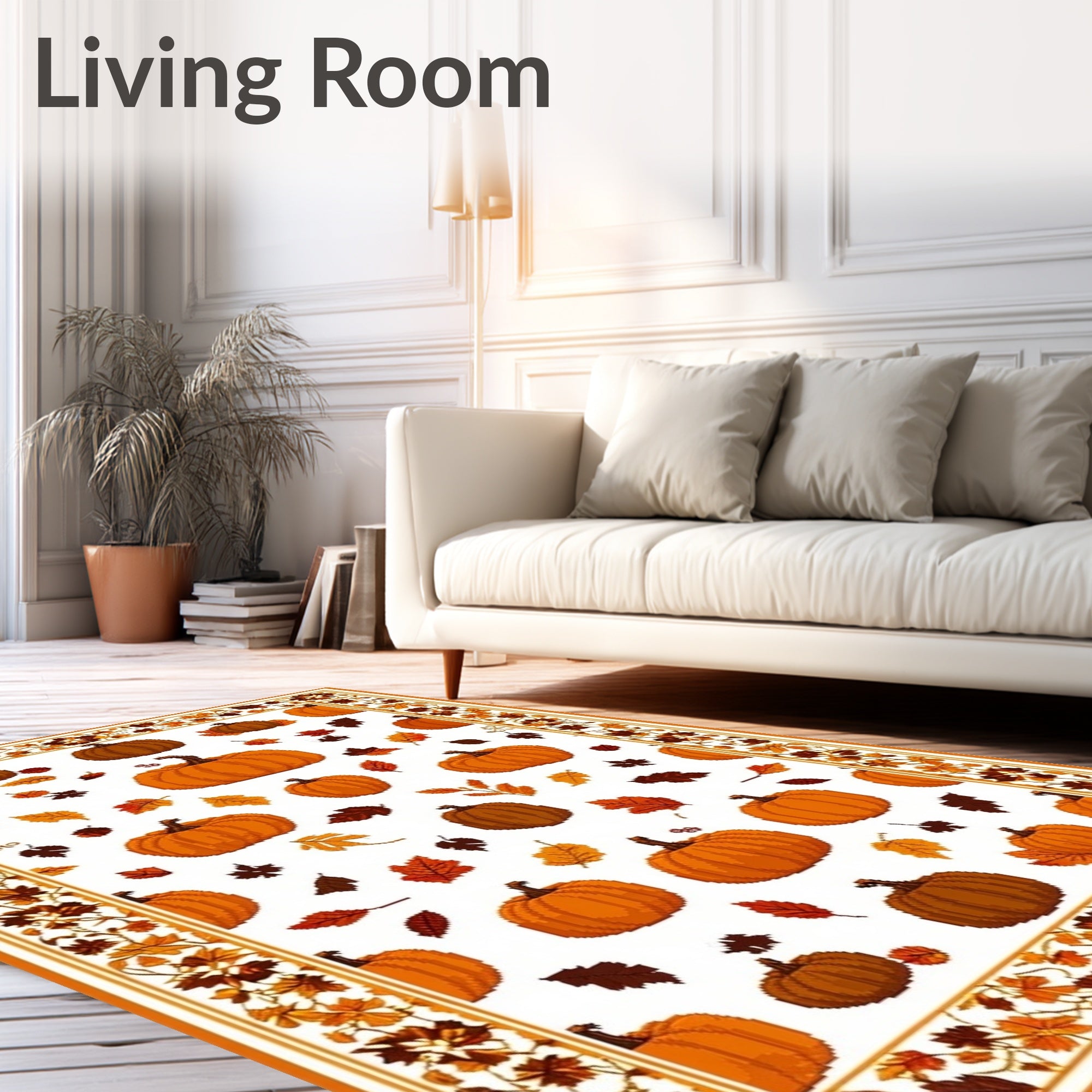 Ultra Soft Area Rug, Non Slip, Stain Resistant, Washable Area Rugs for Living Room, Bedroom, Pumpkin Patch Circle(Orange) Overview: