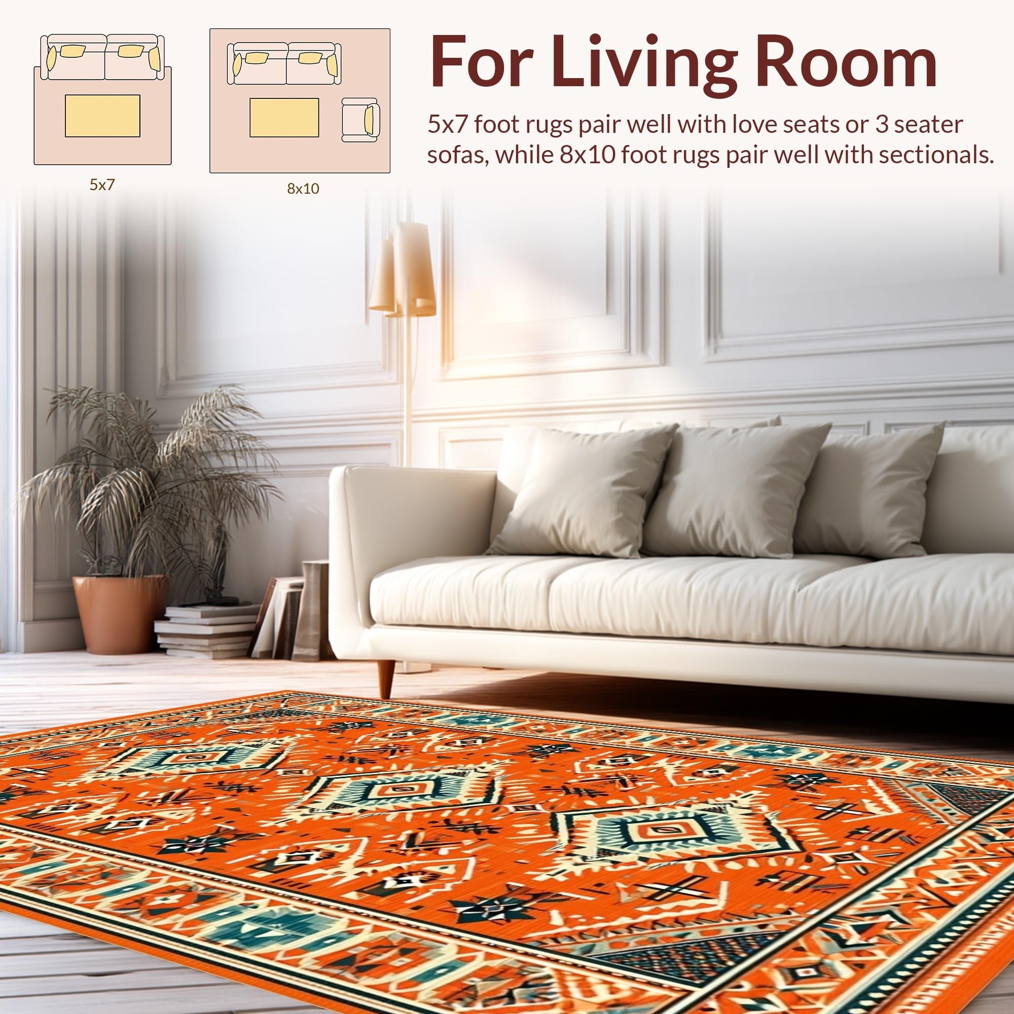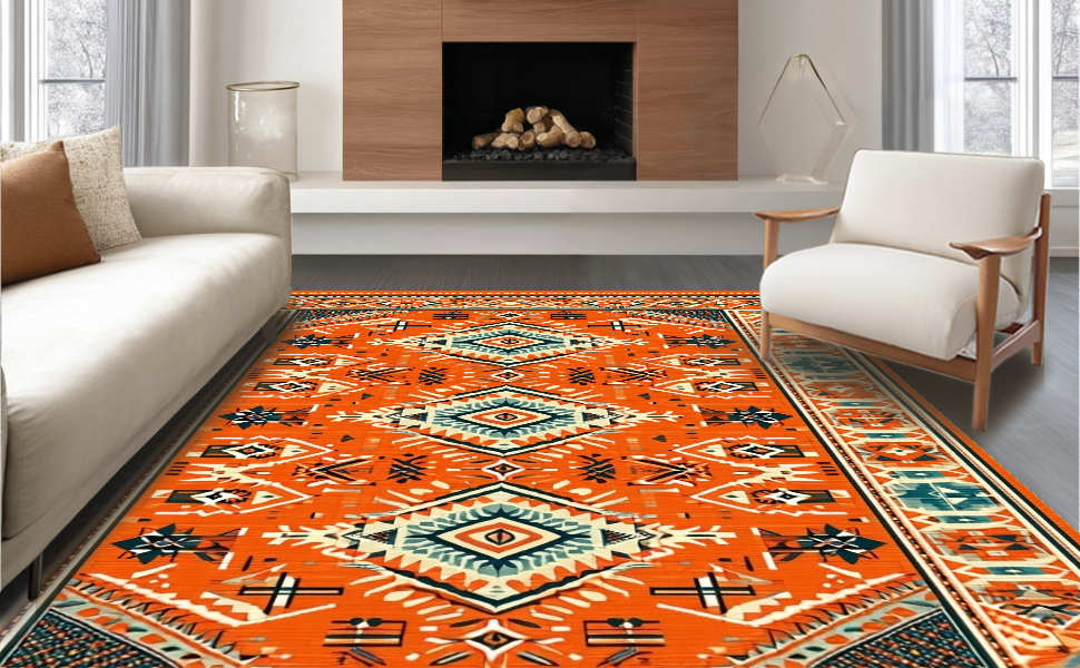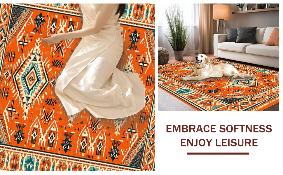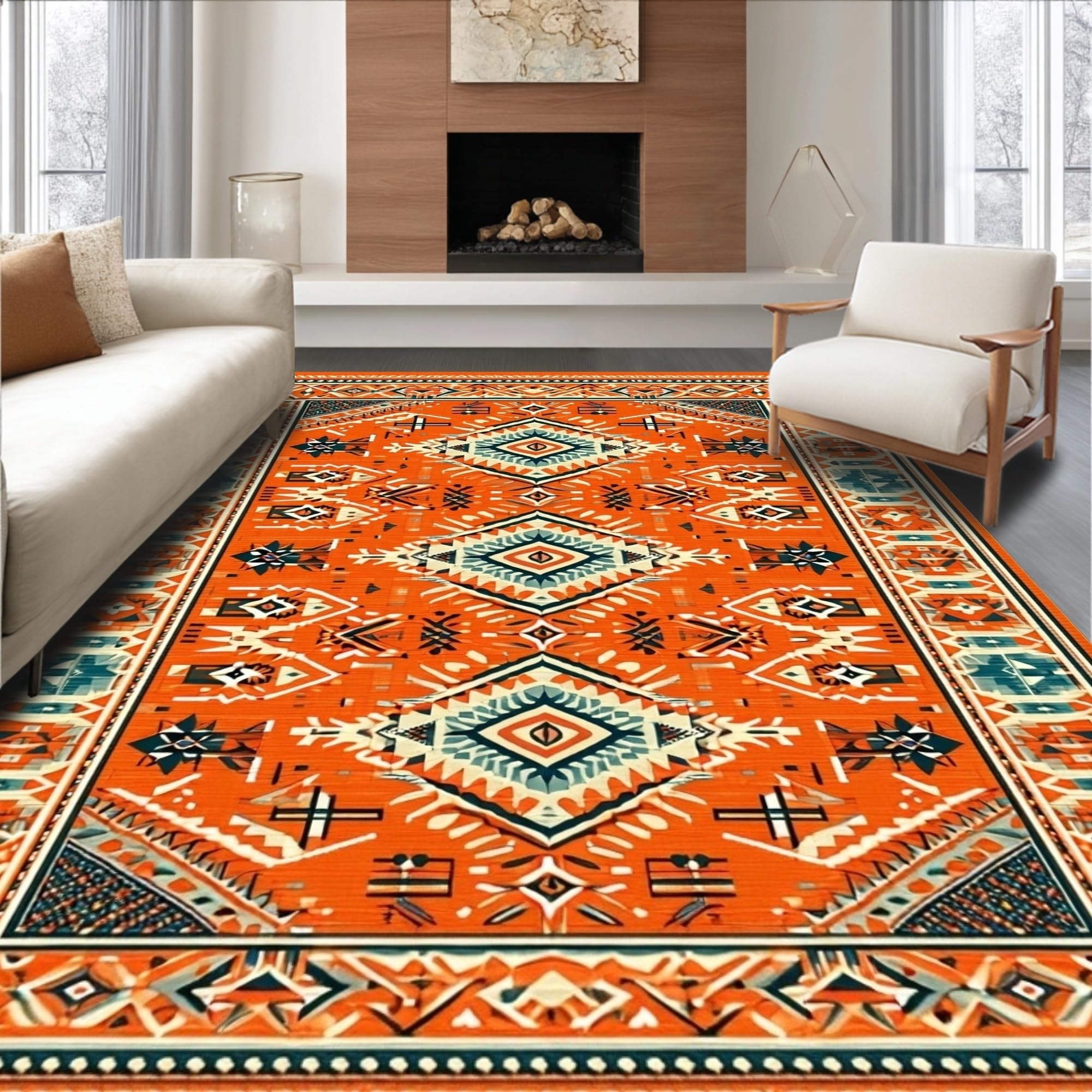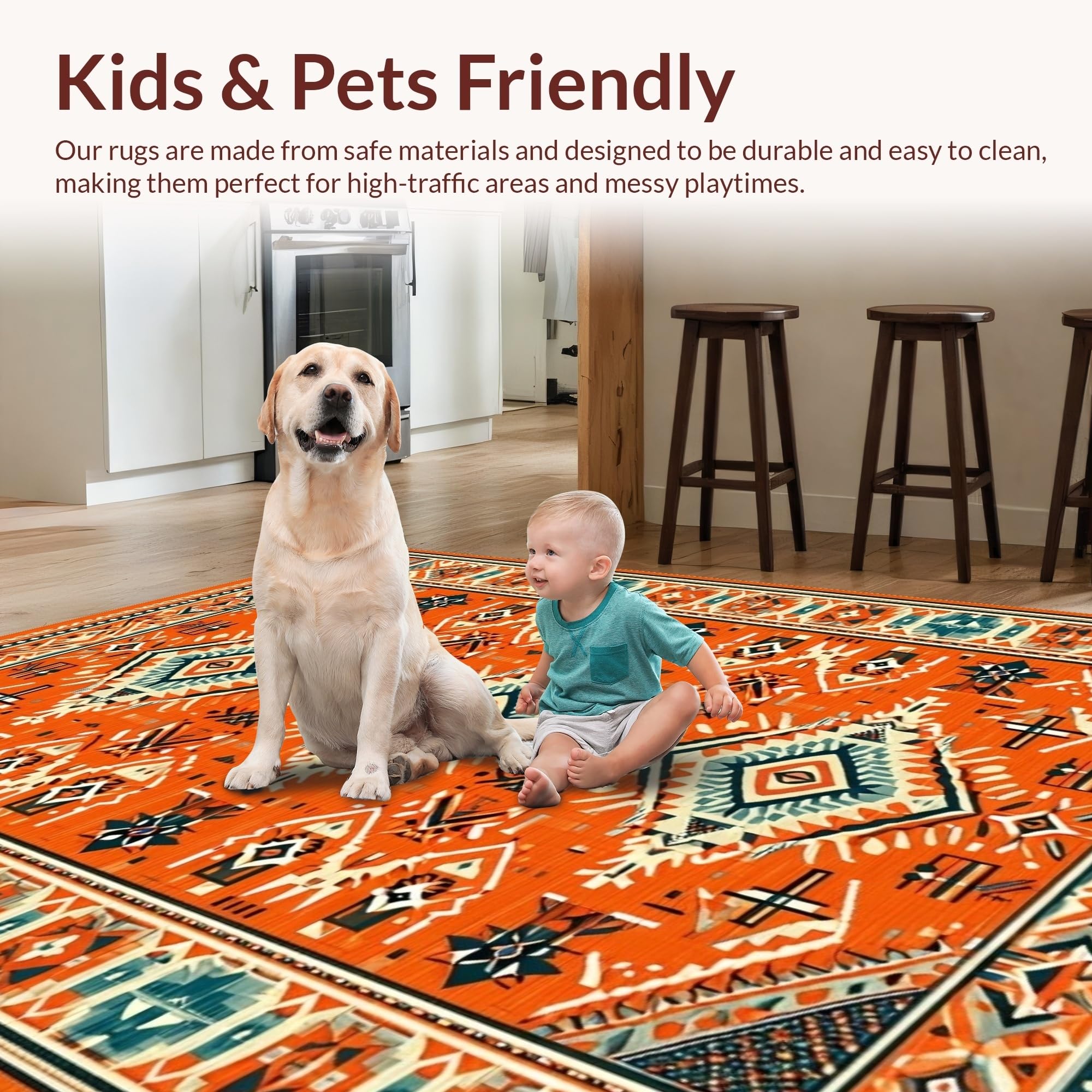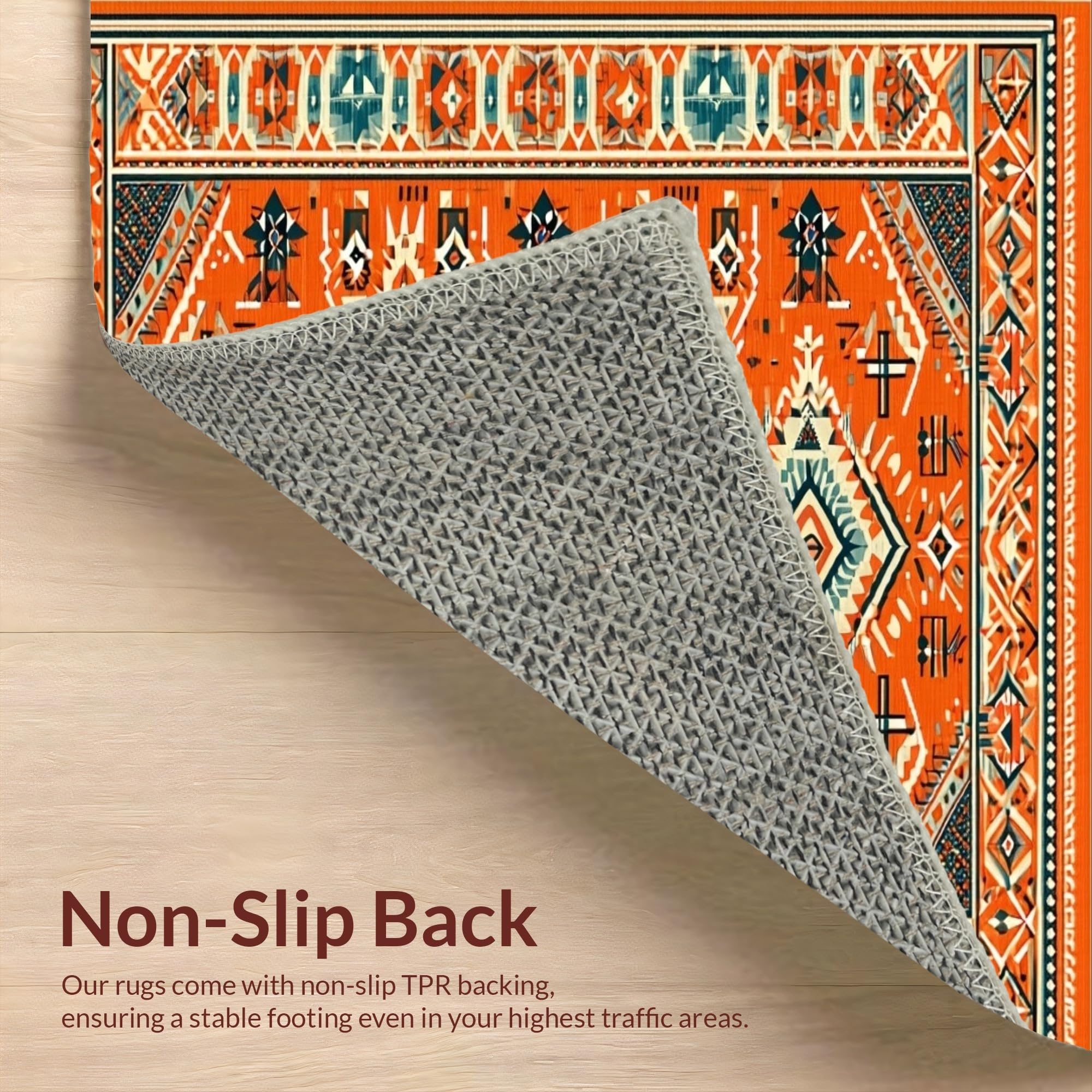 Ultra Soft Area Rug, Non Slip, Stain Resistant, Washable Area Rugs for Living Room, Bedroom, Quirky Half Circle Color Splash(Orange) Overview:
