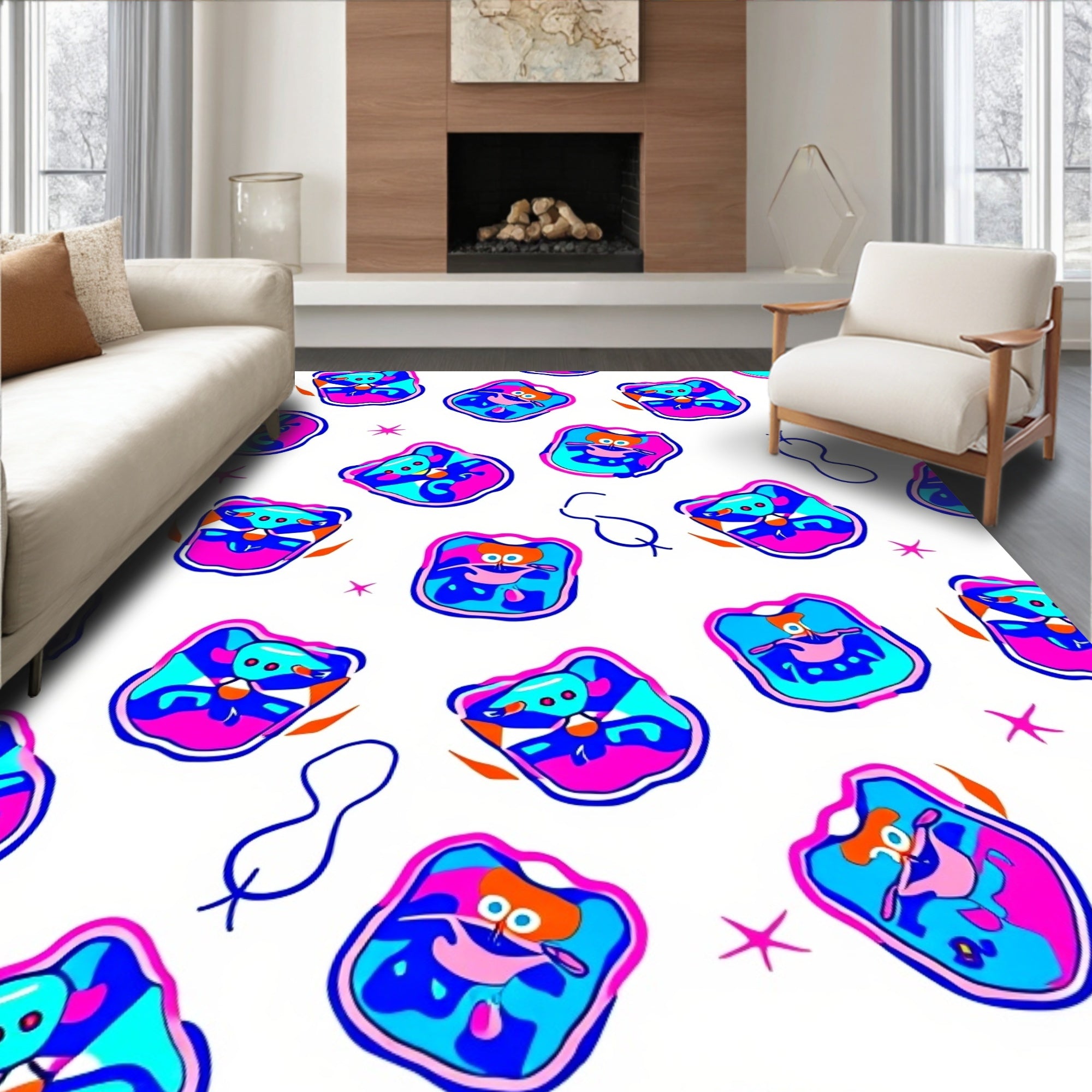 Ultra Soft Area Rug, Non Slip, Stain Resistant, Washable Area Rugs for Living Room, Bedroom, Quirky Holiday with Abstract Cat Motifs and Twinkling Lights(Pink) Overview: