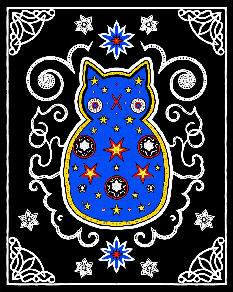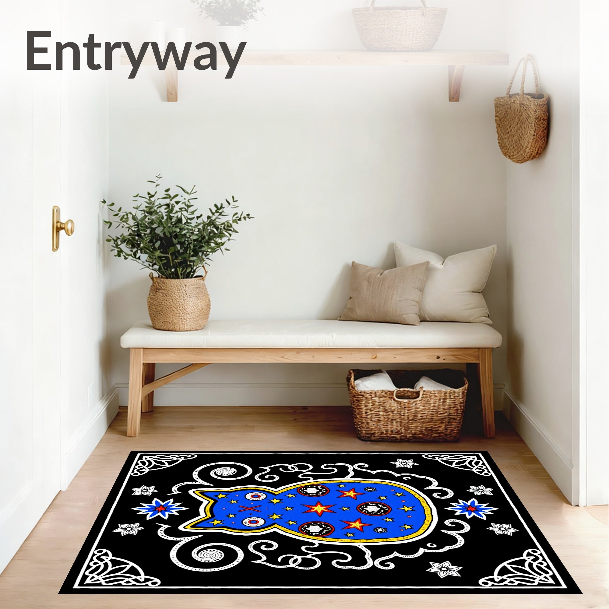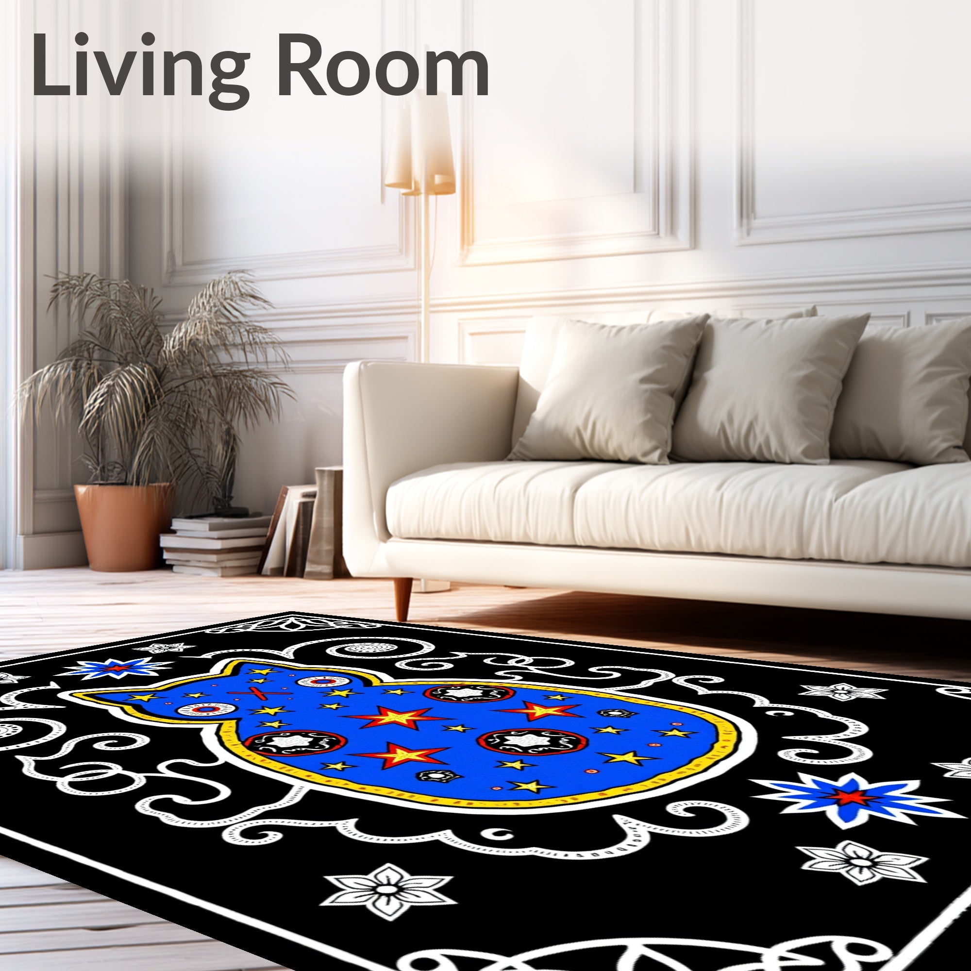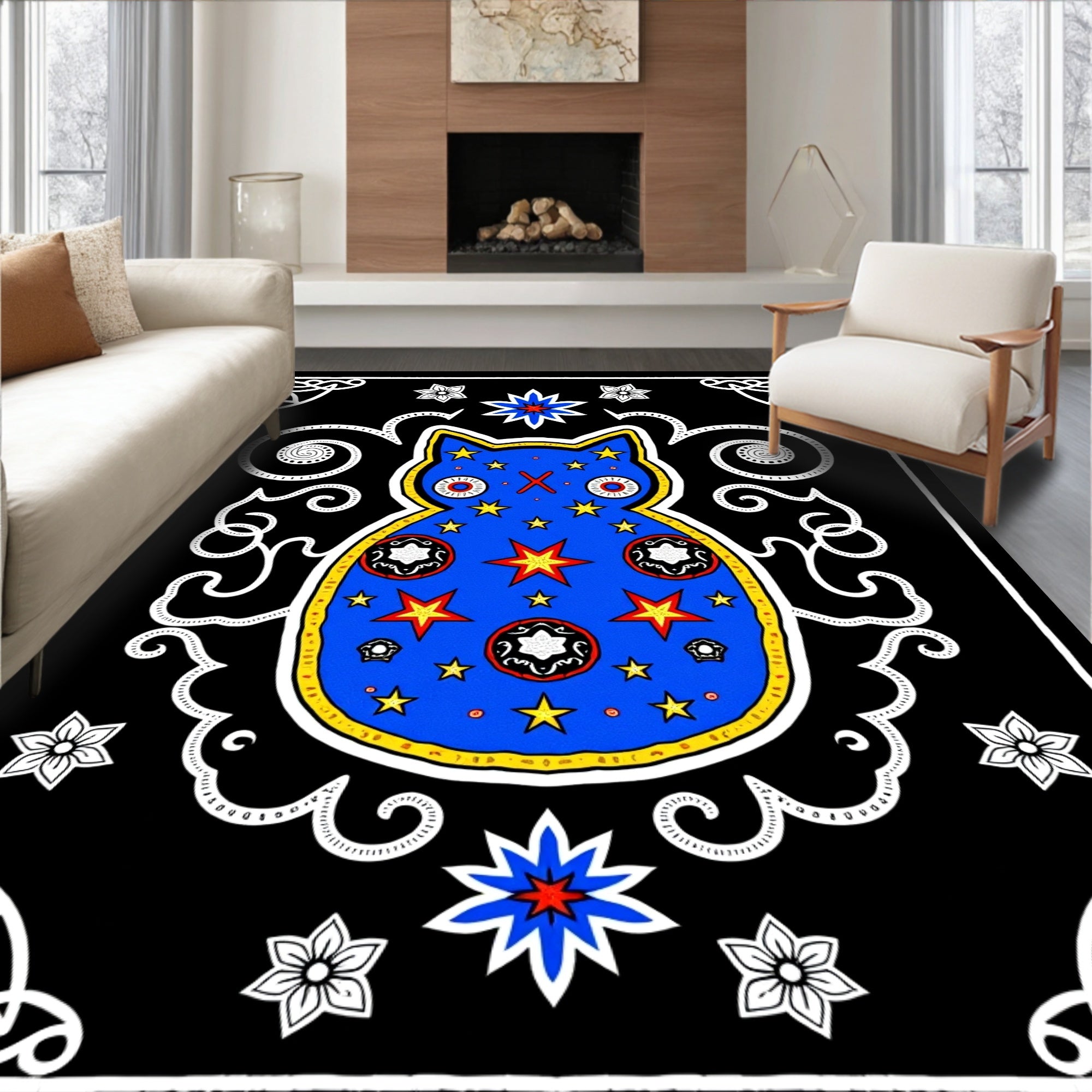 Ultra Soft Area Rug, Non Slip, Stain Resistant, Washable Area Rugs for Living Room, Bedroom, Quirky Twisted Cat Shape Illuminated Holiday Ornament(Blue) Overview: