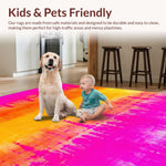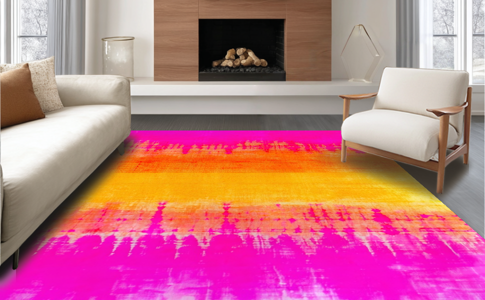 Ultra Soft Area Rug, Non Slip, Stain Resistant, Washable Area Rugs for Living Room, Bedroom, Radiant Color Burst Artful Display(Pink) Overview: