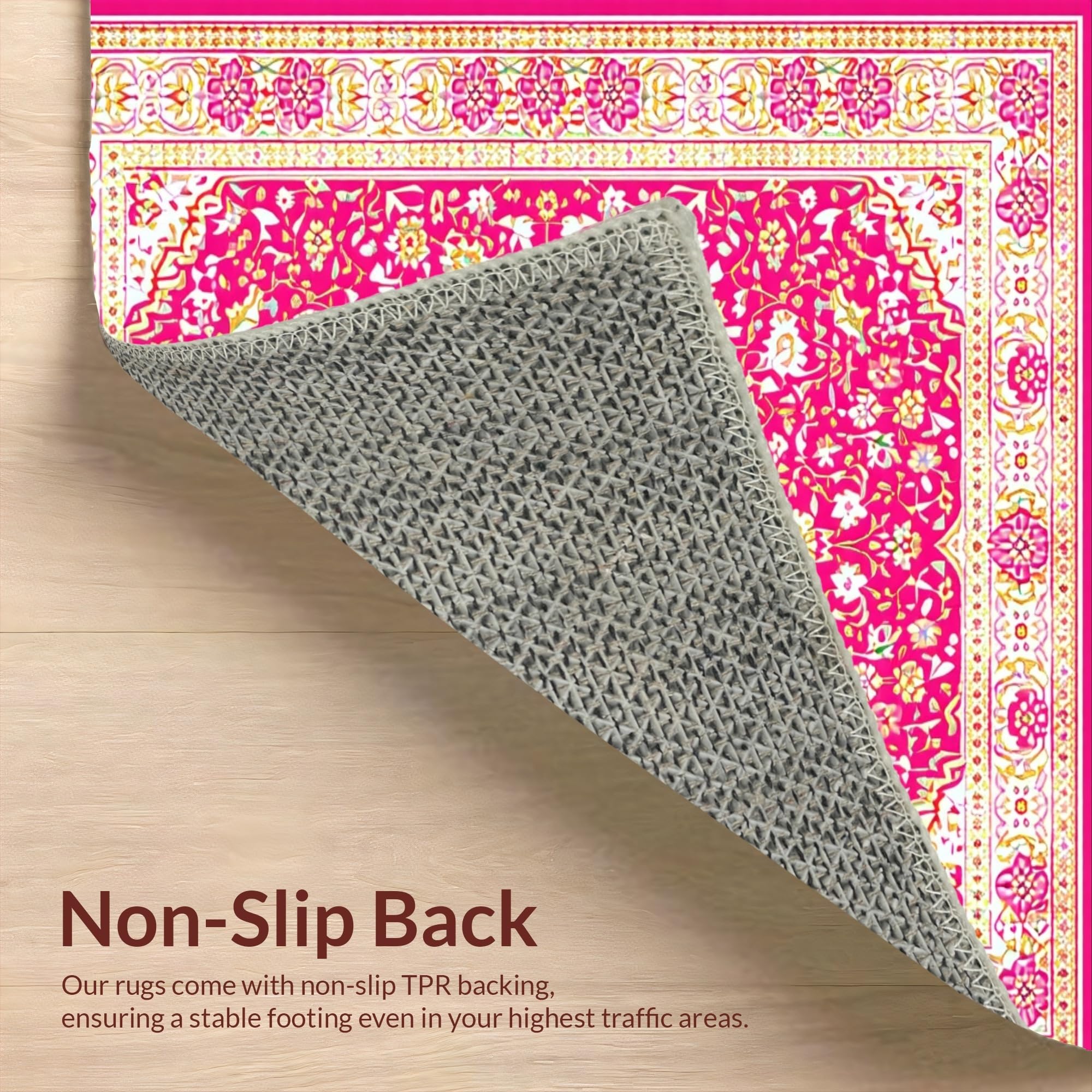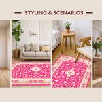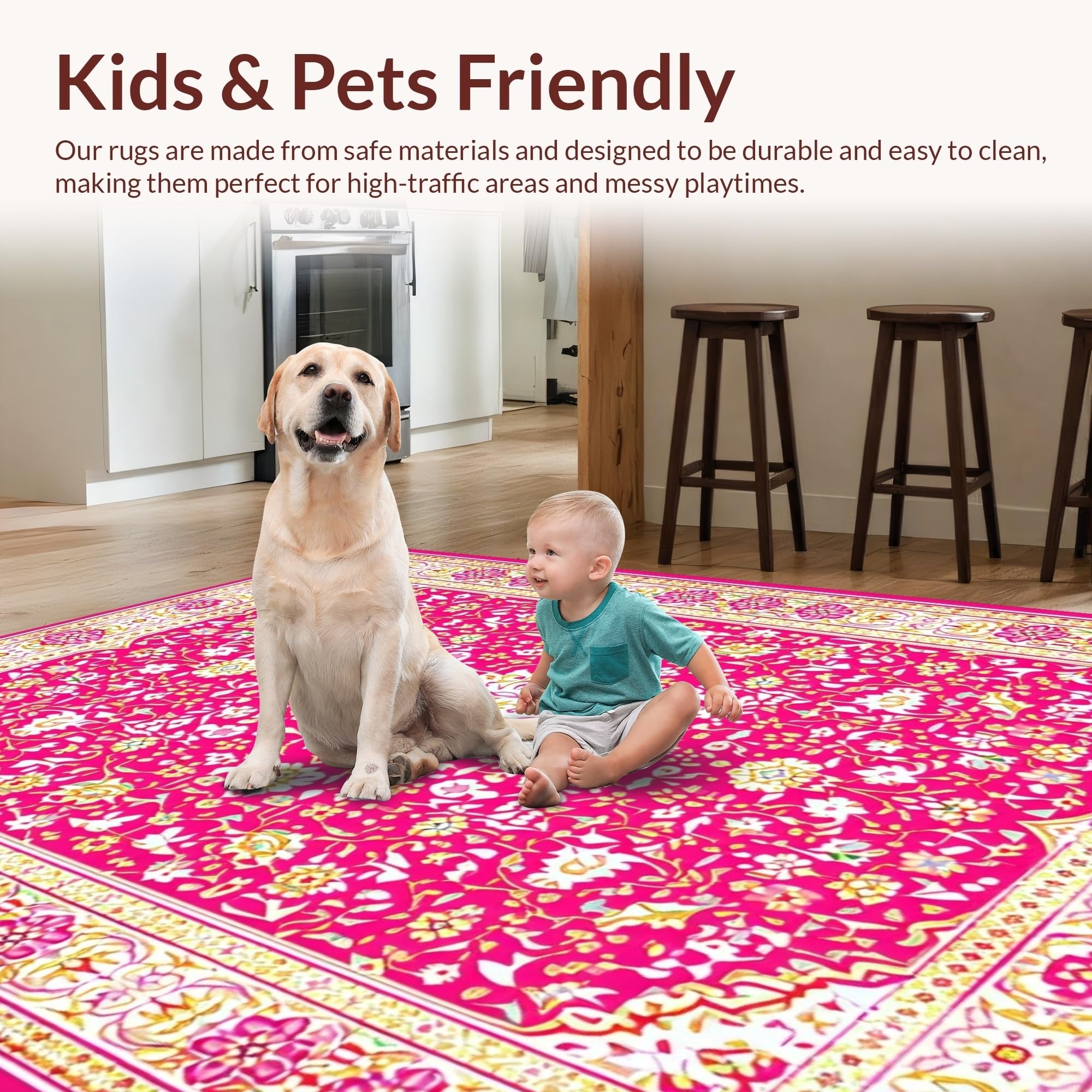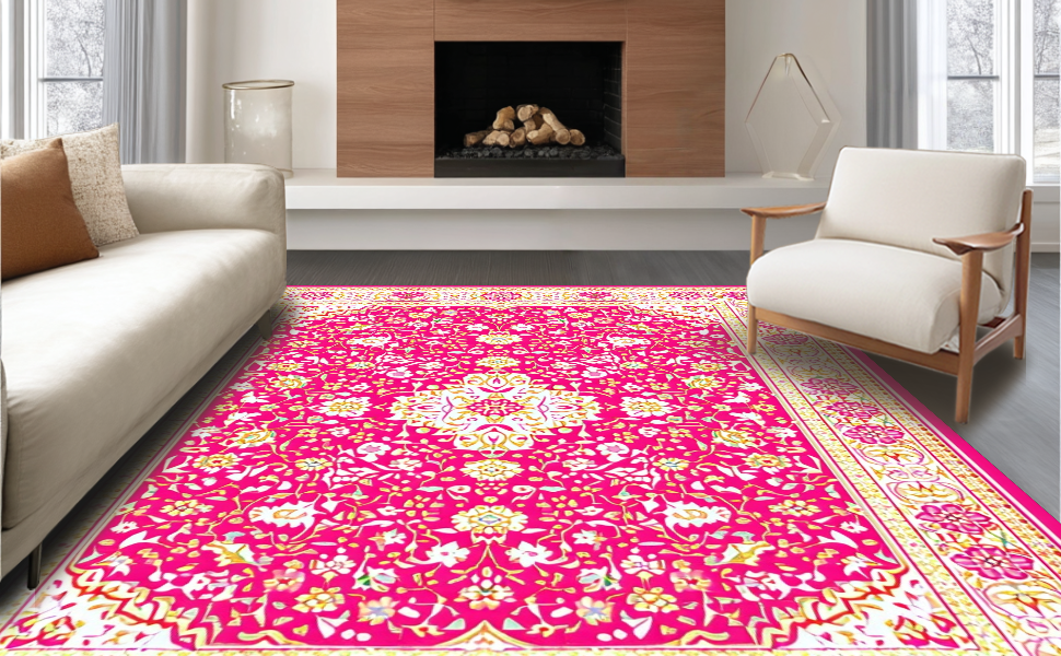 Ultra Soft Area Rug, Non Slip, Stain Resistant, Washable Area Rugs for Living Room, Bedroom, Radiant Colorful Ogee Pattern Charm(Pink) Overview: