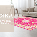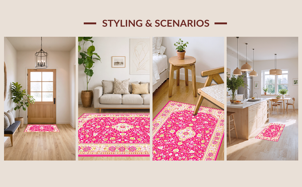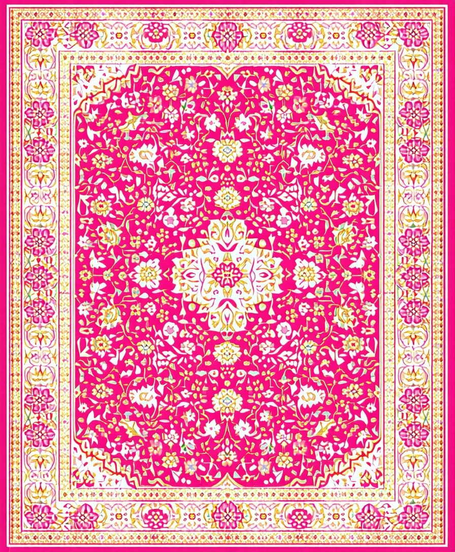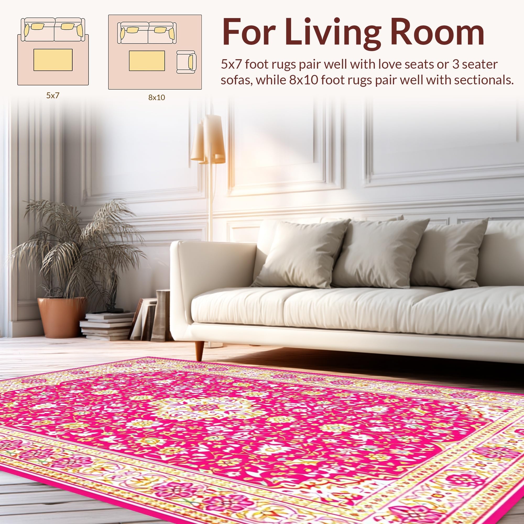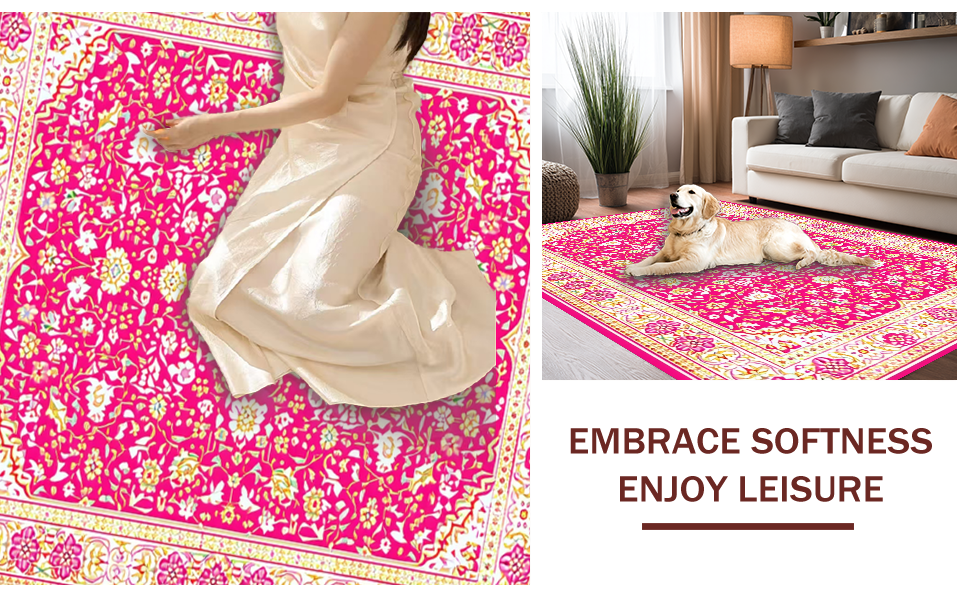 Ultra Soft Area Rug, Non Slip, Stain Resistant, Washable Area Rugs for Living Room, Bedroom, Radiant Colorful Ogee Pattern Charm(Pink) Overview: