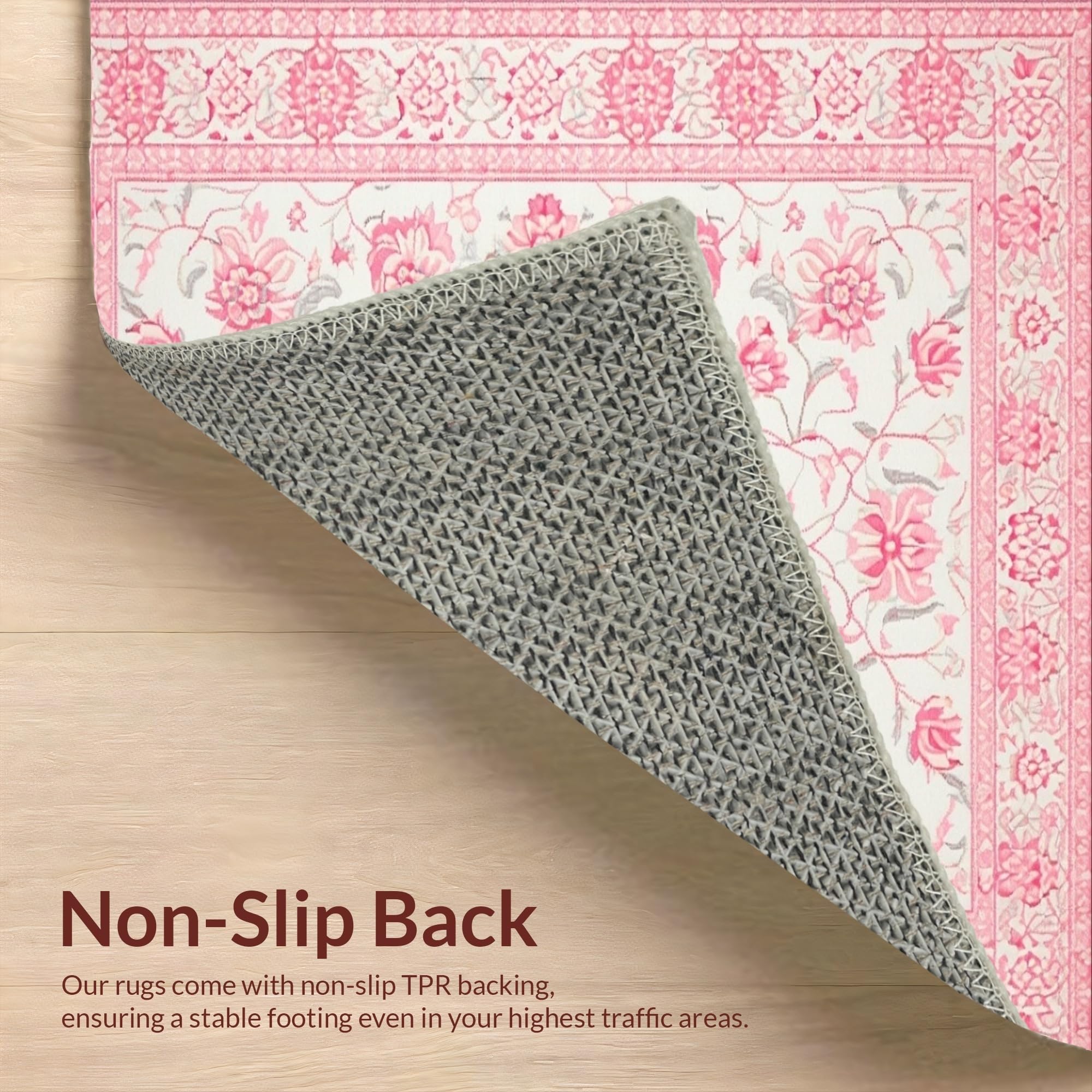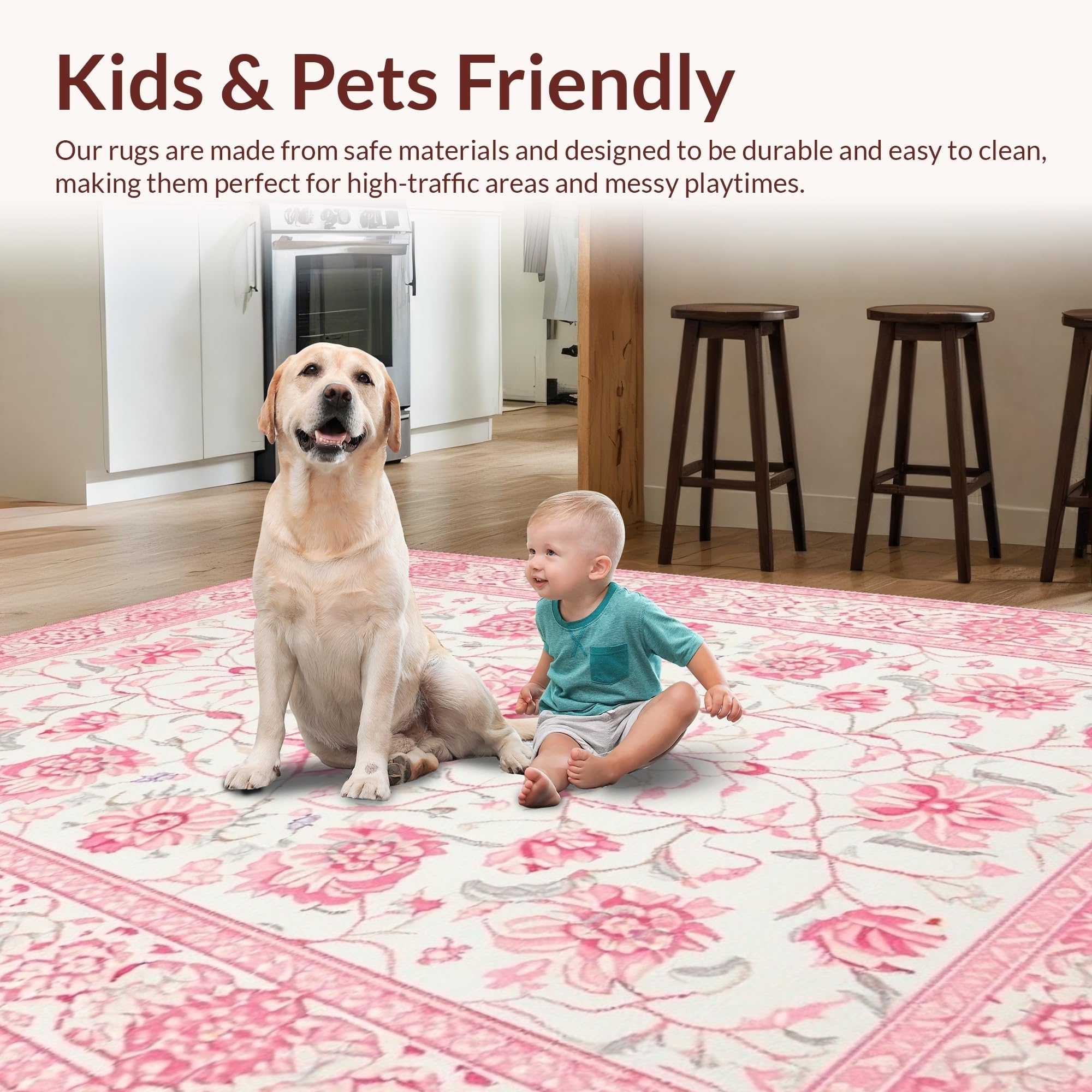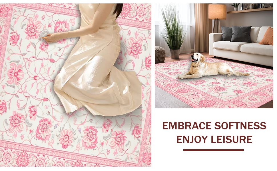 Ultra Soft Area Rug, Non Slip, Stain Resistant, Washable Area Rugs for Living Room, Bedroom, Radiant Cozy Blossom Arrangement(White) Overview: