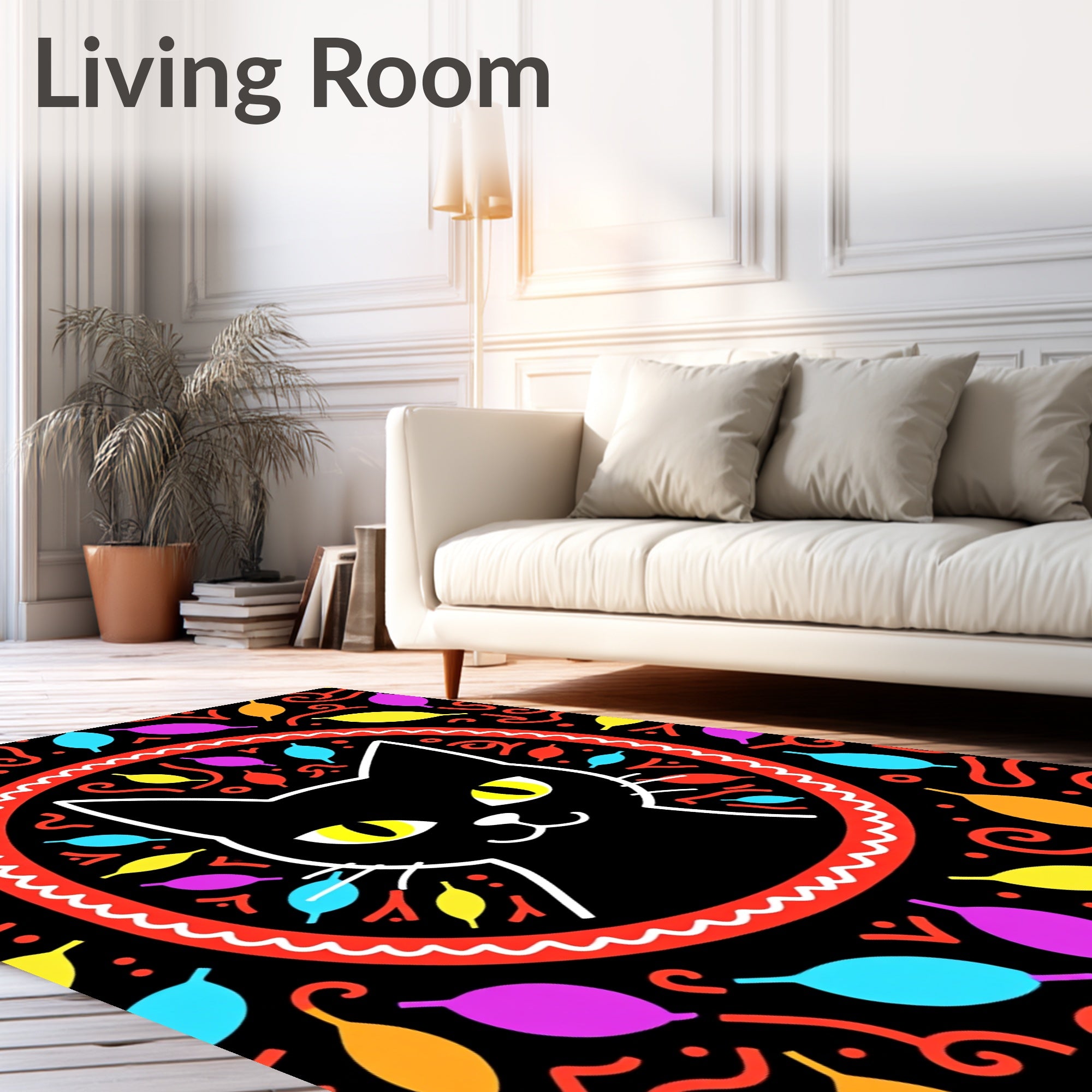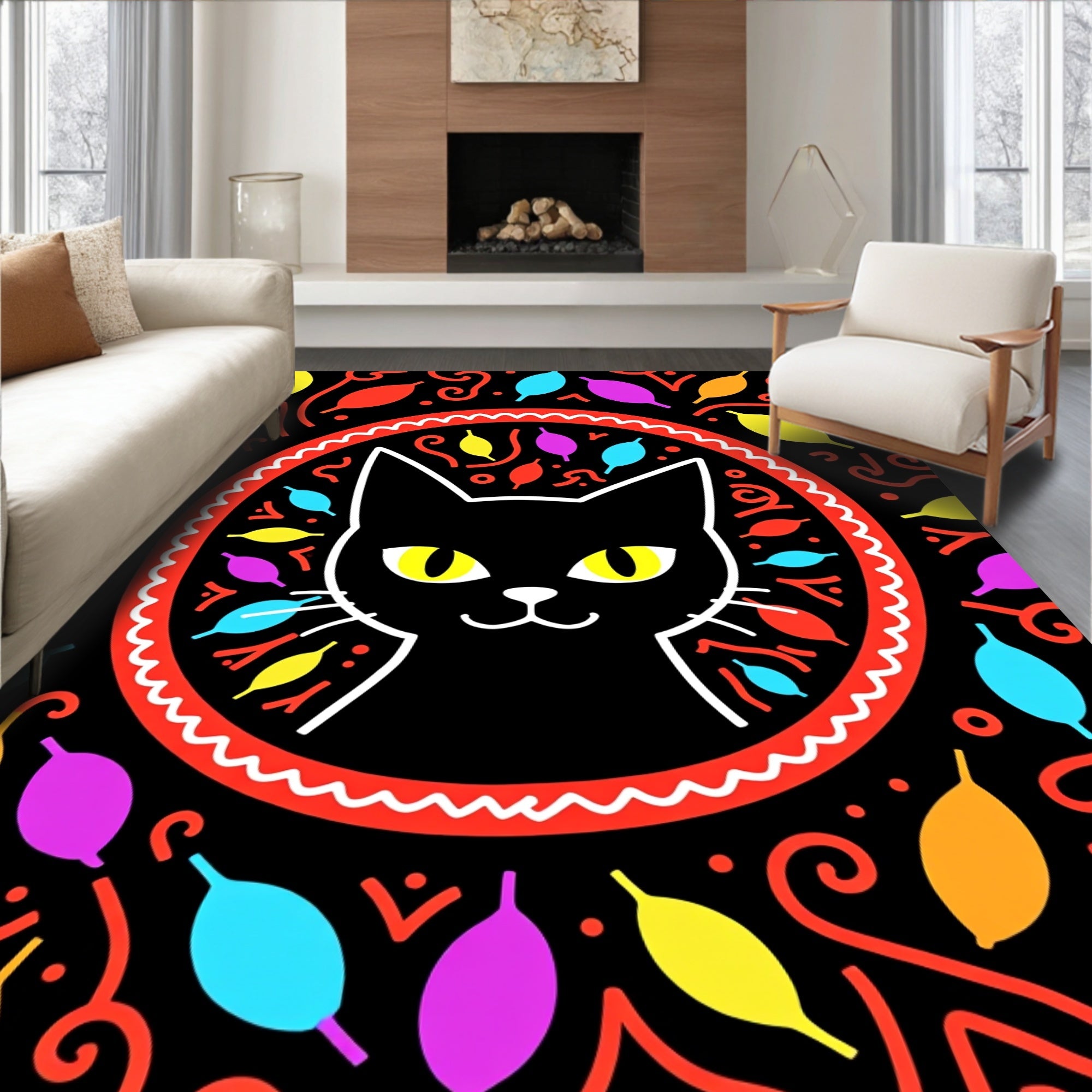 Ultra Soft Area Rug, Non Slip, Stain Resistant, Washable Area Rugs for Living Room, Bedroom, Radiant Faux Feline Hilarious Celebration Unique Statement(Black) Overview: