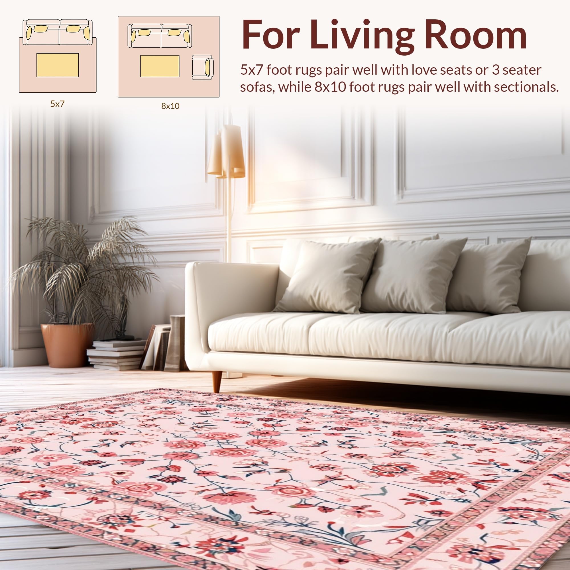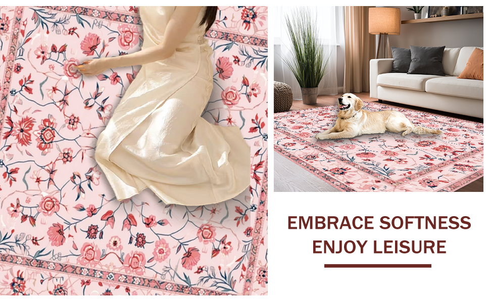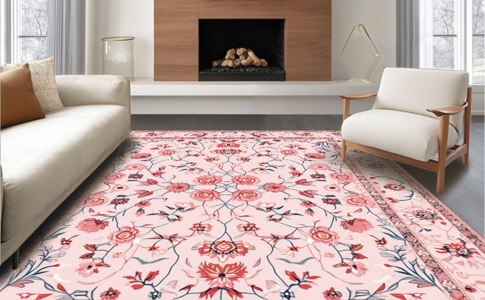 Ultra Soft Area Rug, Non Slip, Stain Resistant, Washable Area Rugs for Living Room, Bedroom, Radiant Feminine Aesthetic Display(Pink) Overview:
