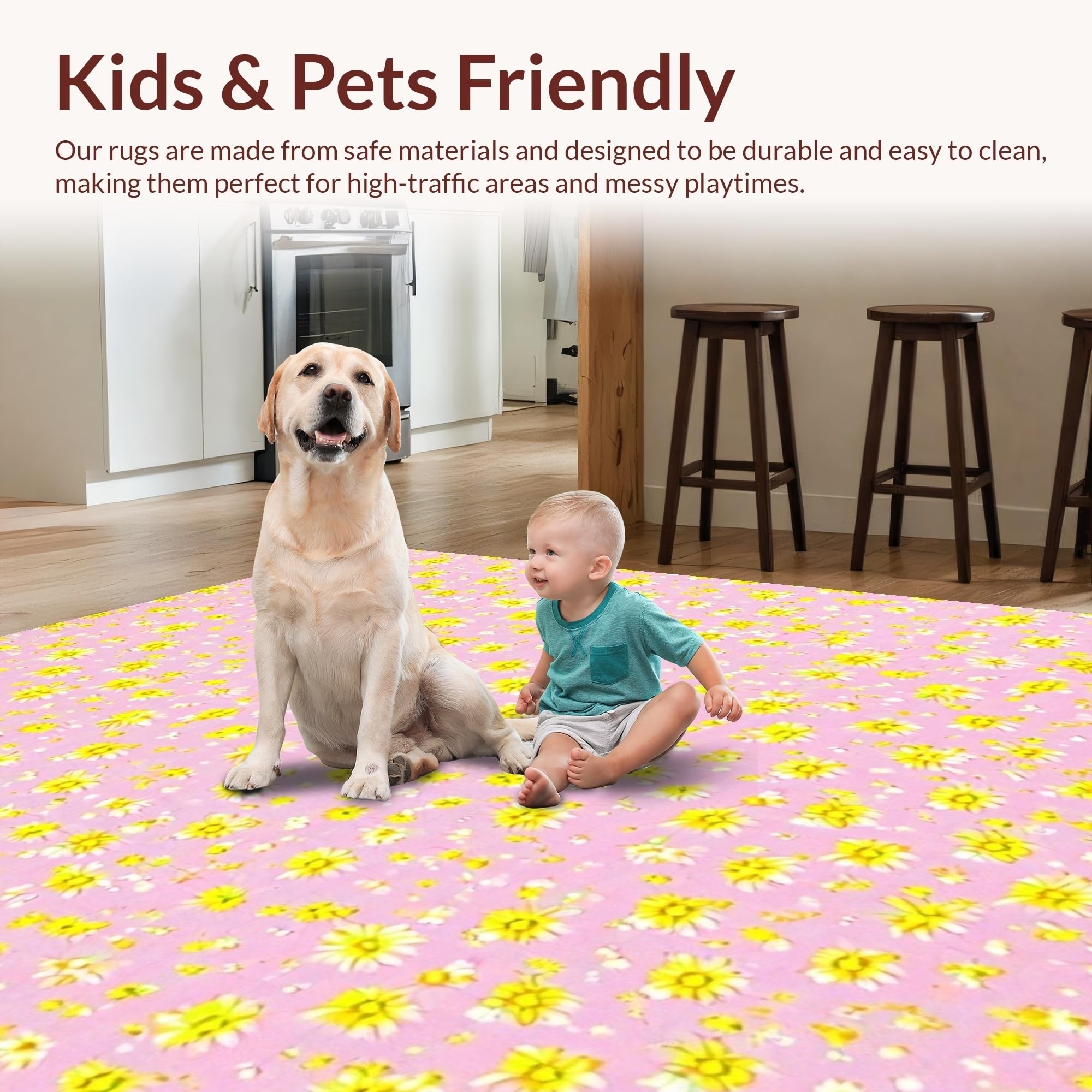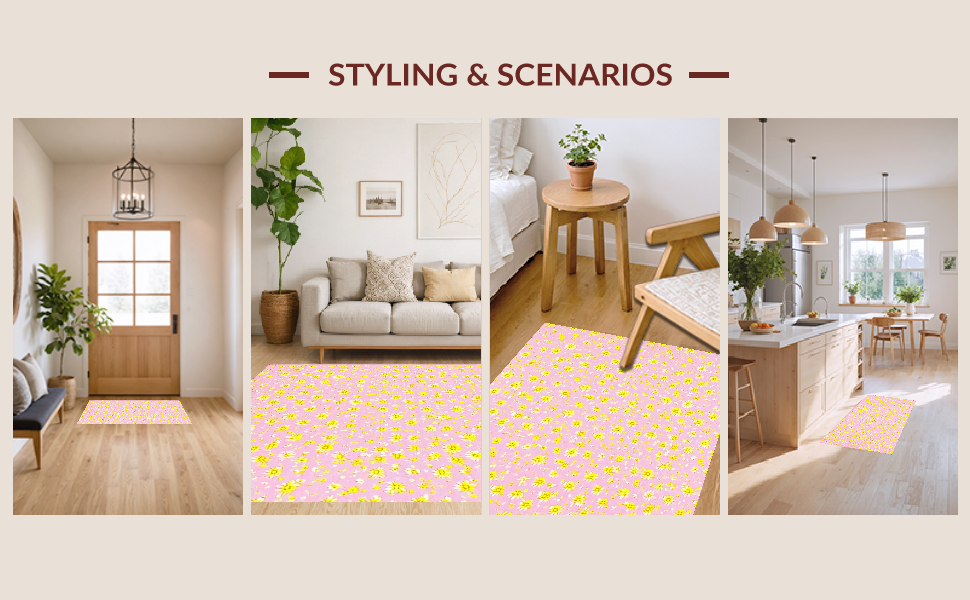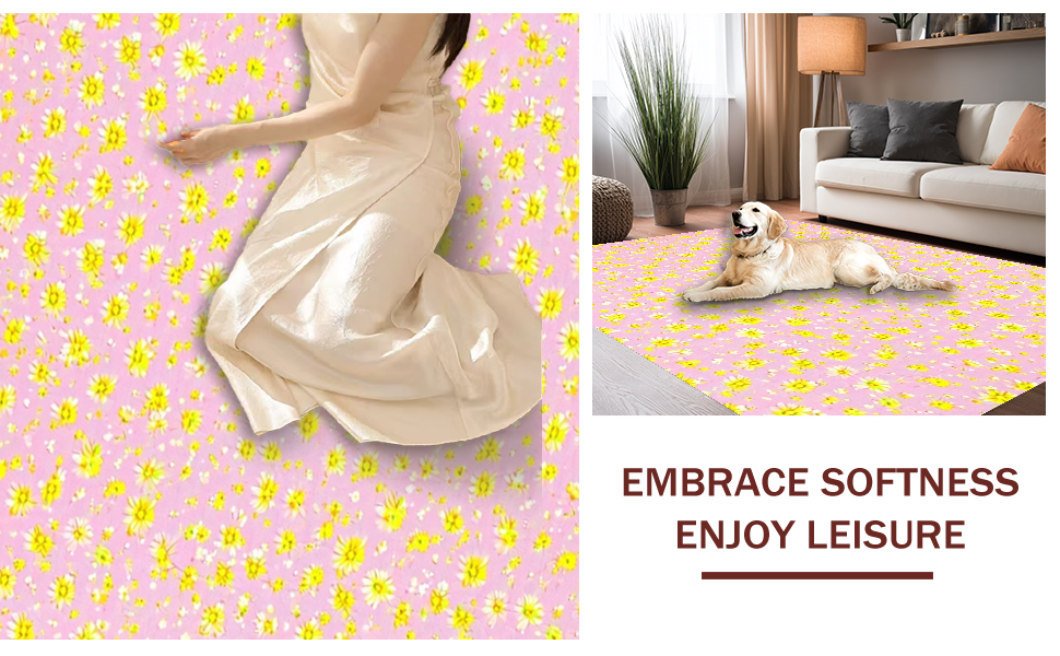Ultra Soft Area Rug, Non Slip, Stain Resistant, Washable Area Rugs for Living Room, Bedroom, Radiant Floral Cheerful Vibe(Pink) Overview: