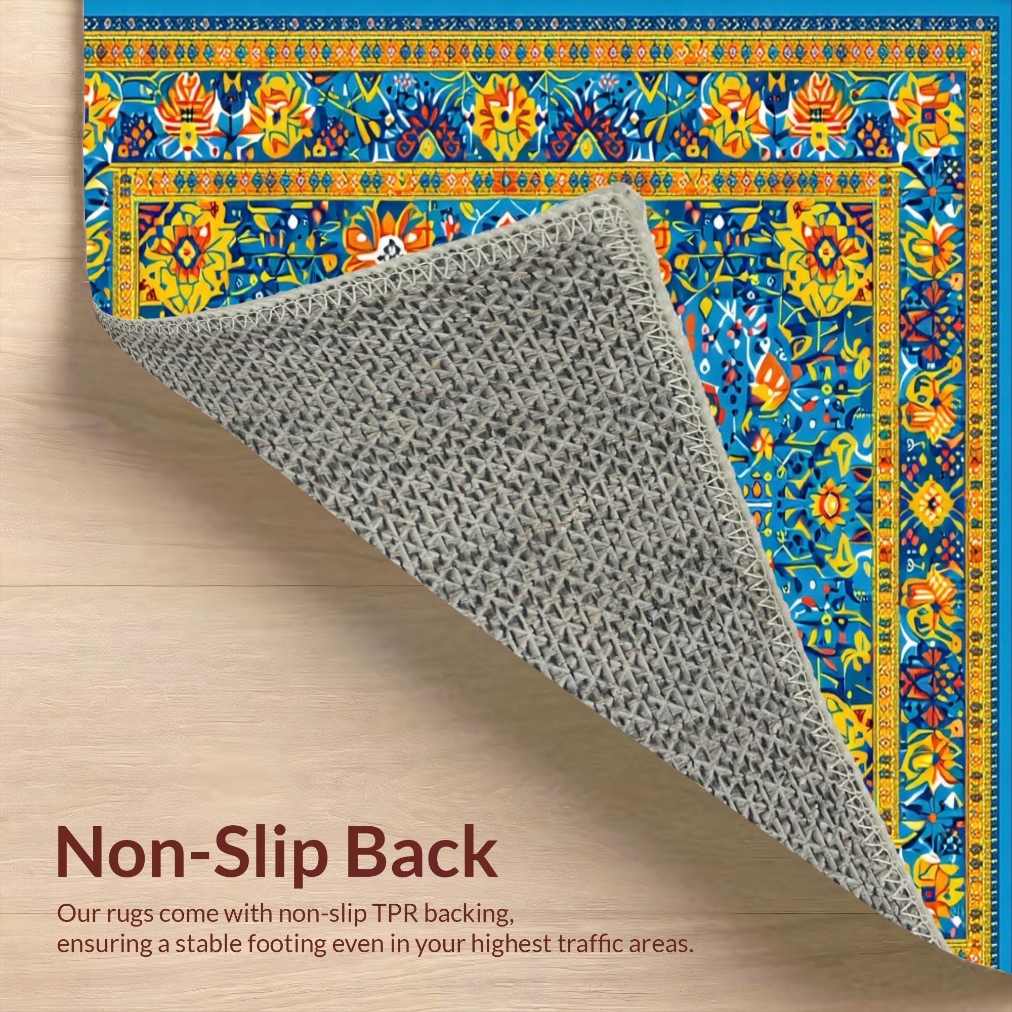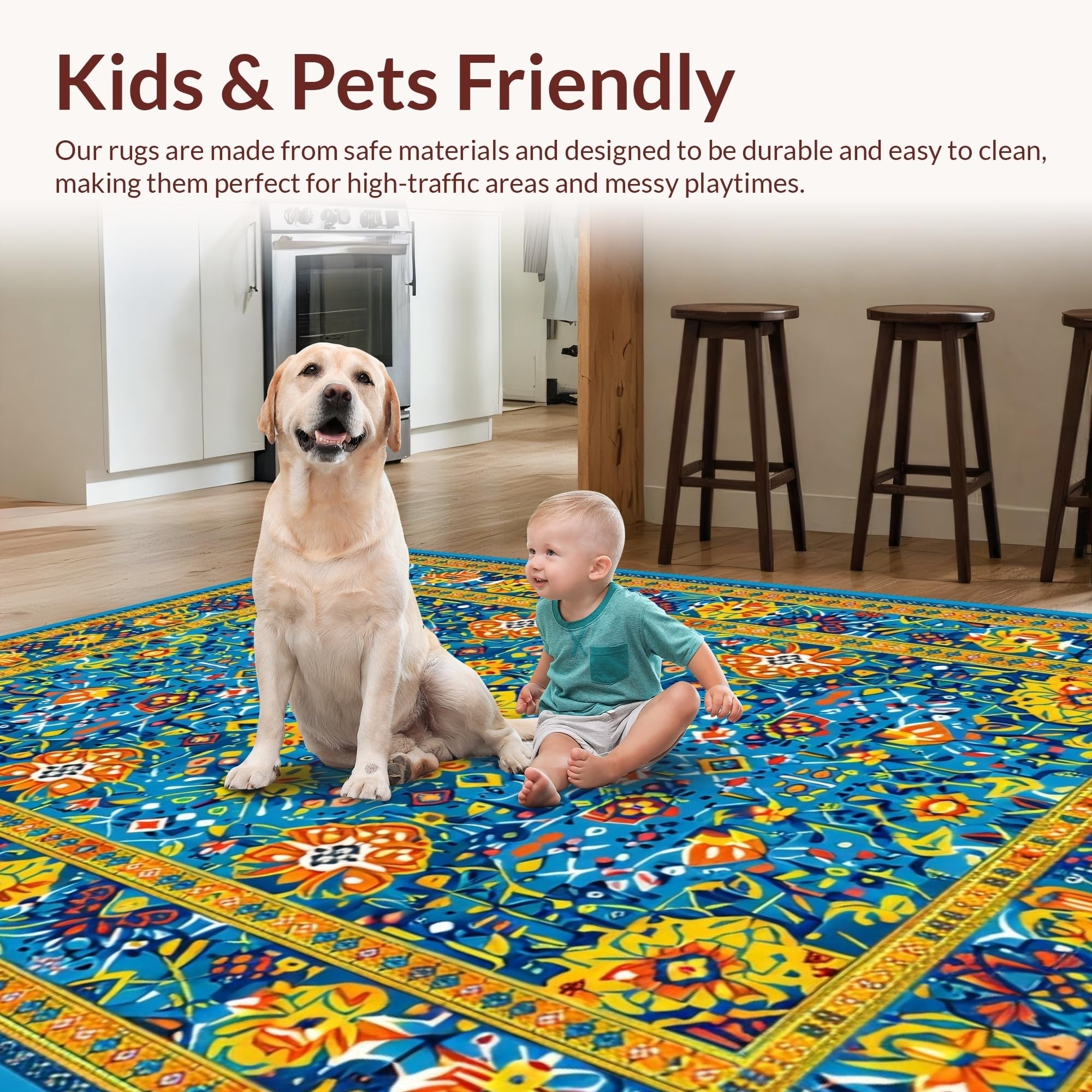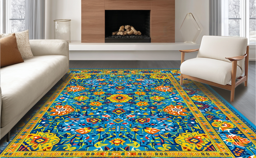 Ultra Soft Area Rug, Non Slip, Stain Resistant, Washable Area Rugs for Living Room, Bedroom, Radiant Modern Trellis Artistry(Blue) Overview: