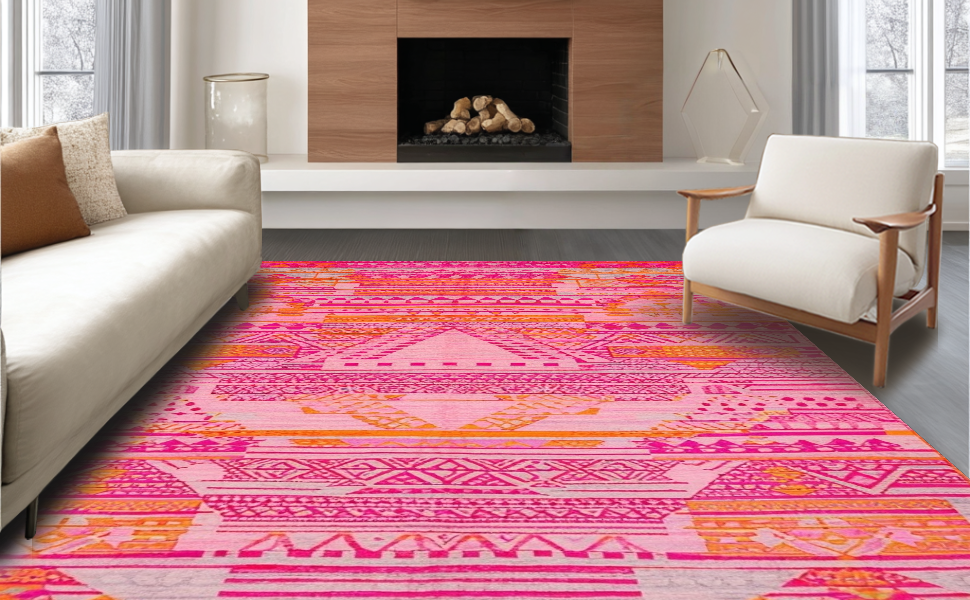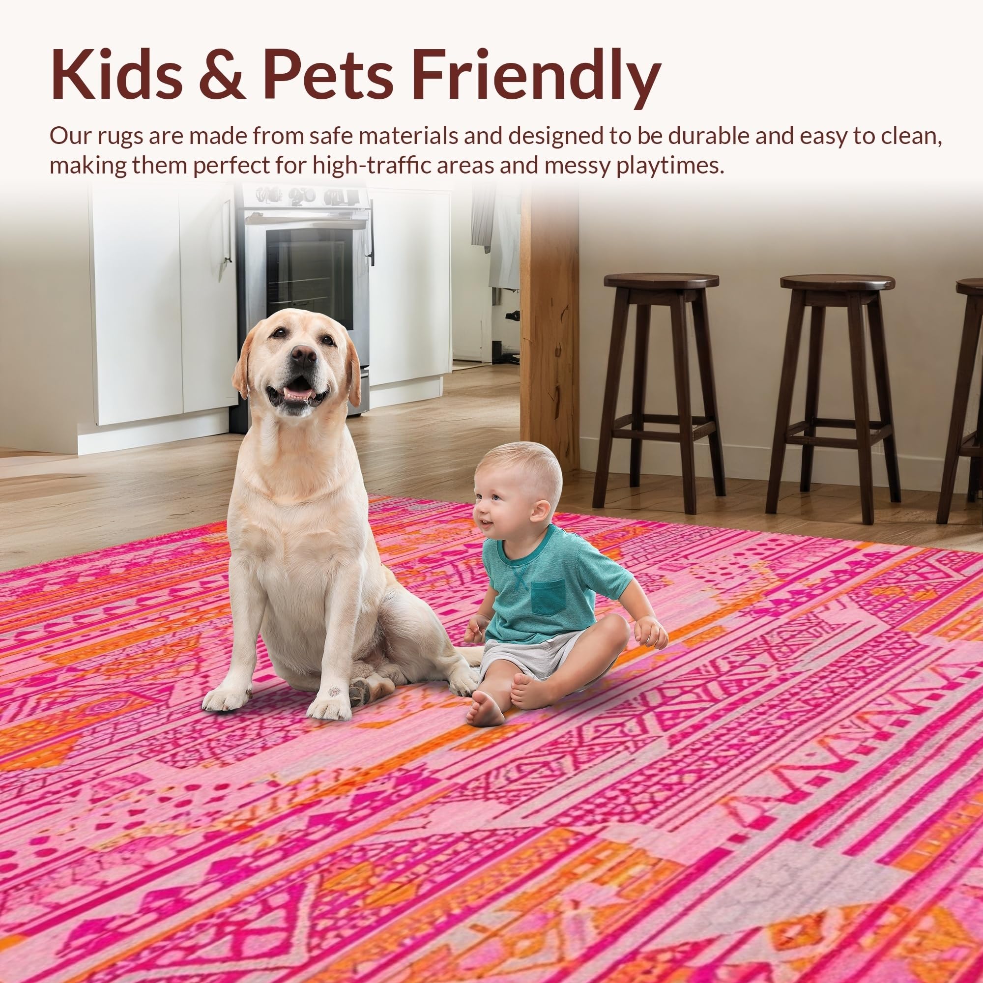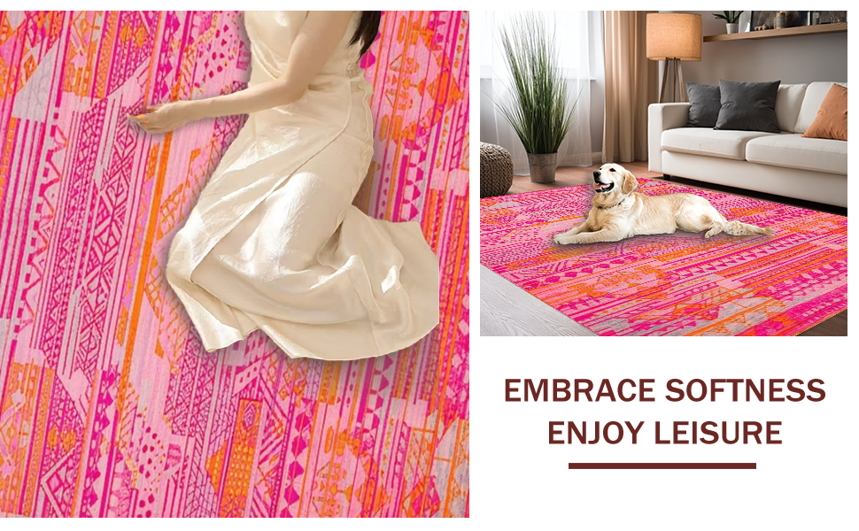 Ultra Soft Area Rug, Non Slip, Stain Resistant, Washable Area Rugs for Living Room, Bedroom, Radiant Modernist Layered Design(Pink) Overview: