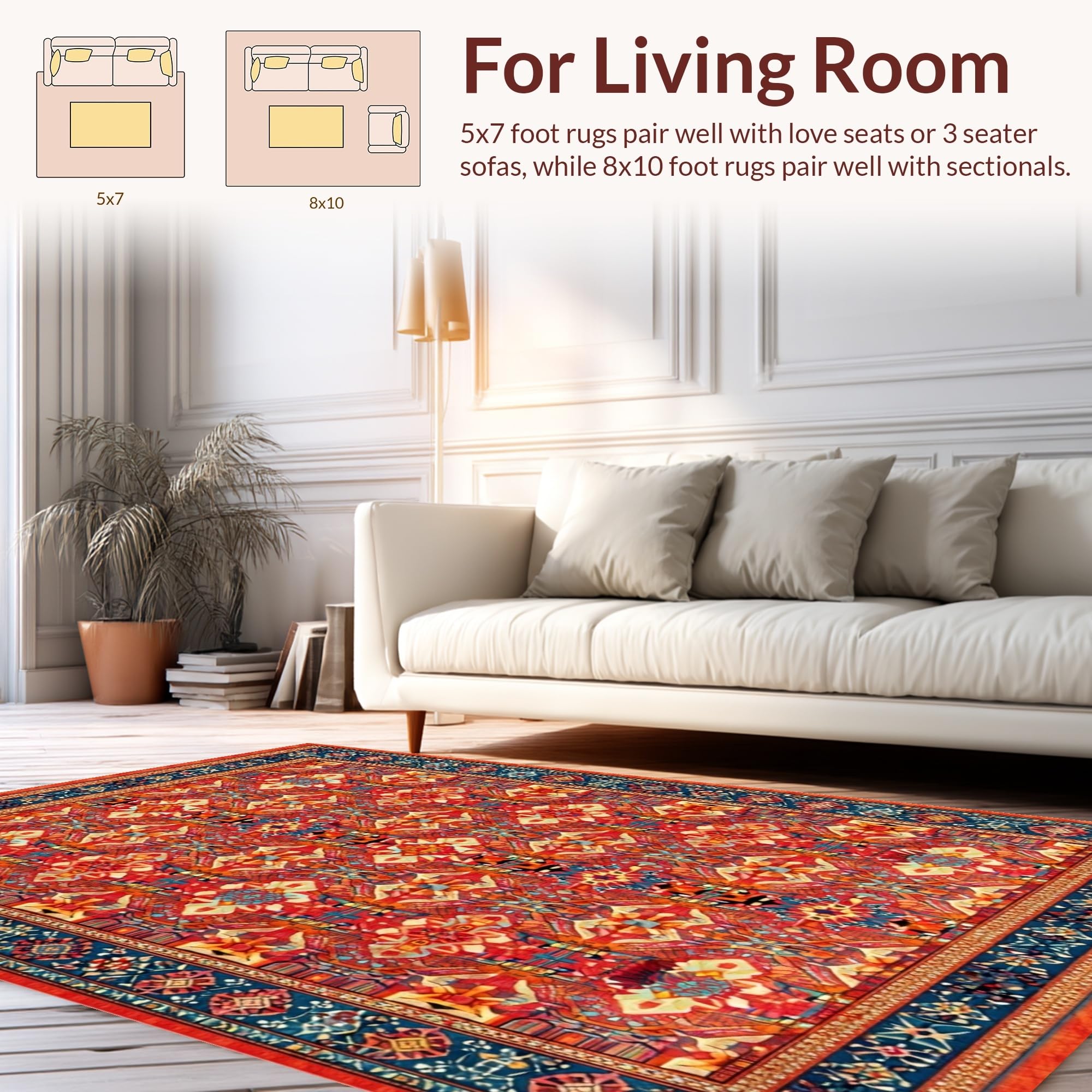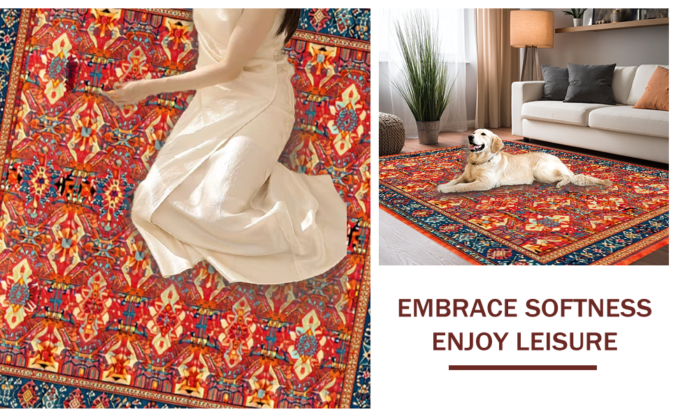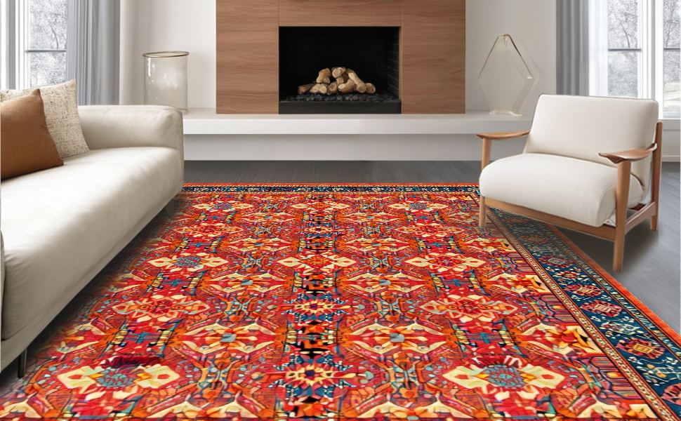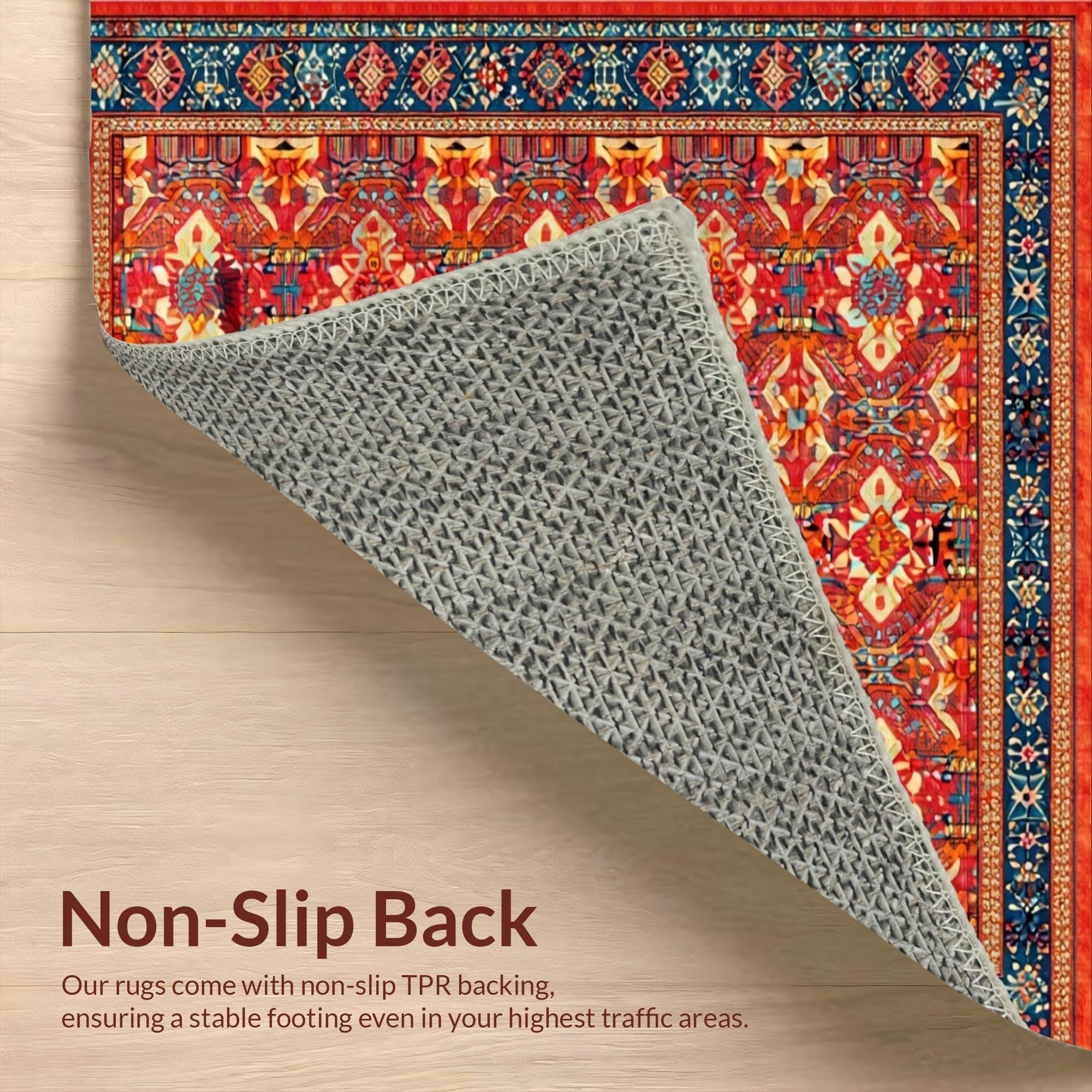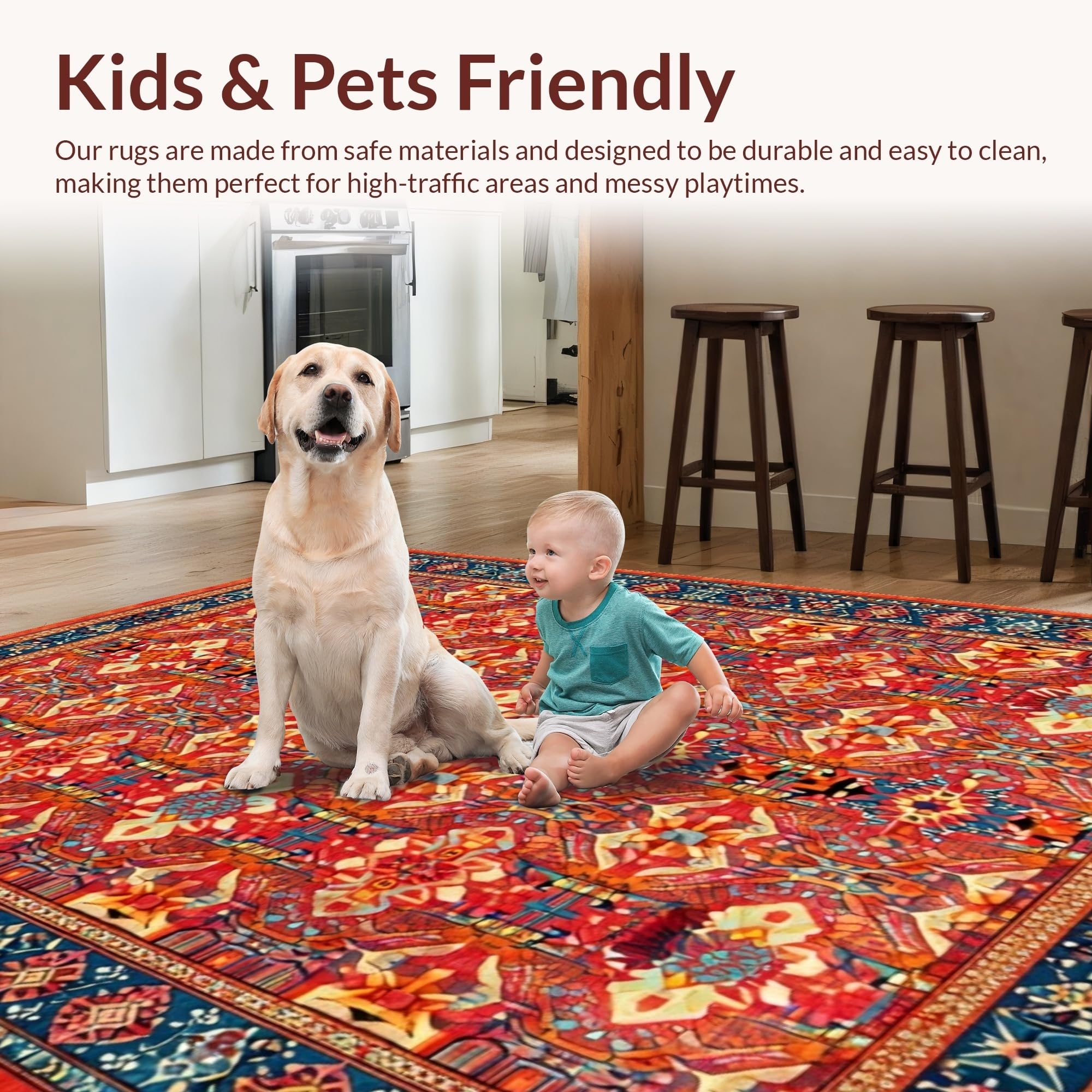 Ultra Soft Area Rug, Non Slip, Stain Resistant, Washable Area Rugs for Living Room, Bedroom, Radiant Multicolor Ogee Style(Red) Overview: