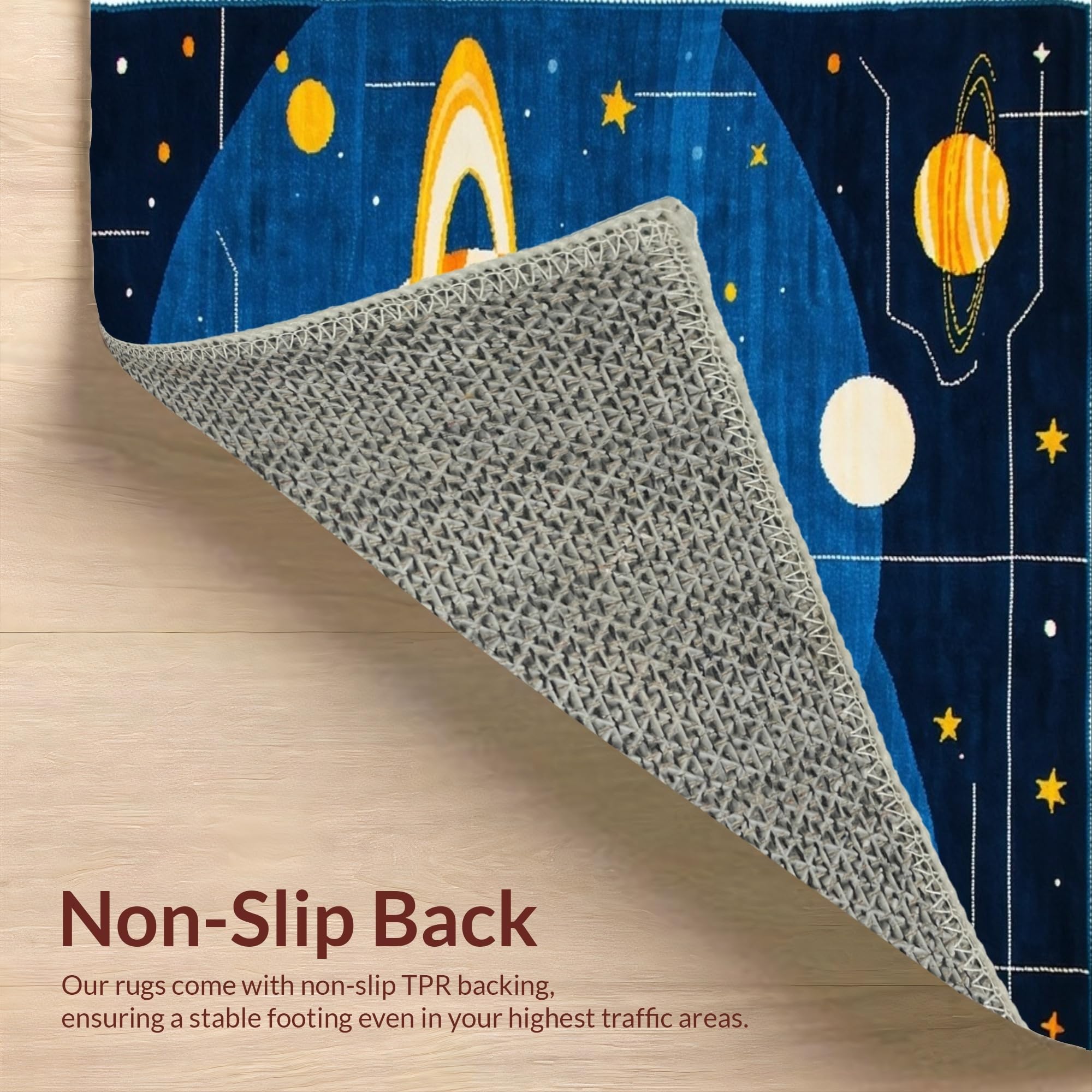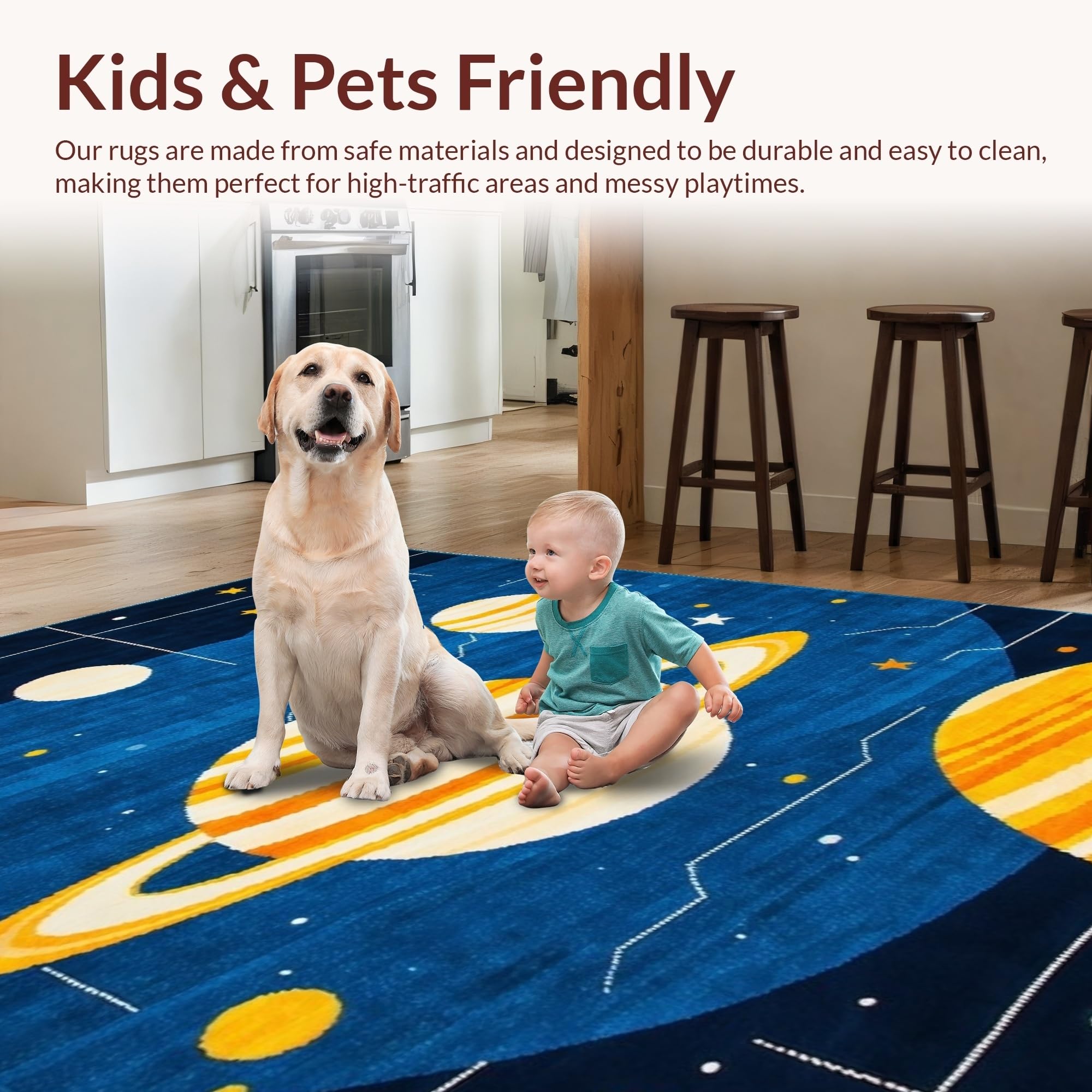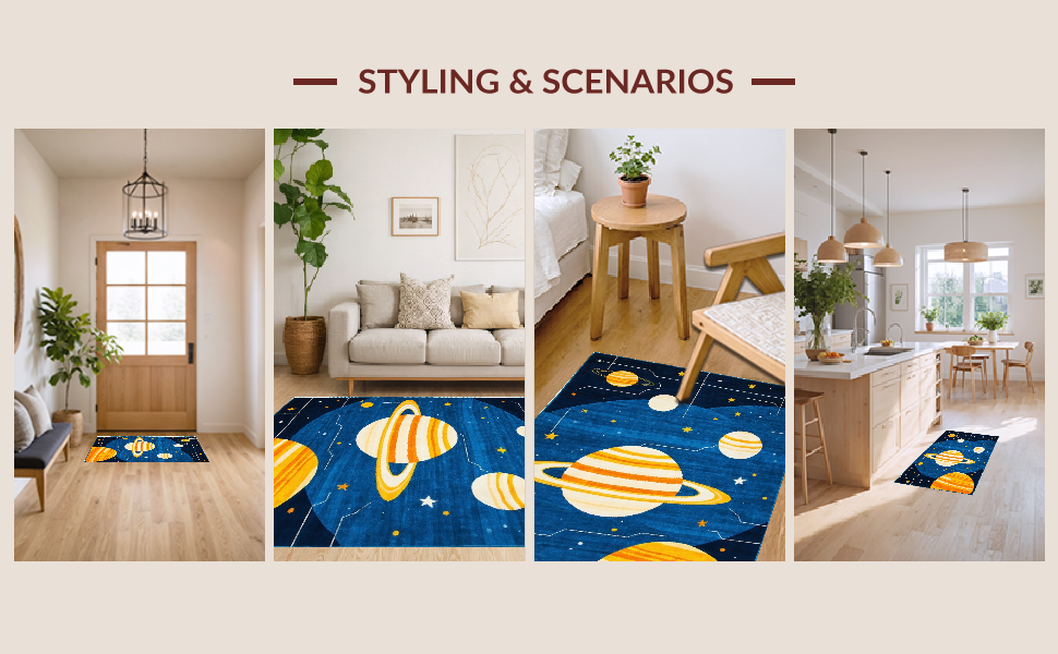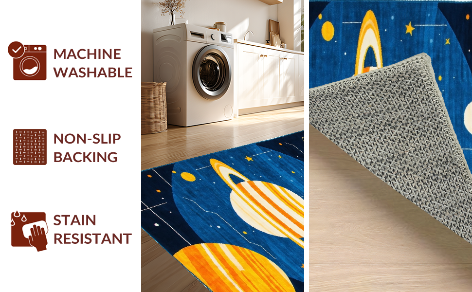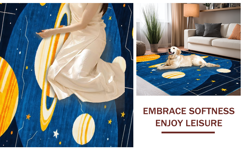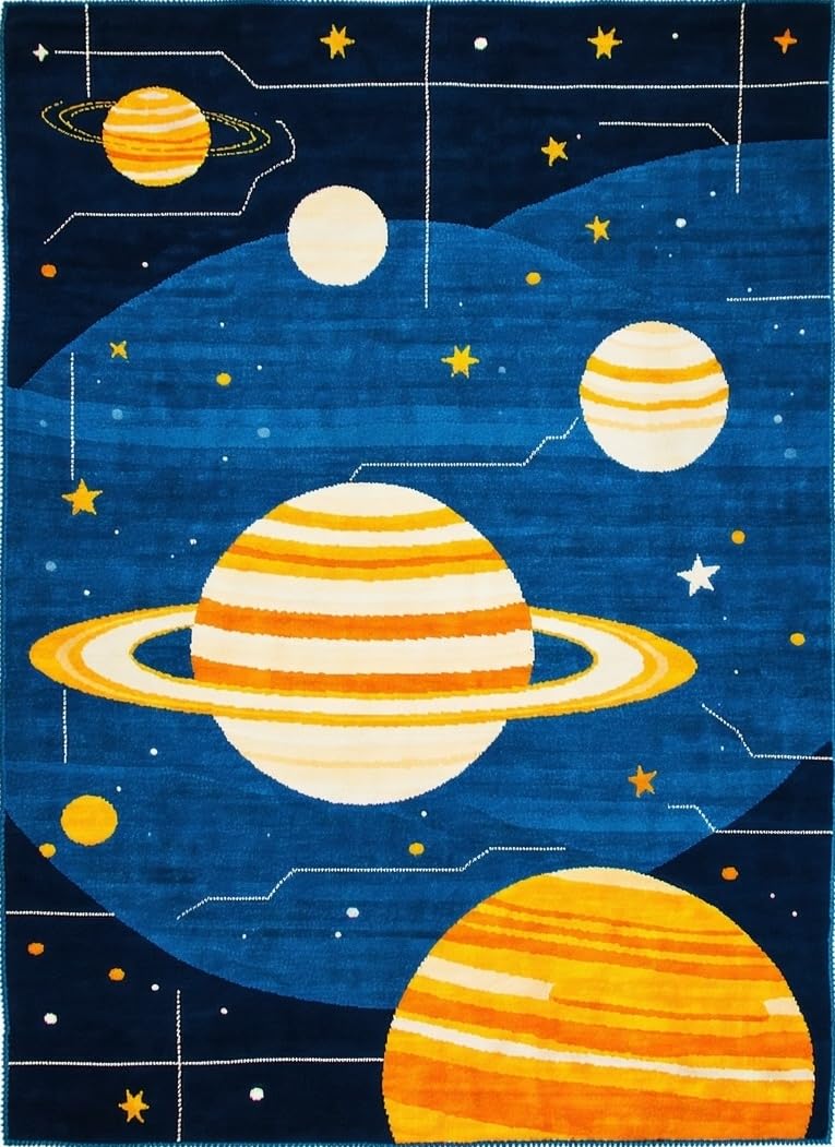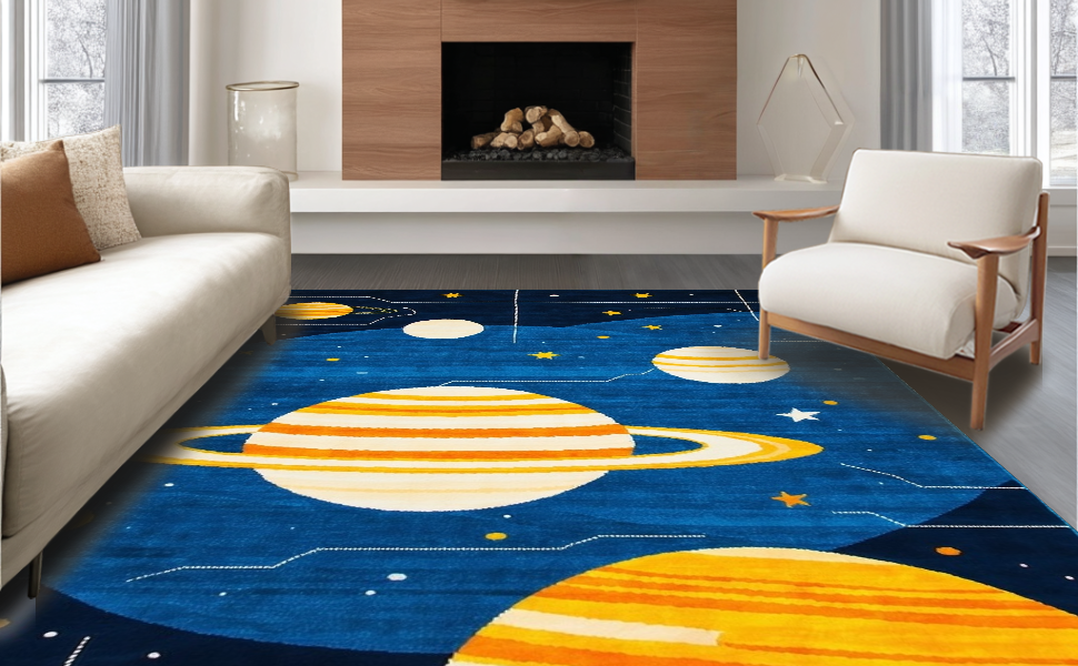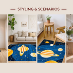 Ultra Soft Area Rug, Non Slip, Stain Resistant, Washable Area Rugs for Living Room, Bedroom, Radiant Space Odyssey Illustration(Blue) Overview: