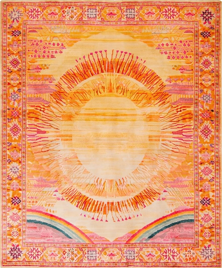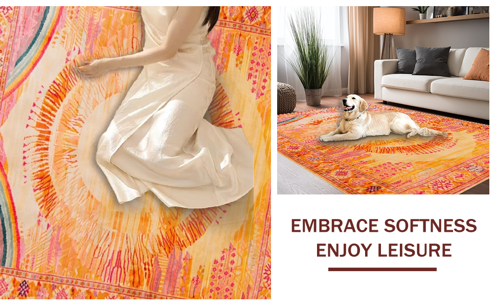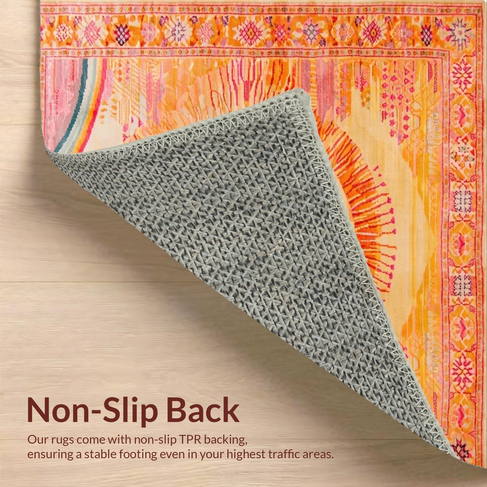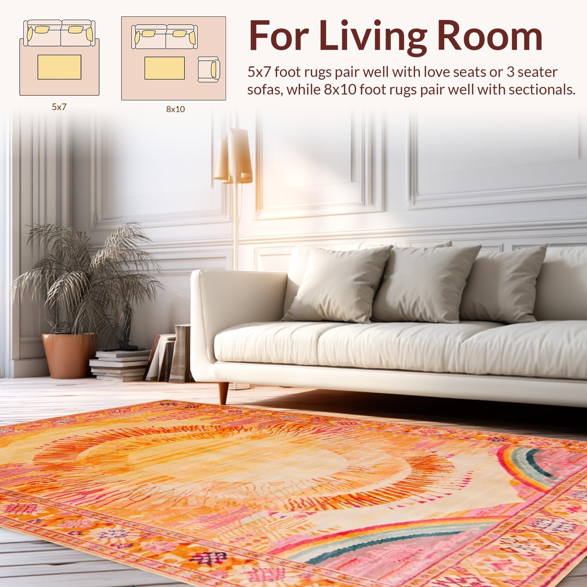 Ultra Soft Area Rug, Non Slip, Stain Resistant, Washable Area Rugs for Living Room, Bedroom, Radiant Sunburst Circular Aesthetic(Gold) Overview: