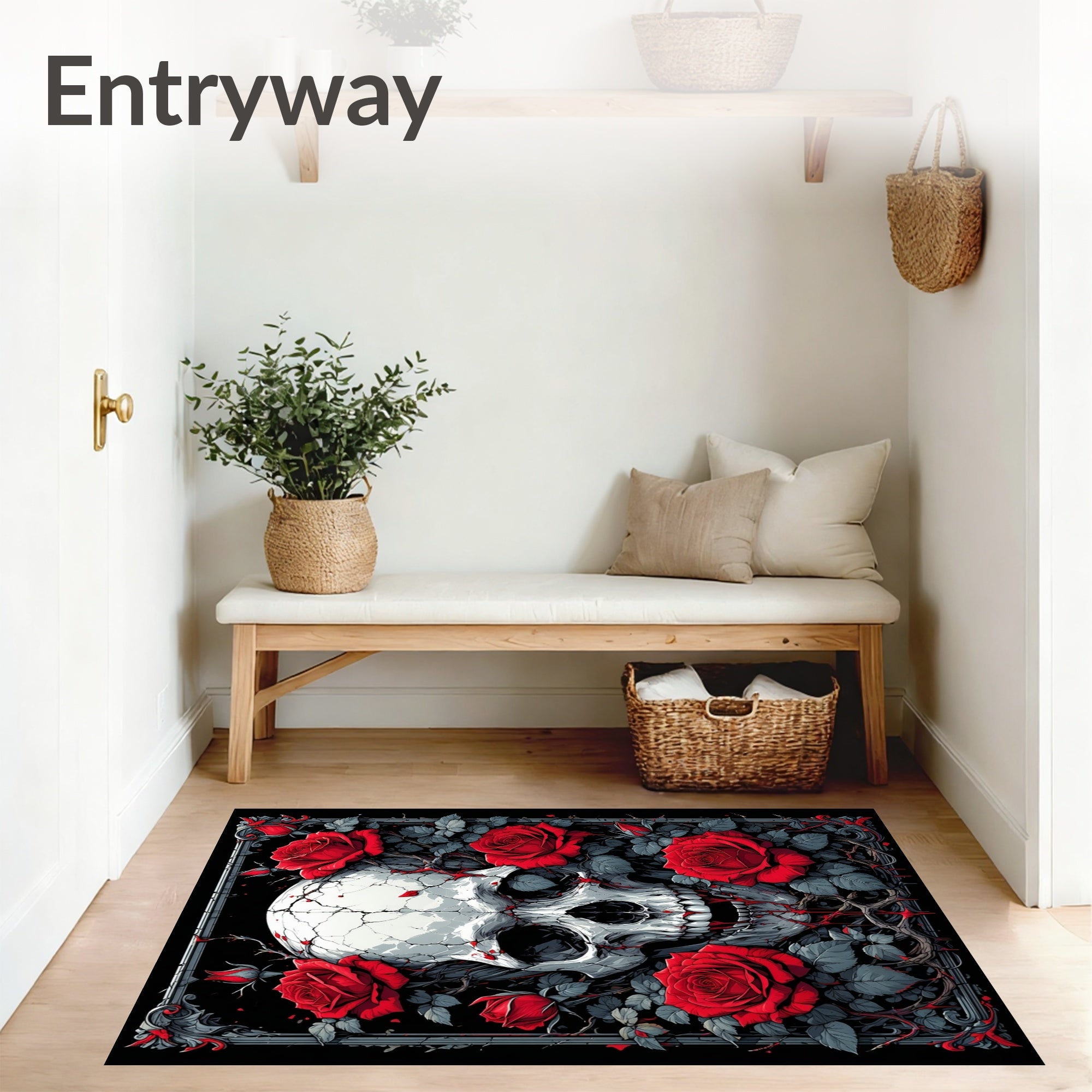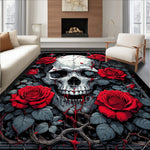 Flatwoven High Traffic Area Rug, Rebel Rose Skull Anti Slip Multipurpose Gothic Floral Design, Non Slip, Stain Resistant, Washable Area Rugs for Living Room, Bedroom (Red) Overview: