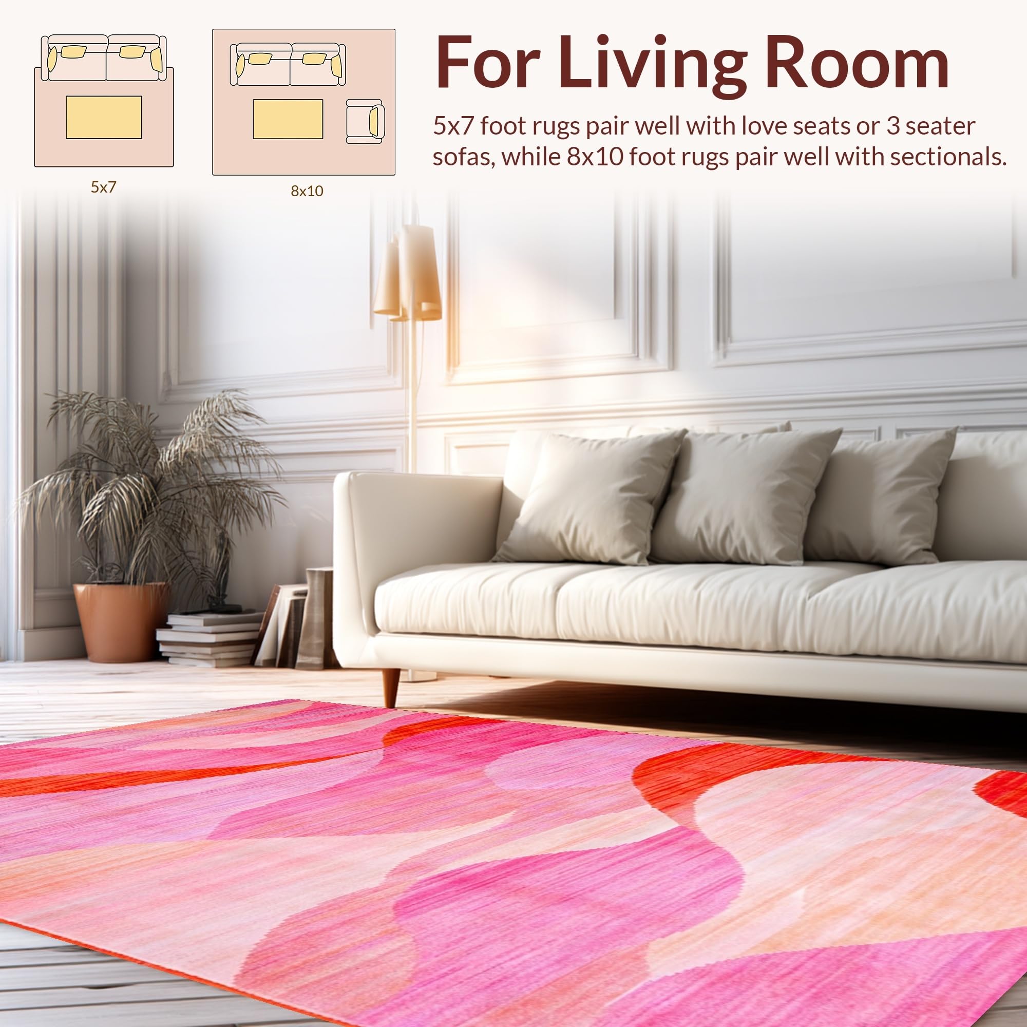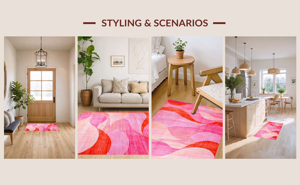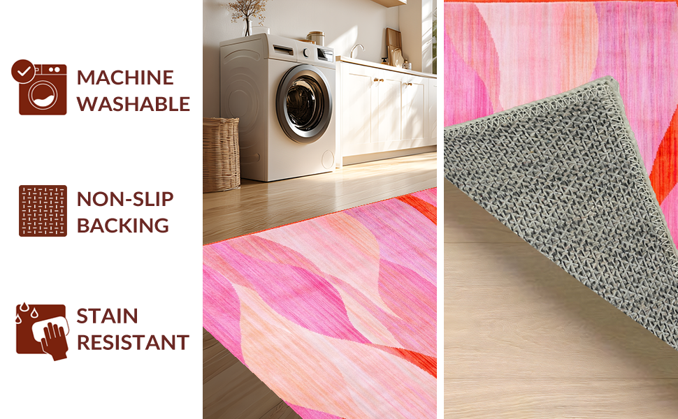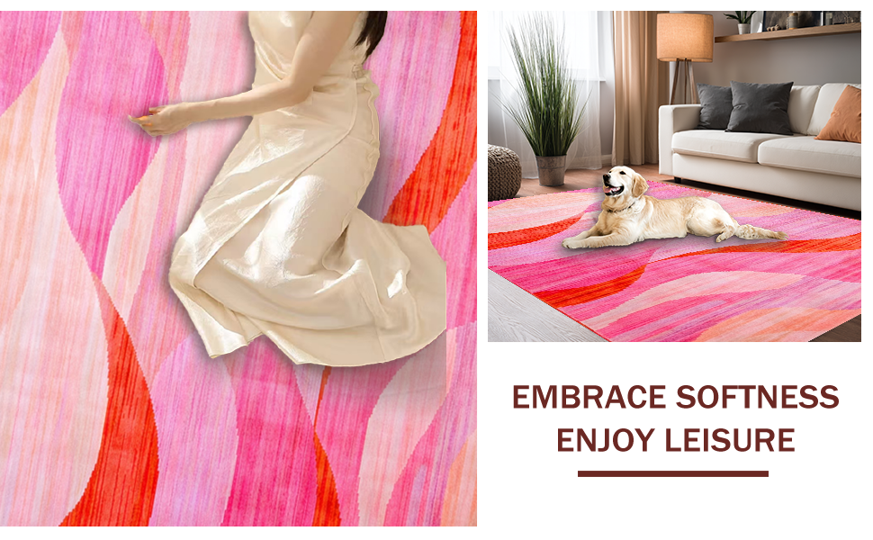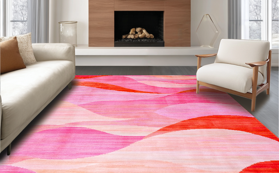 Ultra Soft Area Rug, Non Slip, Stain Resistant, Washable Area Rugs for Living Room, Bedroom, Refined Abstract Expressionist Design(Pink) Overview: