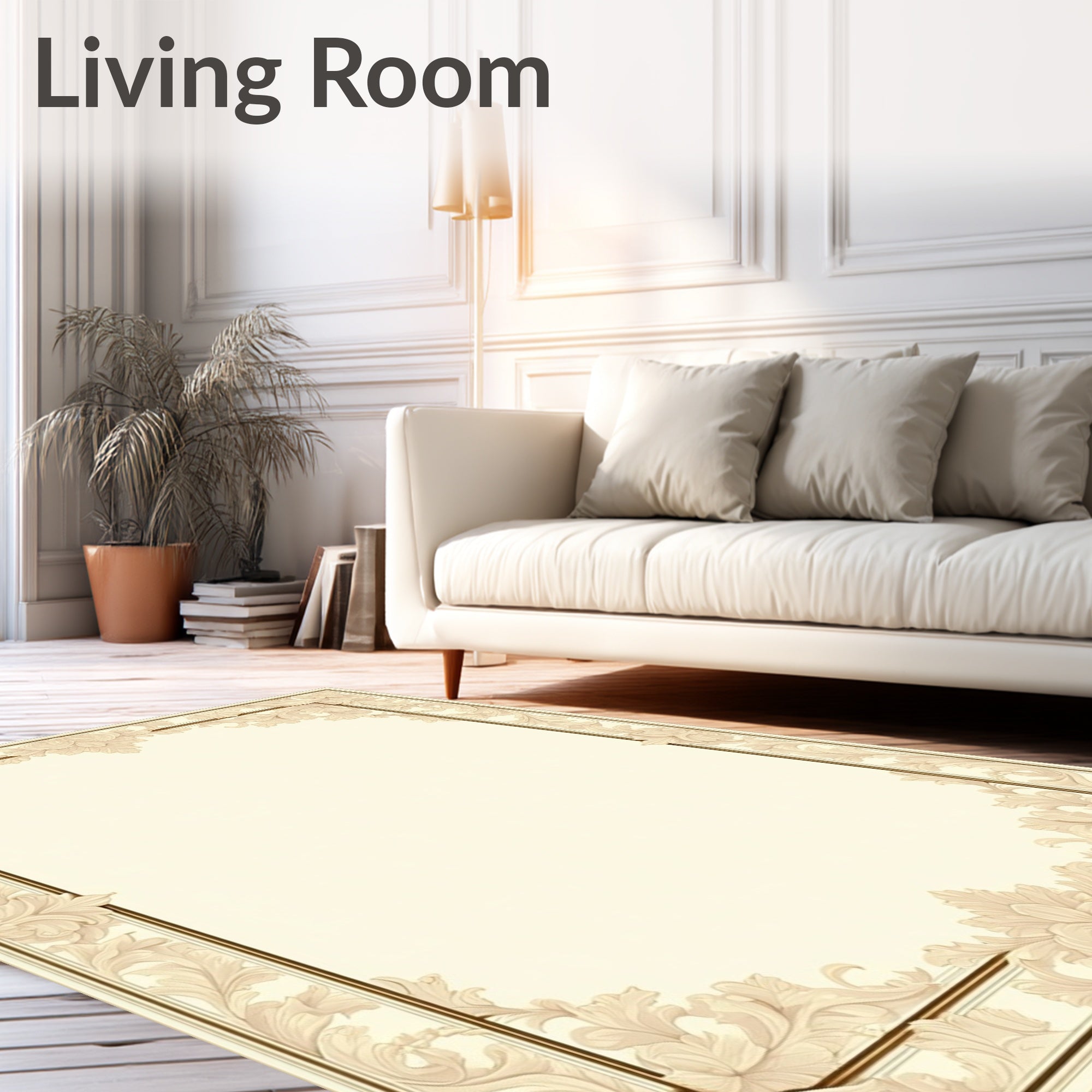 Flatwoven High Traffic Area Rug, Refined Showcasing Luxurious Baroque in Colors, Non Slip, Stain Resistant, Washable Area Rugs for Living Room, Bedroom (Beige) Overview: