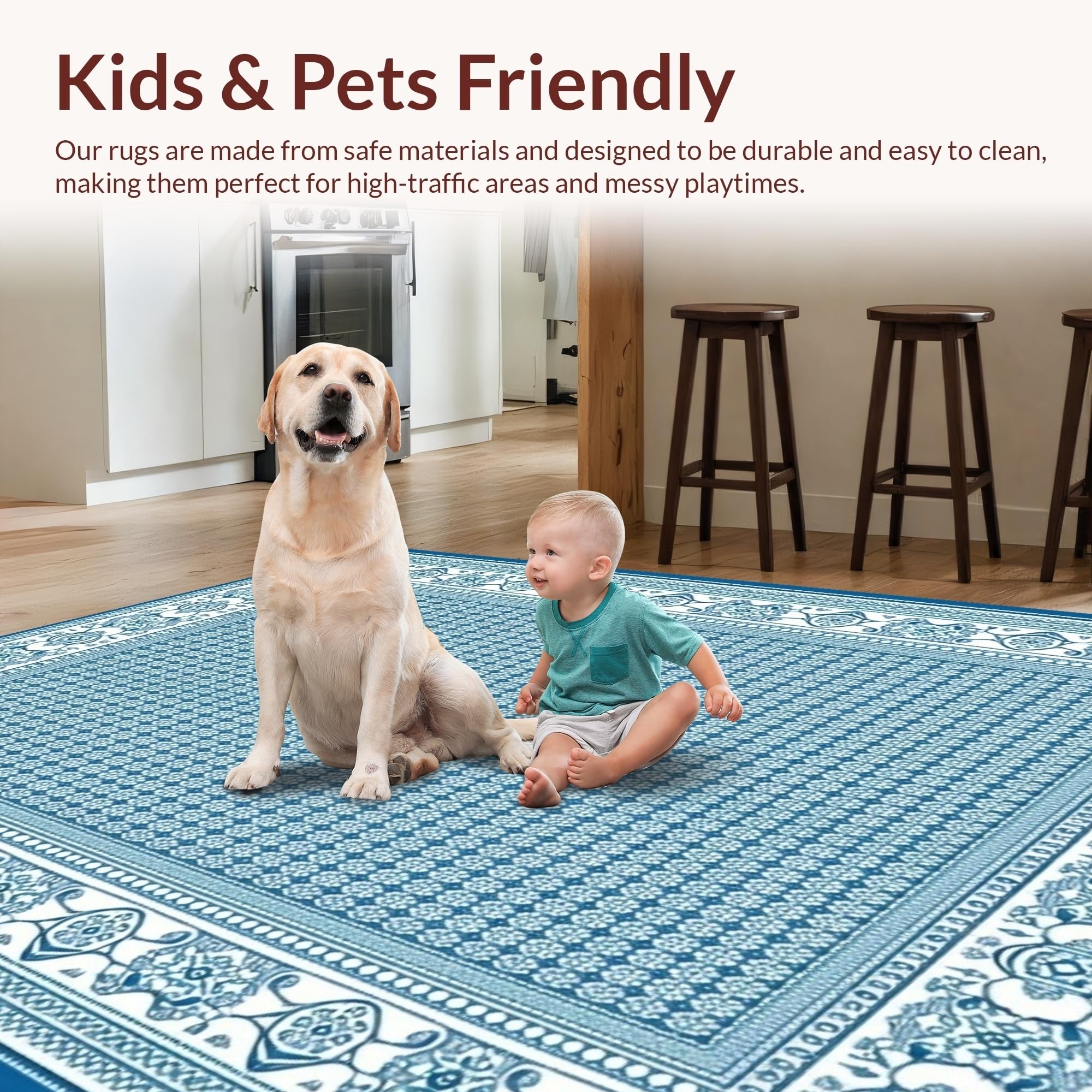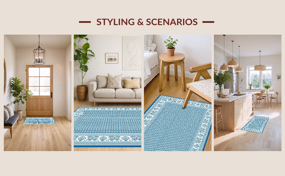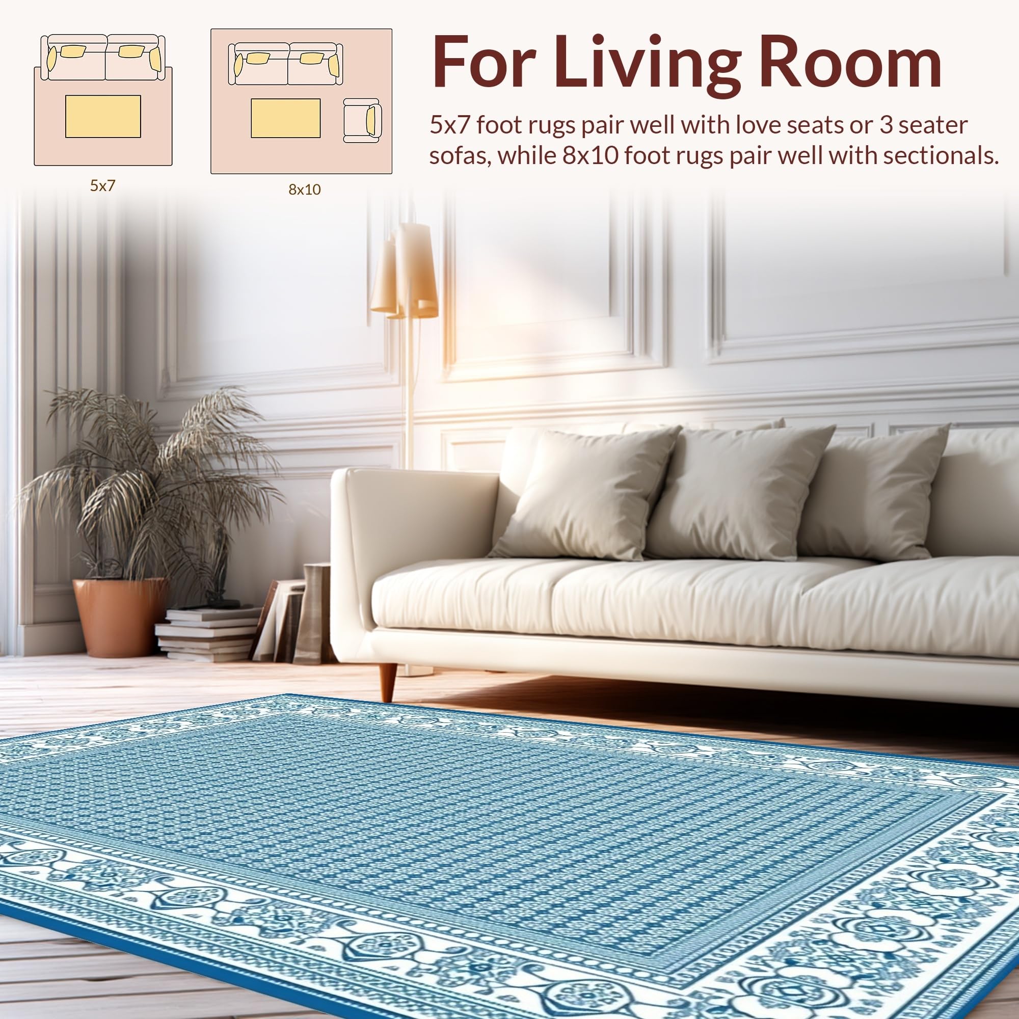 Ultra Soft Area Rug, Non Slip, Stain Resistant, Washable Area Rugs for Living Room, Bedroom, Refined Coastal Edge Pattern(Blue) Overview: