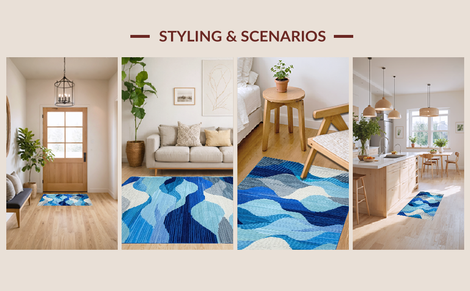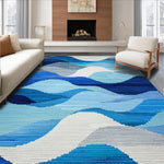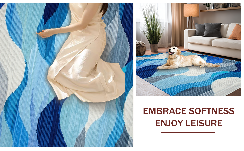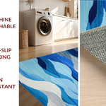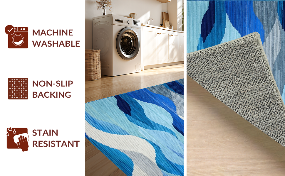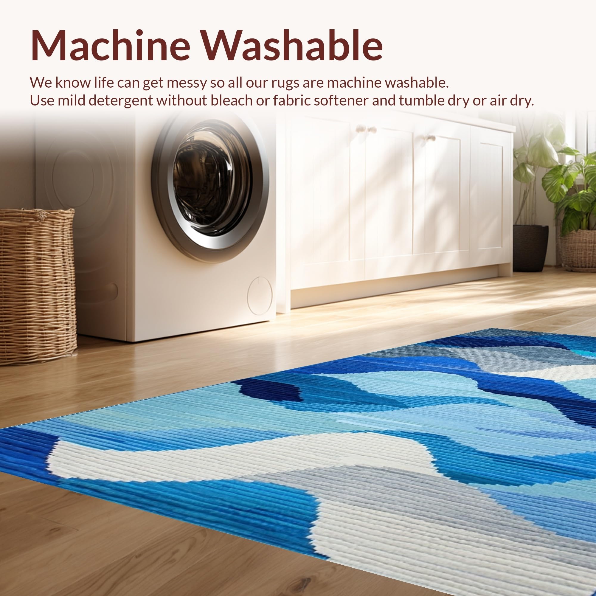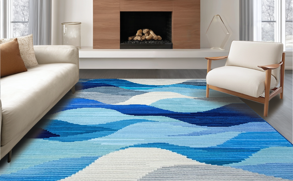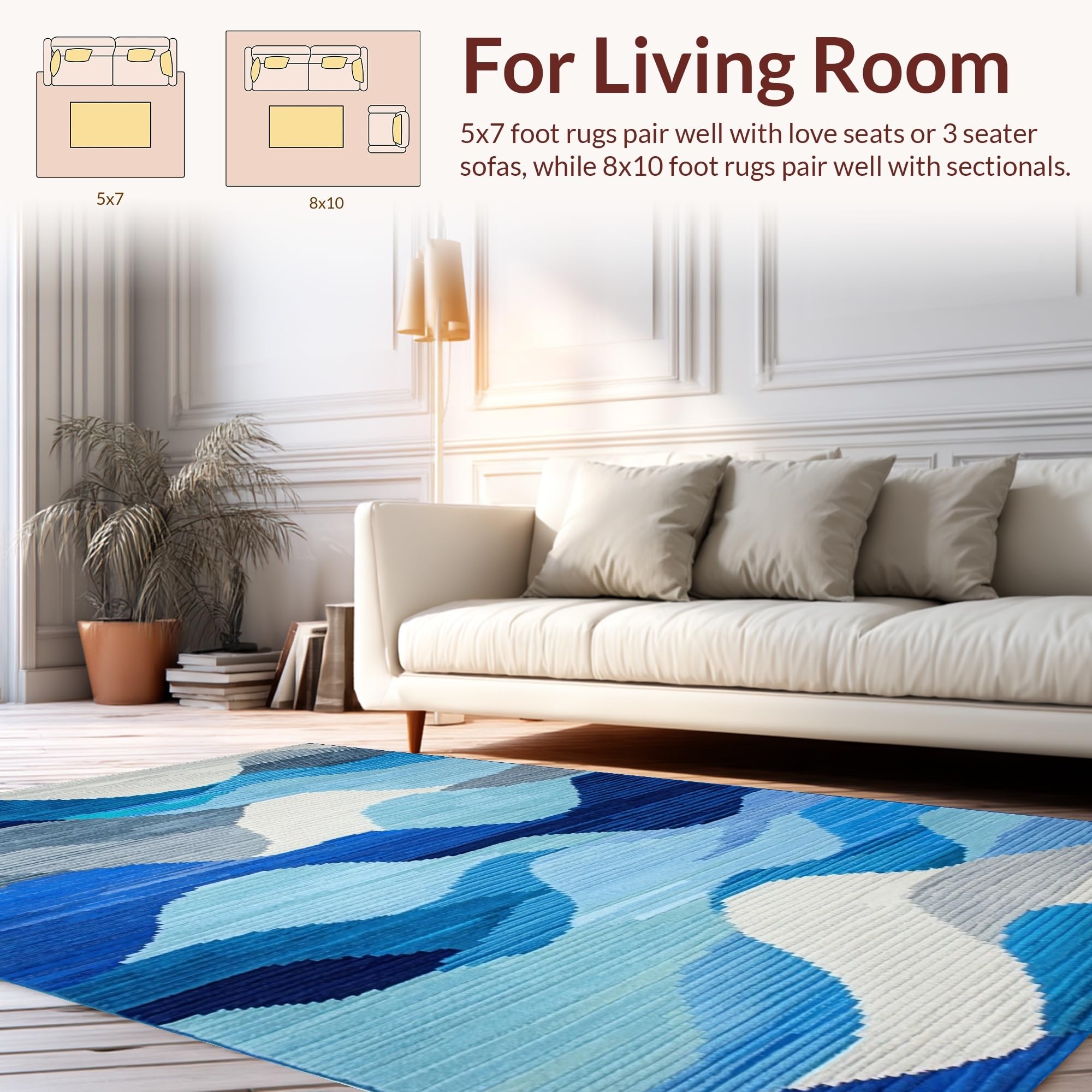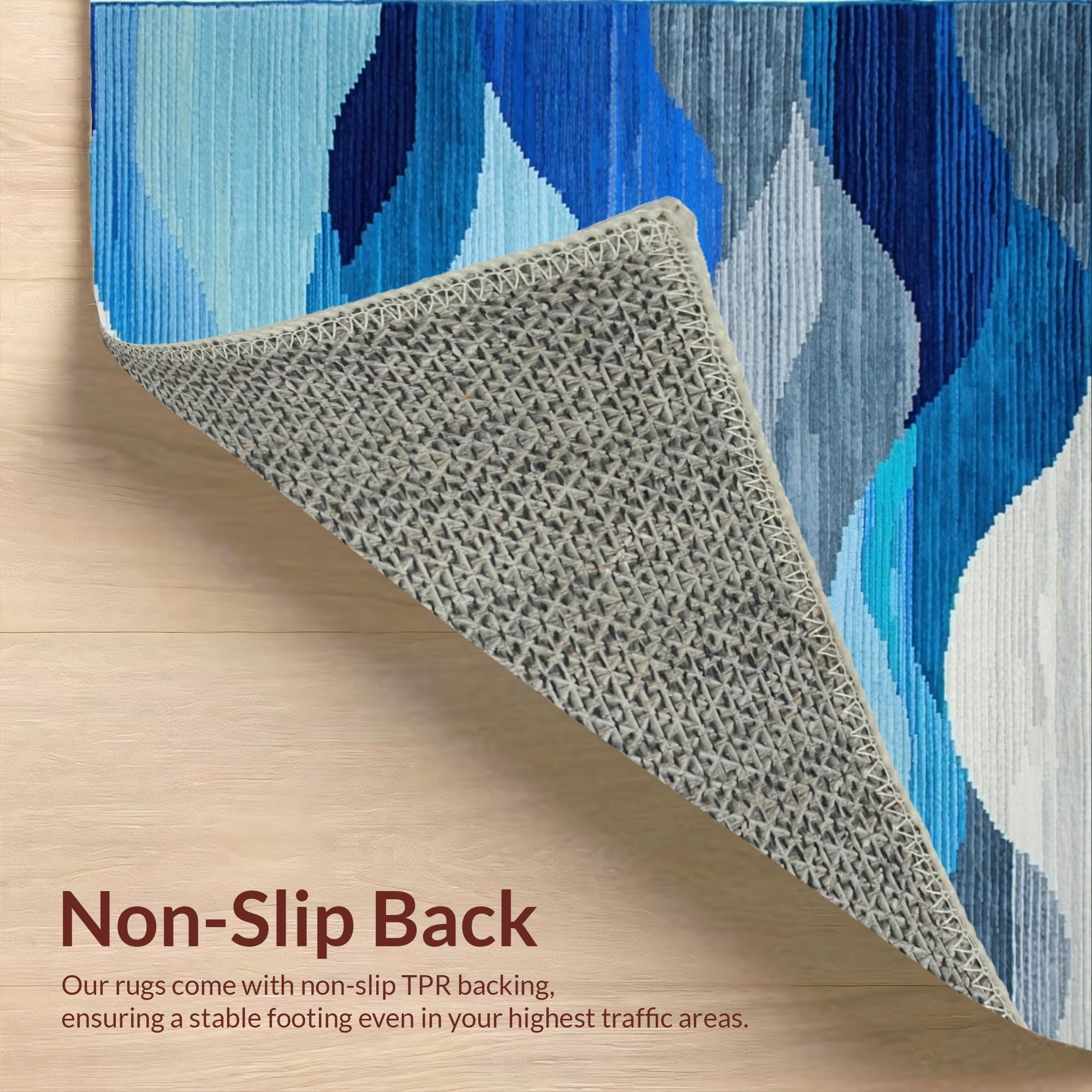 Ultra Soft Area Rug, Non Slip, Stain Resistant, Washable Area Rugs for Living Room, Bedroom, Refined Fluid Brushstroke Arrangement(Blue) Overview: