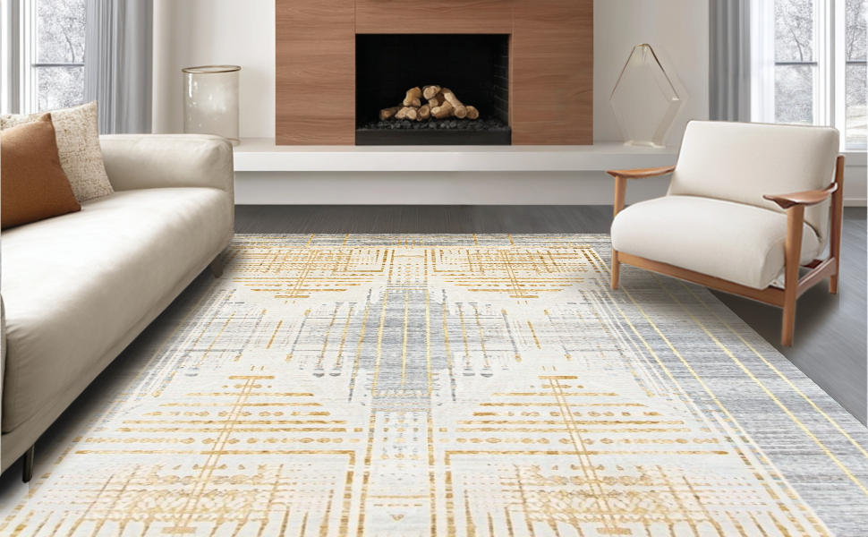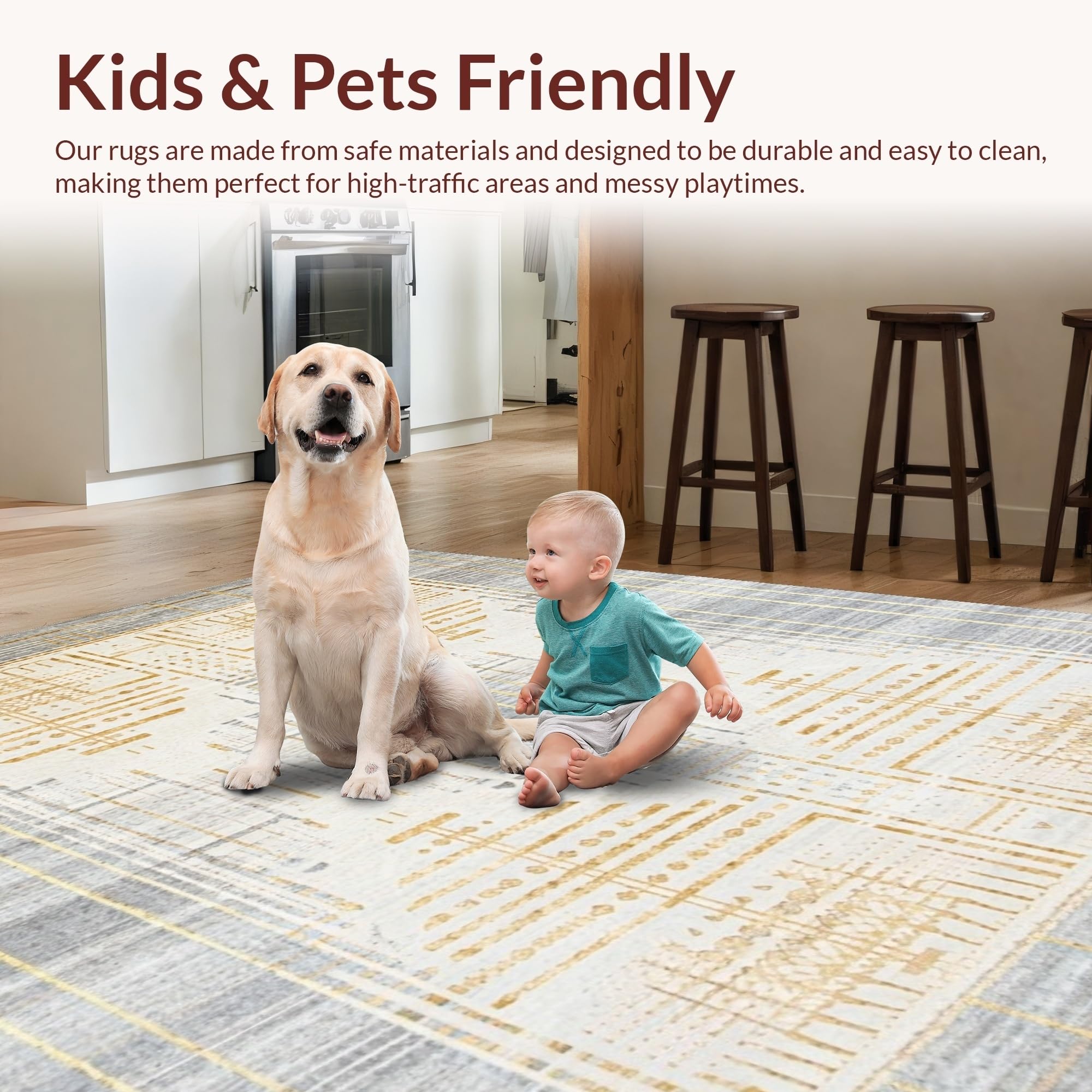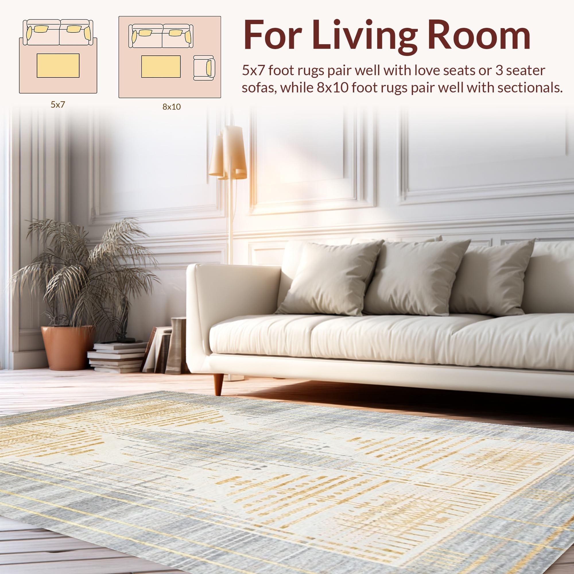 Ultra Soft Area Rug, Non Slip, Stain Resistant, Washable Area Rugs for Living Room, Bedroom, Refined Minimalist Stain Resistant Aesthetic(Gray) Overview:
