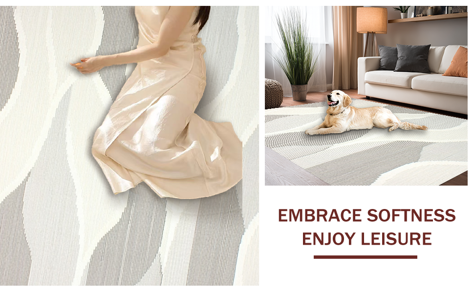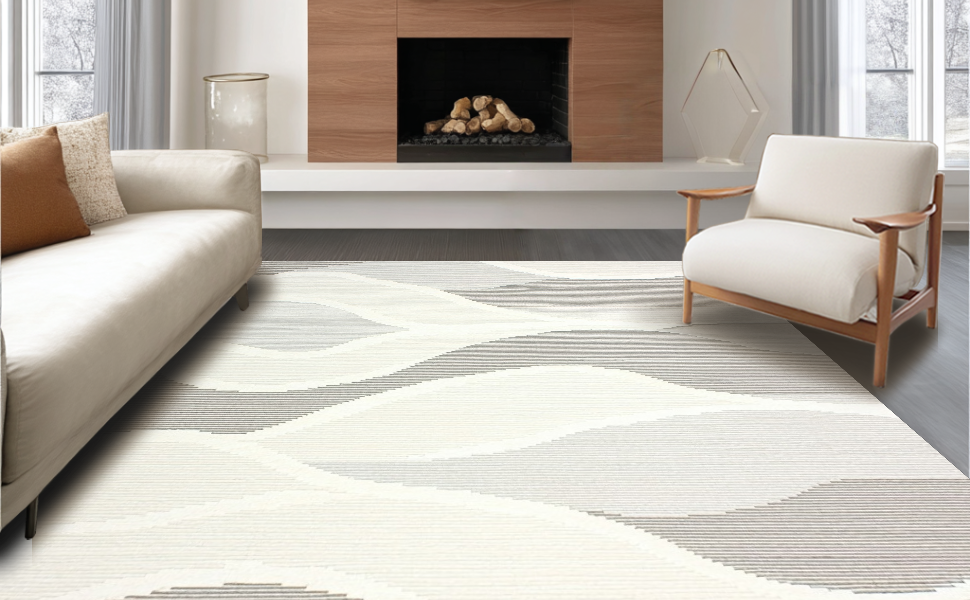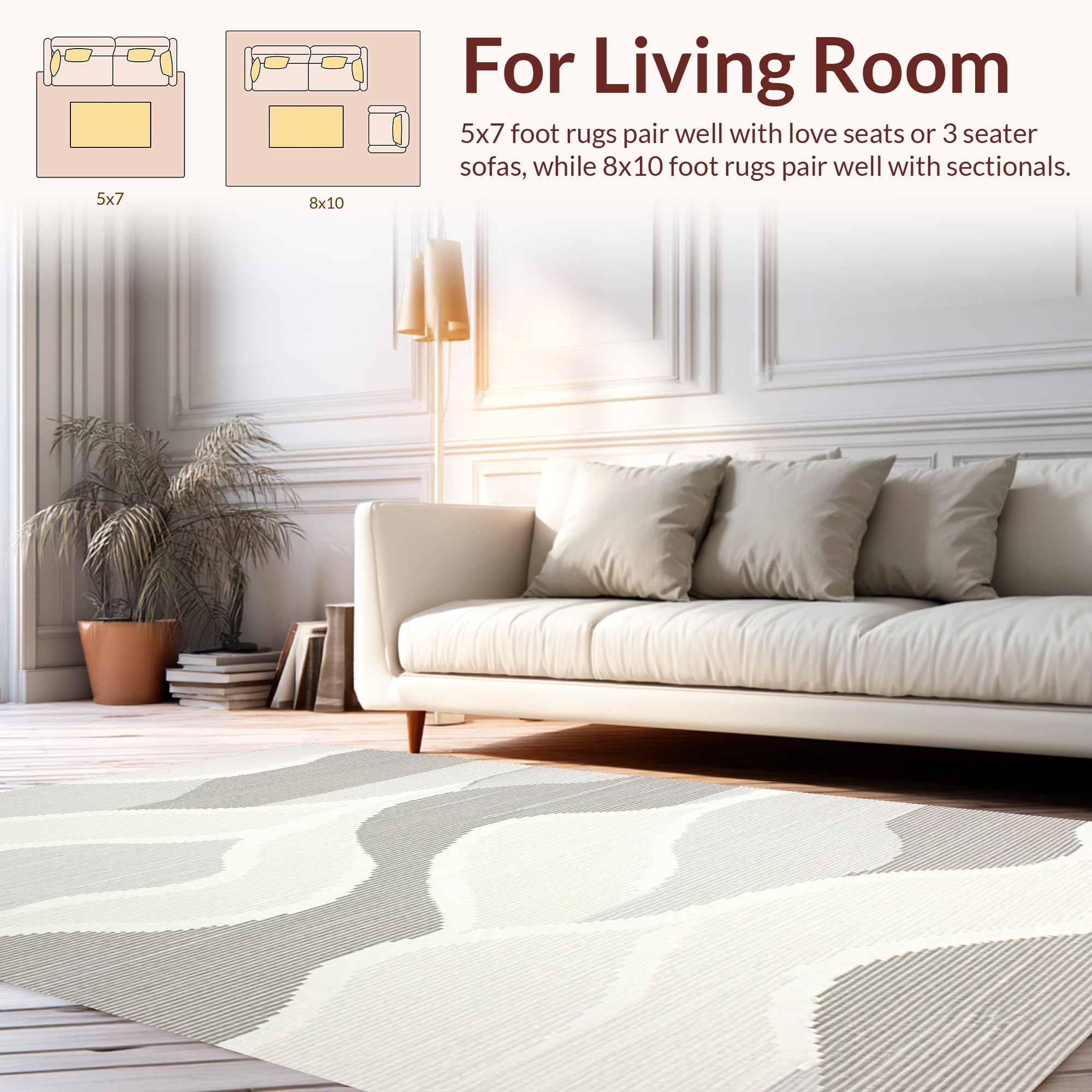 Ultra Soft Area Rug, Non Slip, Stain Resistant, Washable Area Rugs for Living Room, Bedroom, Refined Modern Textured Patterns(Beige) Overview: