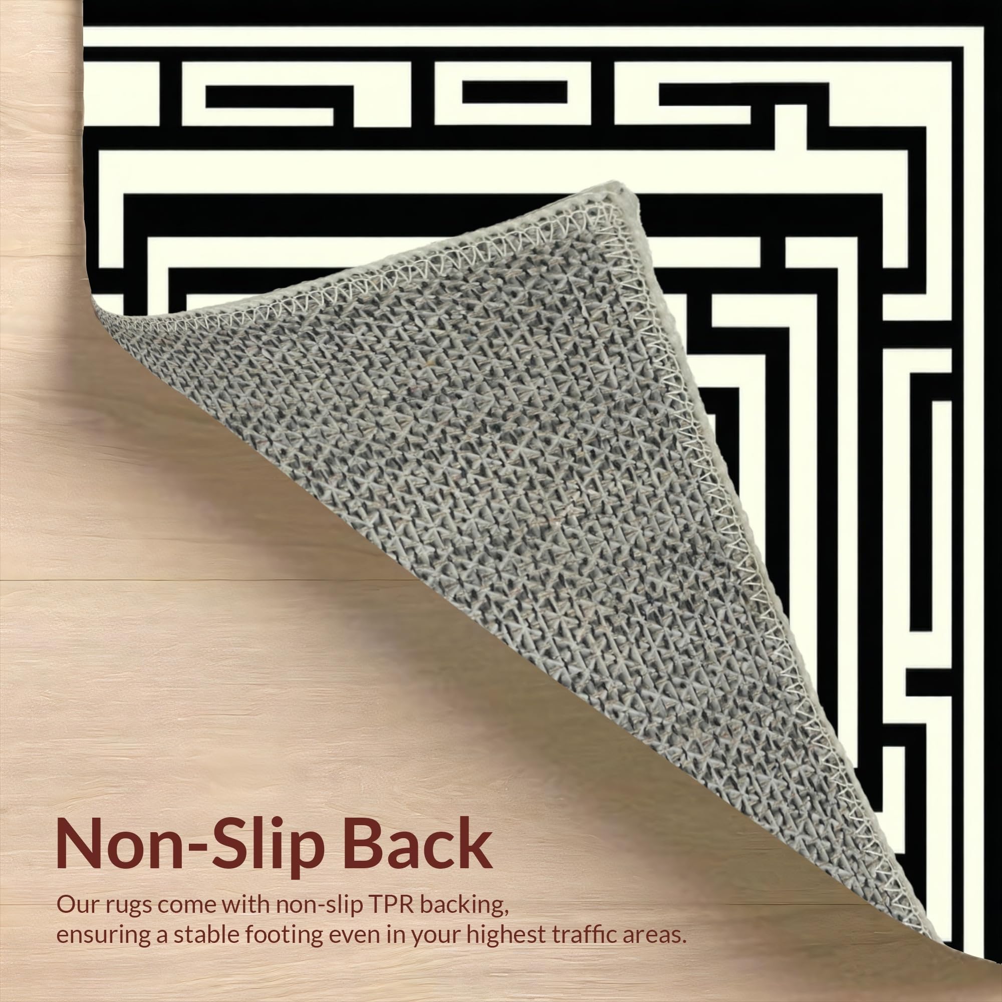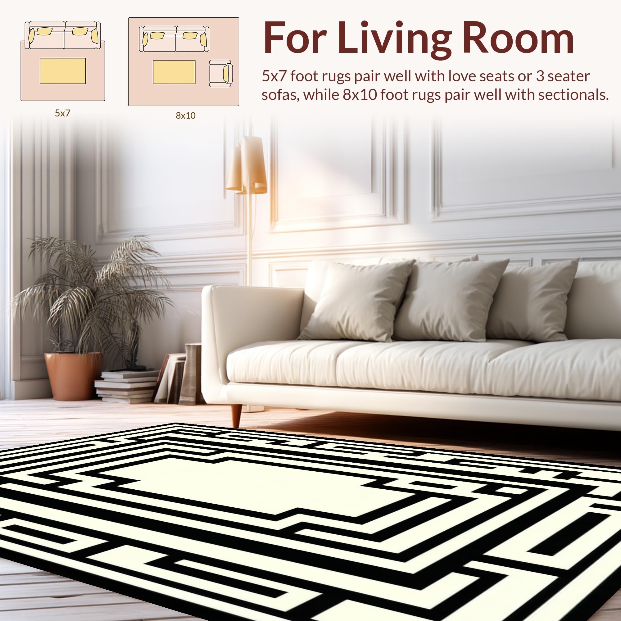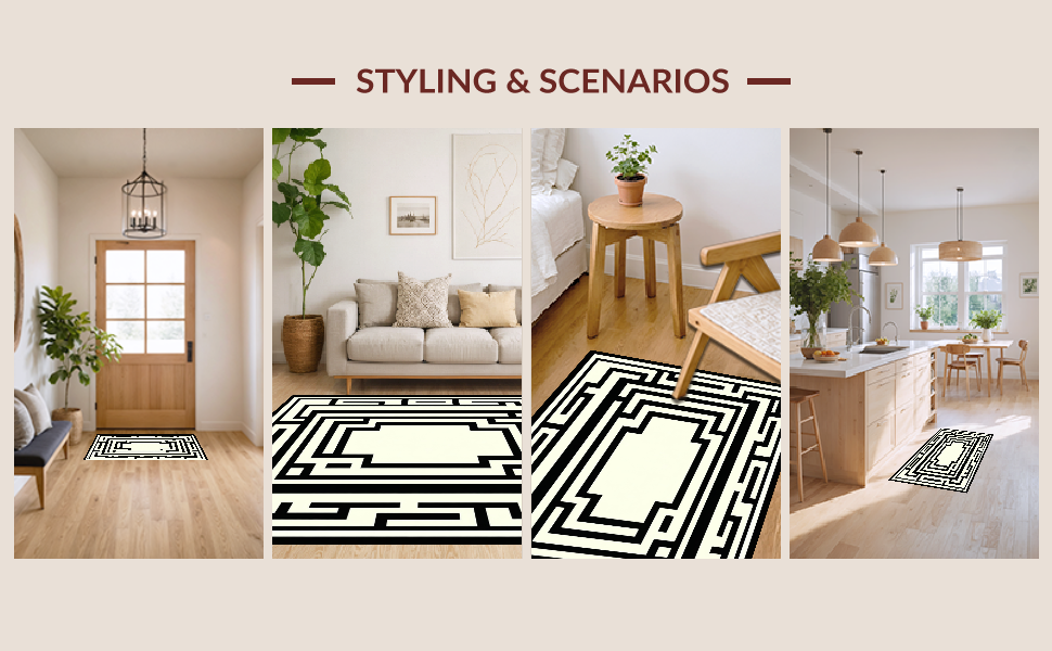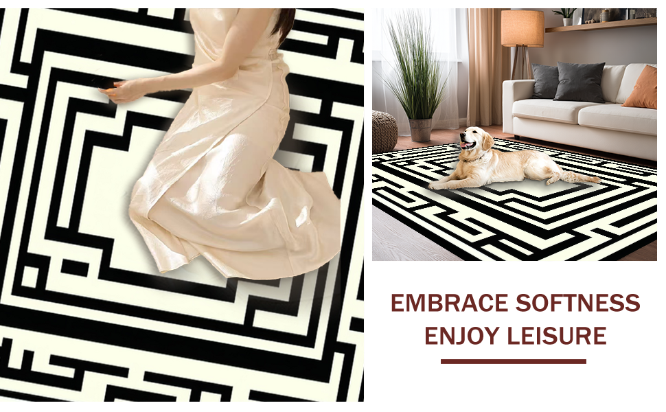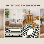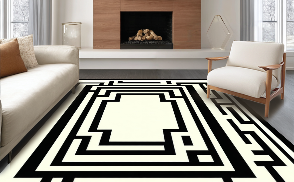 Ultra Soft Area Rug, Non Slip, Stain Resistant, Washable Area Rugs for Living Room, Bedroom, Refined Neutral Tones Ogee Style(Black) Overview: