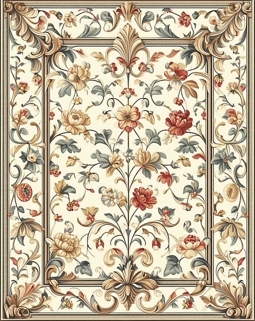 Refined Smoke and Beige Featuring Ornate Floral Leaf Motif Design(Beige)