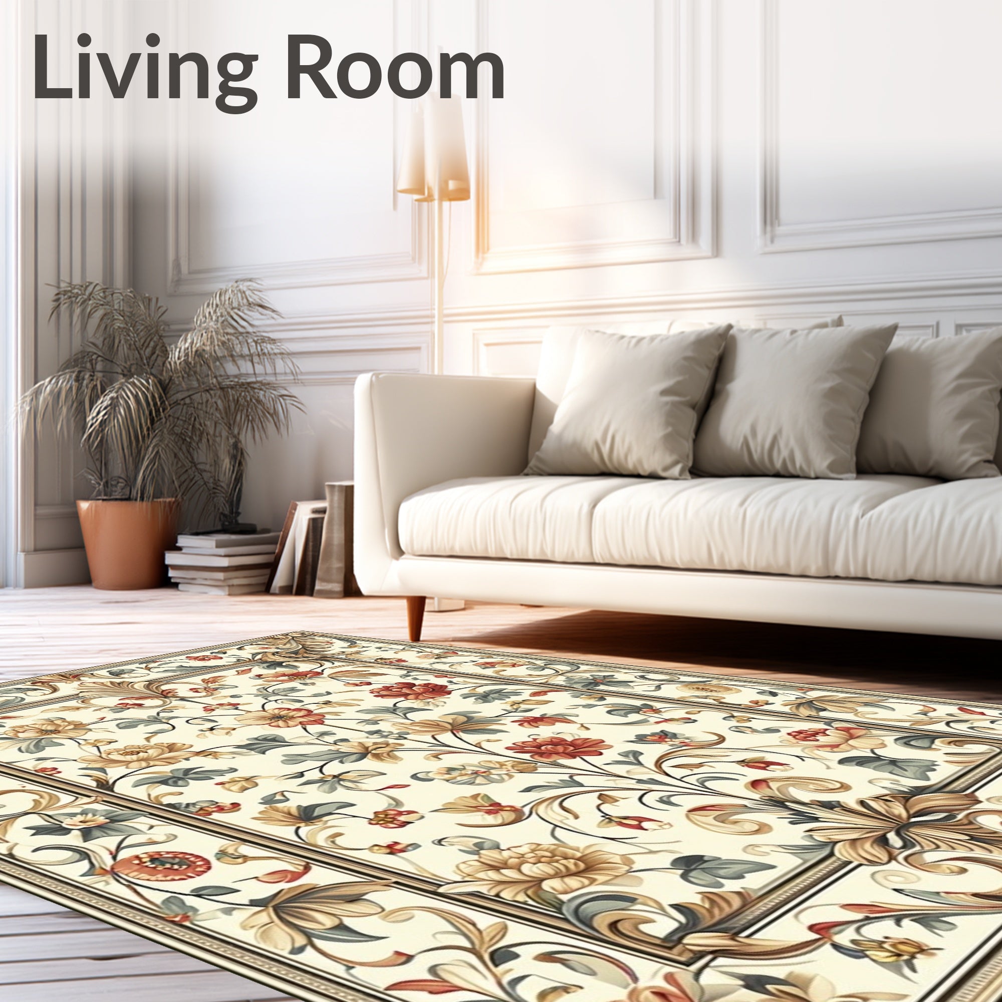 Flatwoven High Traffic Area Rug, Refined Smoke and Beige Featuring Ornate Floral Leaf Motif Design, Non Slip, Stain Resistant, Washable Area Rugs for Living Room, Bedroom (Beige) Overview: