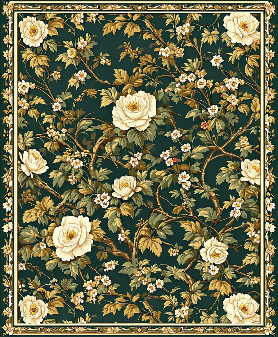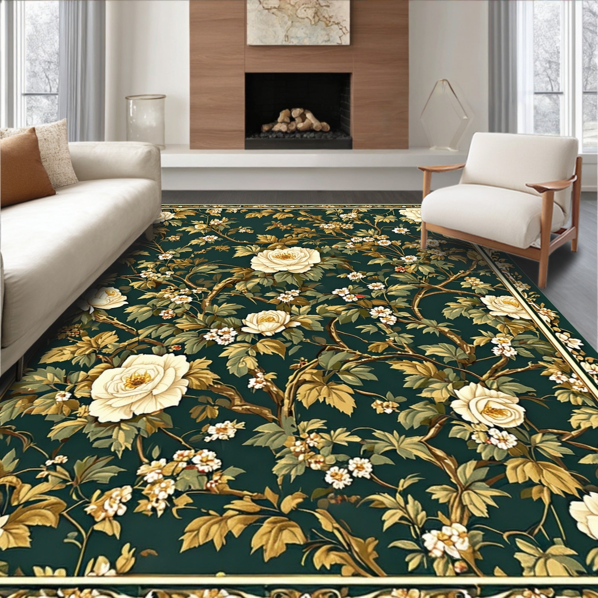 Flatwoven High Traffic Area Rug, Refined Green Nature Motif, Non Slip, Stain Resistant, Washable Area Rugs for Living Room, Bedroom (Green) Overview:
