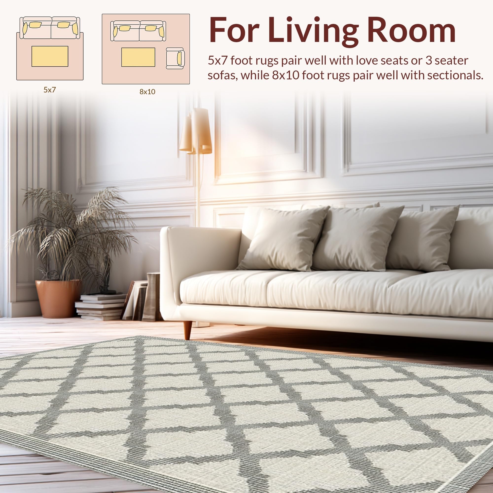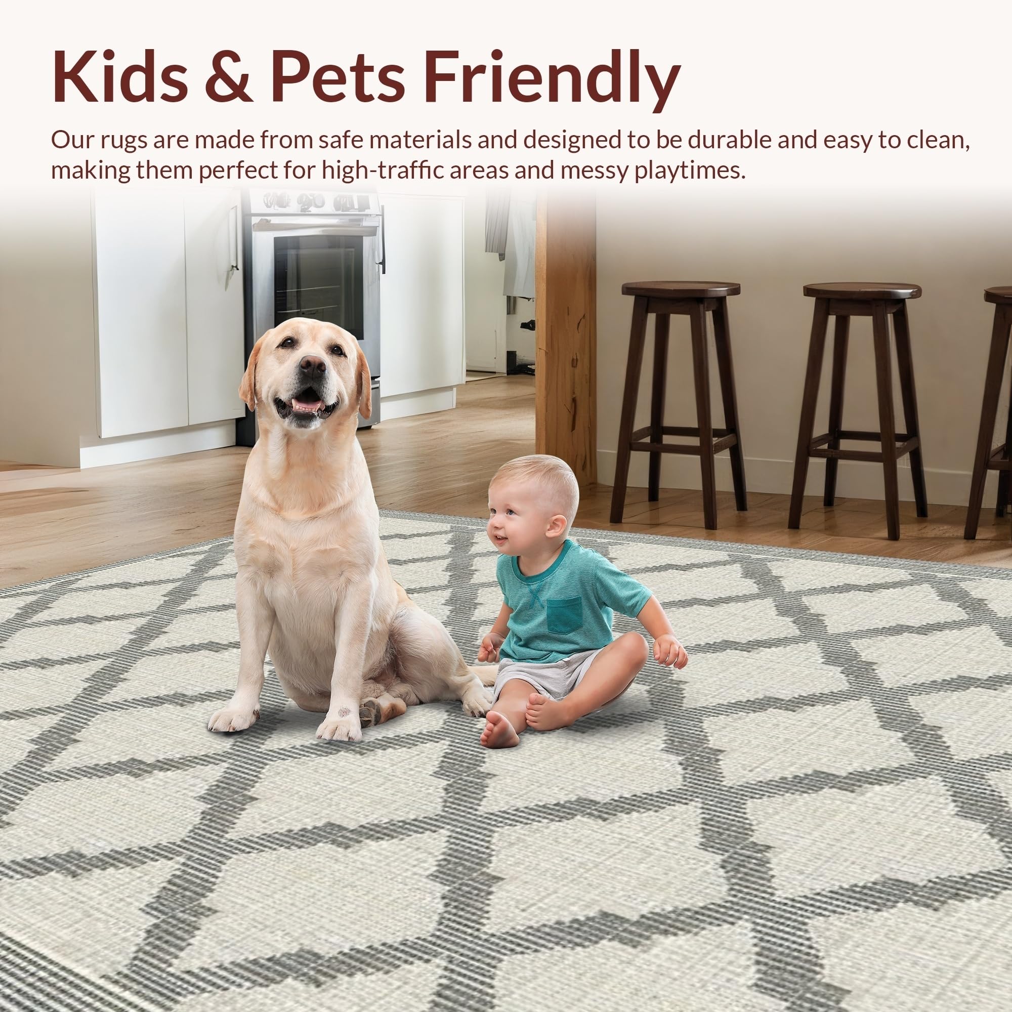 Ultra Soft Area Rug, Non Slip, Stain Resistant, Washable Area Rugs for Living Room, Bedroom, Refined Transitional Patterned Elegance(Beige) Overview: